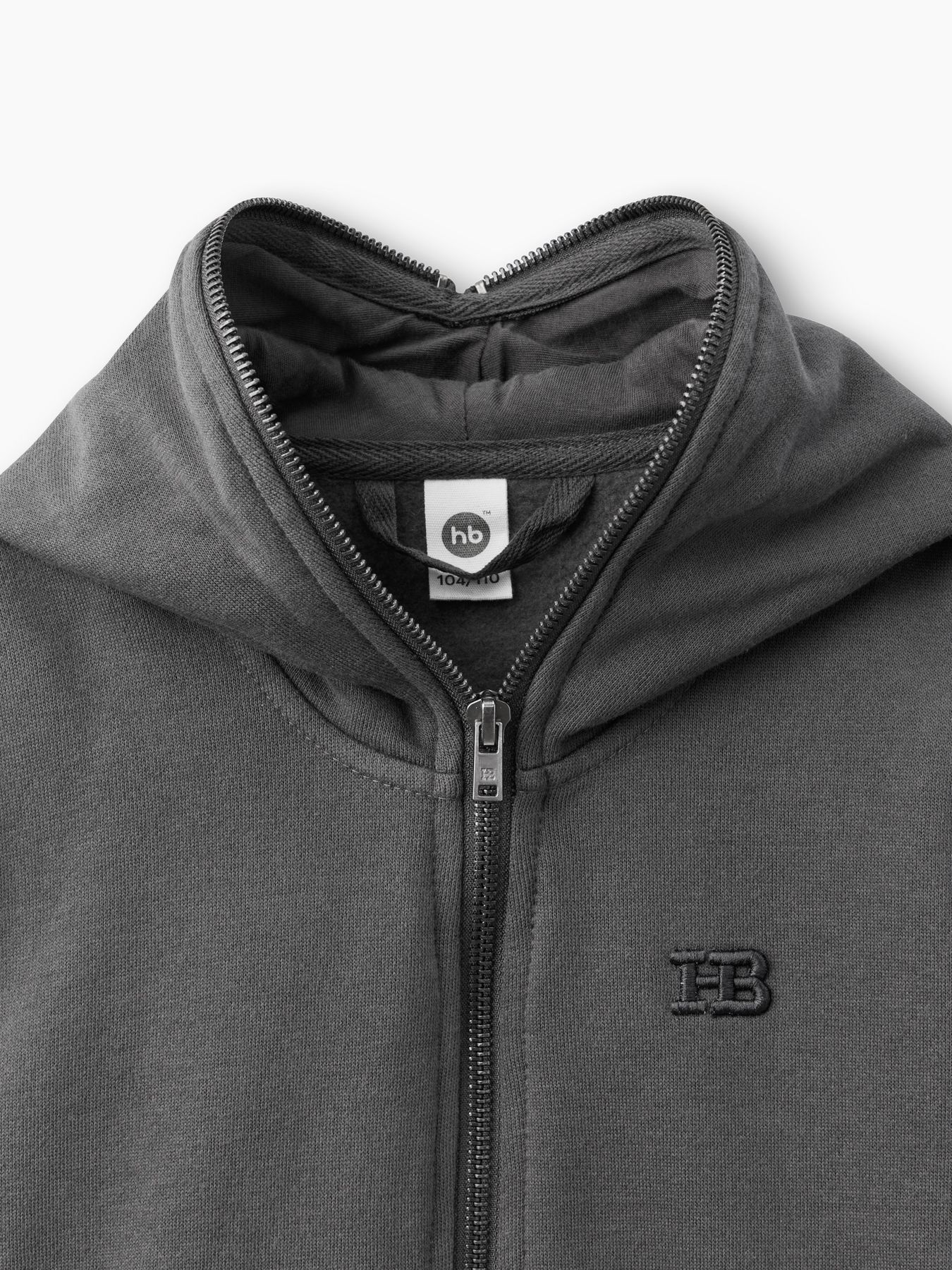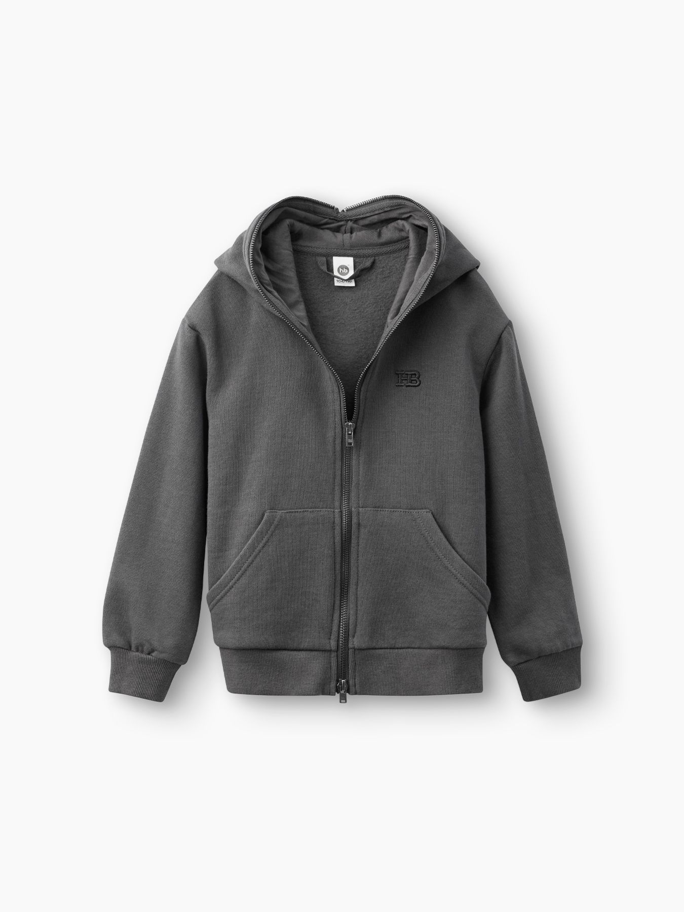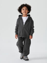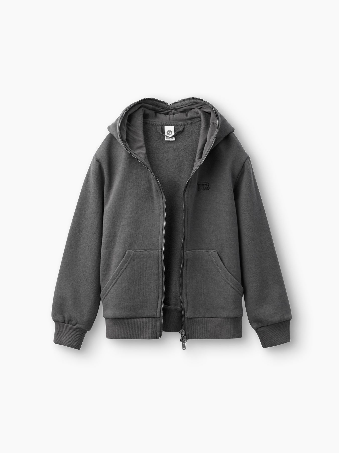 Толстовка на молнии позволит каждый день создавать новые многослойные образы. Изделие легко надевать и снимать: понравится детям, которые испытывают дискомфорт от вещей с плотной горловиной. Манжеты на рукавах и резинка по низу изделия защитят от ветра. В накладные карманы спереди можно спрятать руки. Очень высокая молния позволит закрыть лицо в ветреную прохладную погоду.