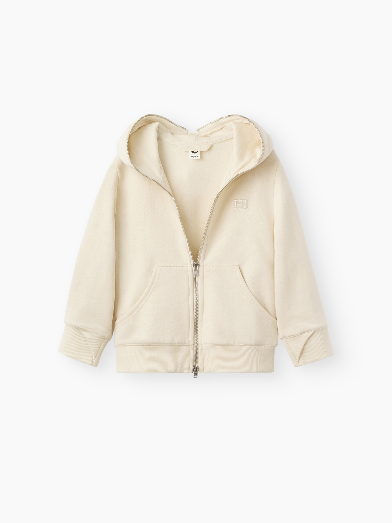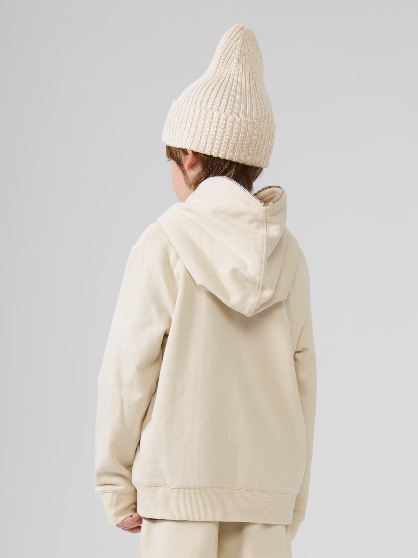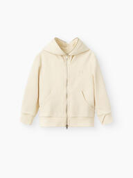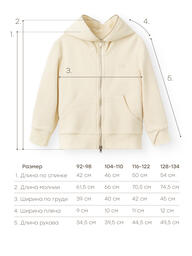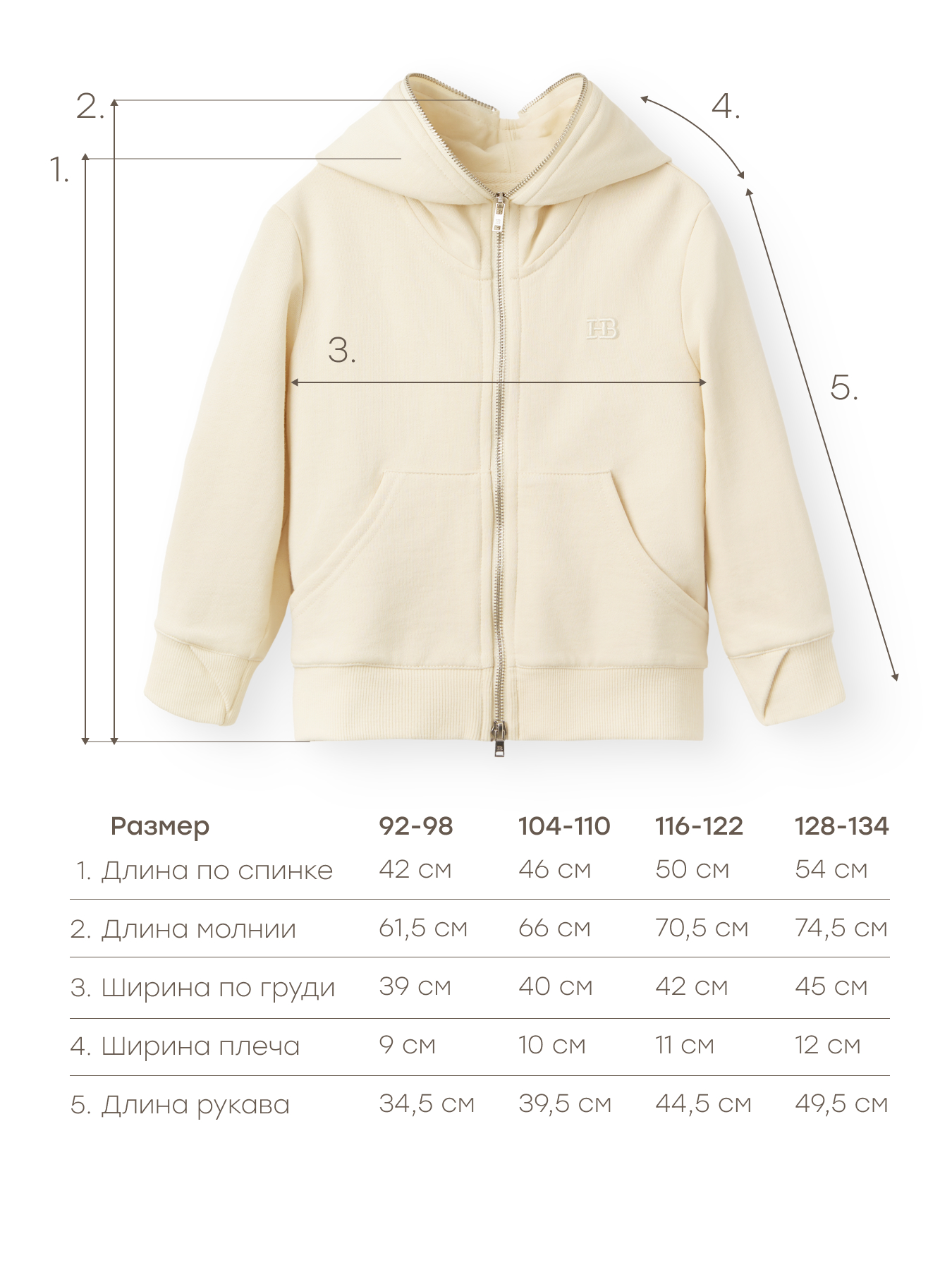 Толстовка на молнии позволит каждый день создавать новые многослойные образы. Изделие легко надевать и снимать: понравится детям, которые испытывают дискомфорт от вещей с плотной горловиной. Манжеты на рукавах и резинка по низу изделия защитят от ветра. В накладные карманы спереди можно спрятать руки. Очень высокая молния позволит закрыть лицо в ветреную прохладную погоду.