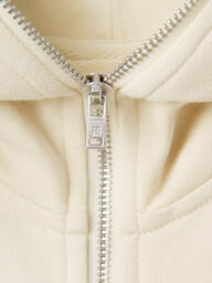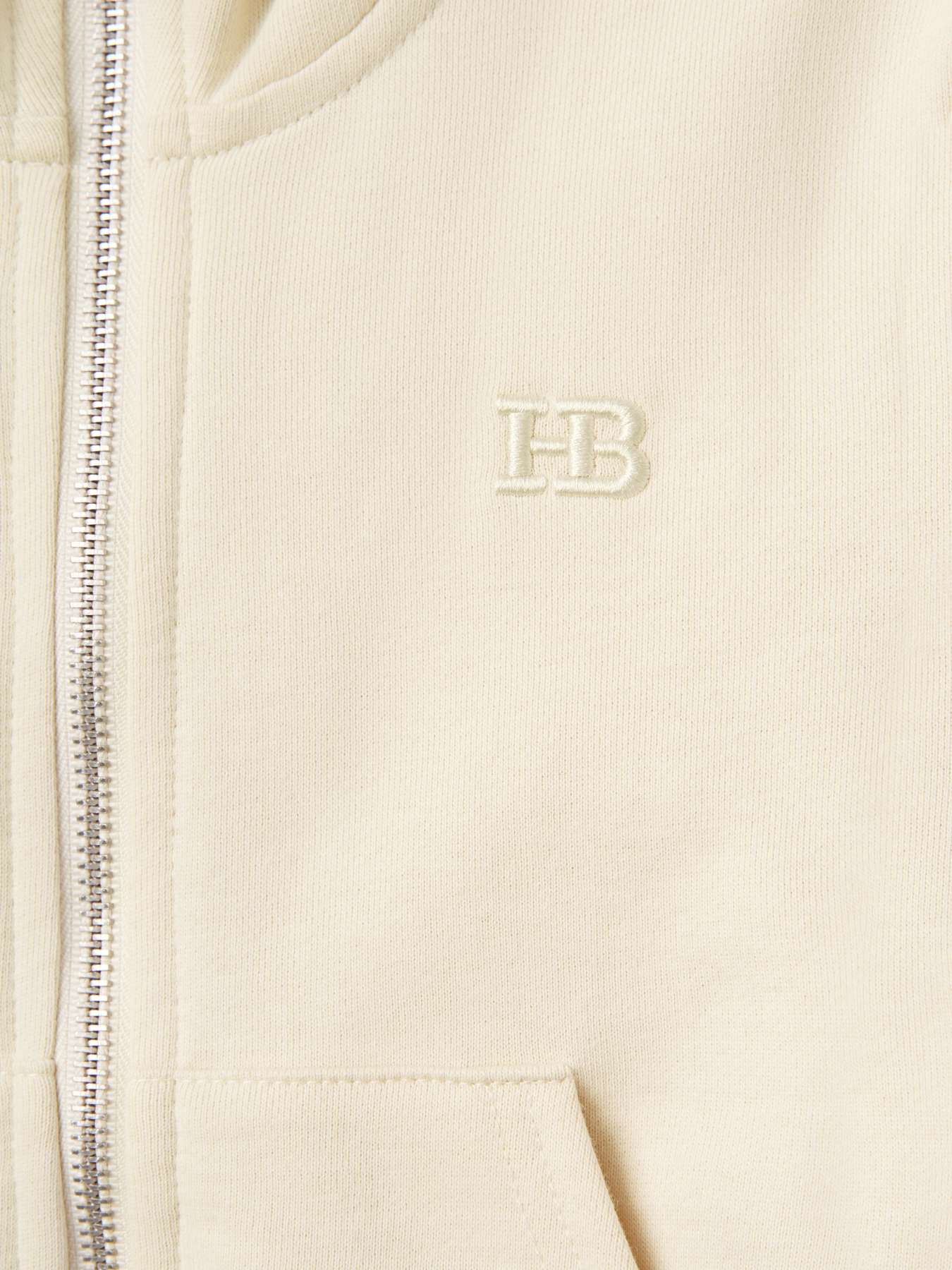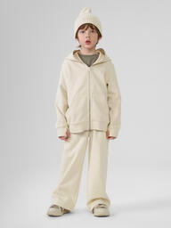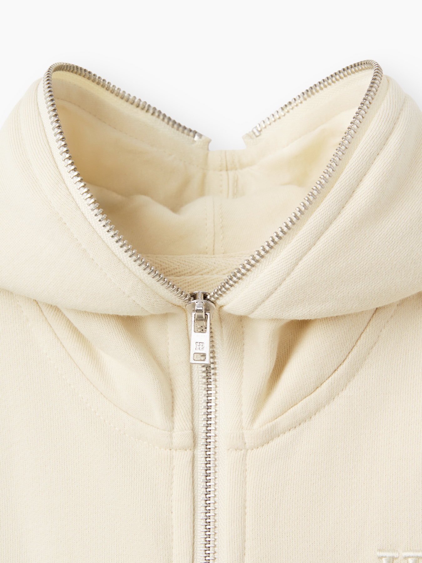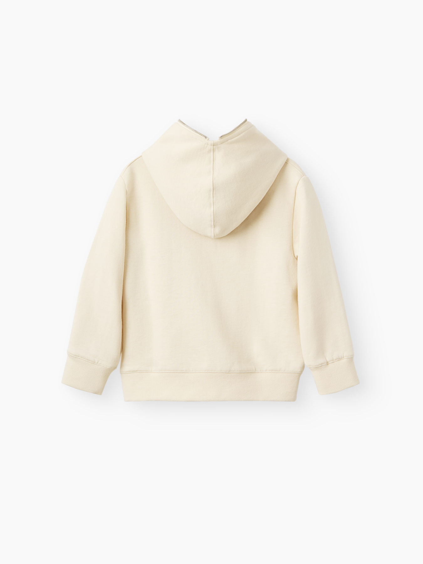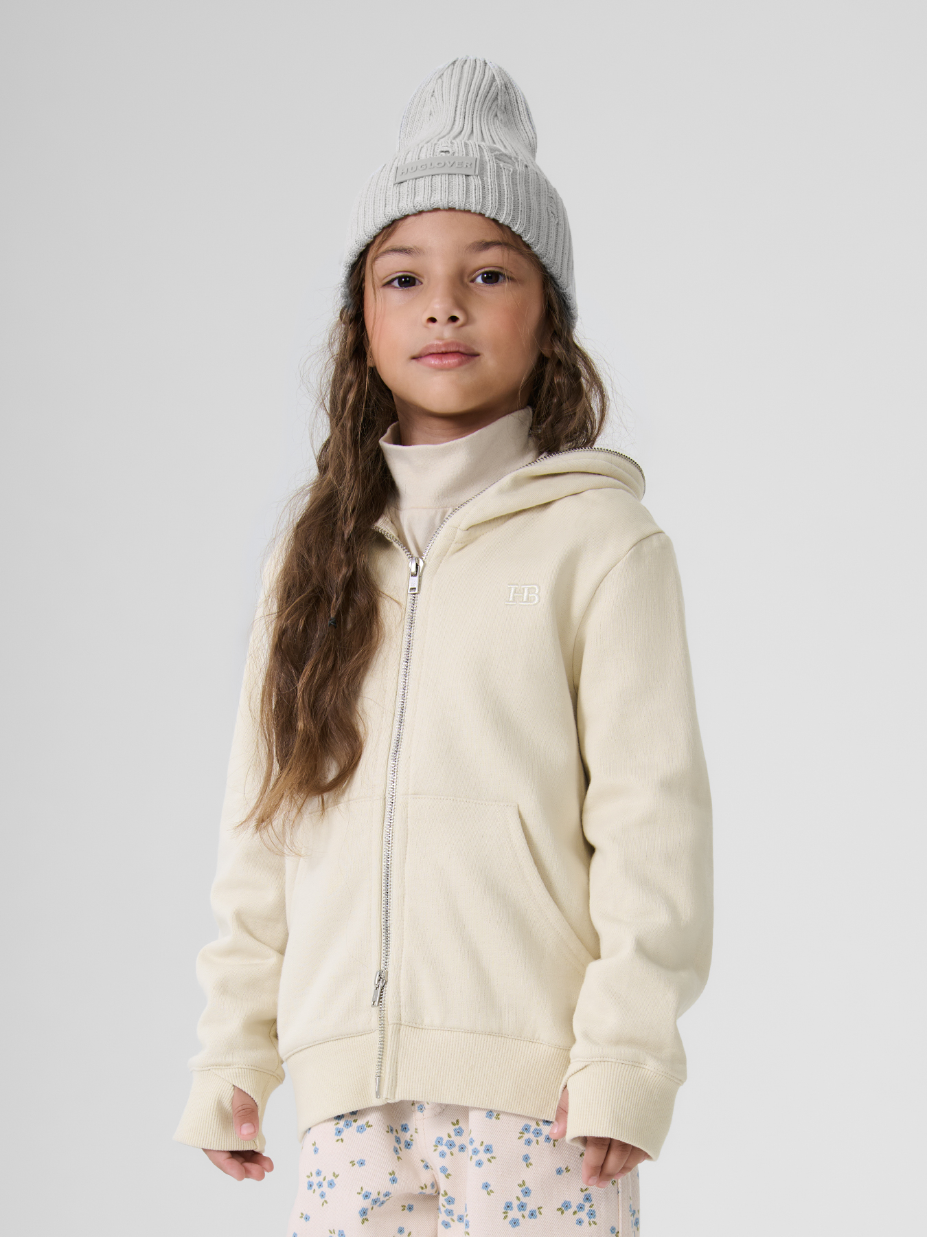 Толстовка на молнии позволит каждый день создавать новые многослойные образы. Изделие легко надевать и снимать: понравится детям, которые испытывают дискомфорт от вещей с плотной горловиной. Манжеты на рукавах и резинка по низу изделия защитят от ветра. В накладные карманы спереди можно спрятать руки. Очень высокая молния позволит закрыть лицо в ветреную прохладную погоду.