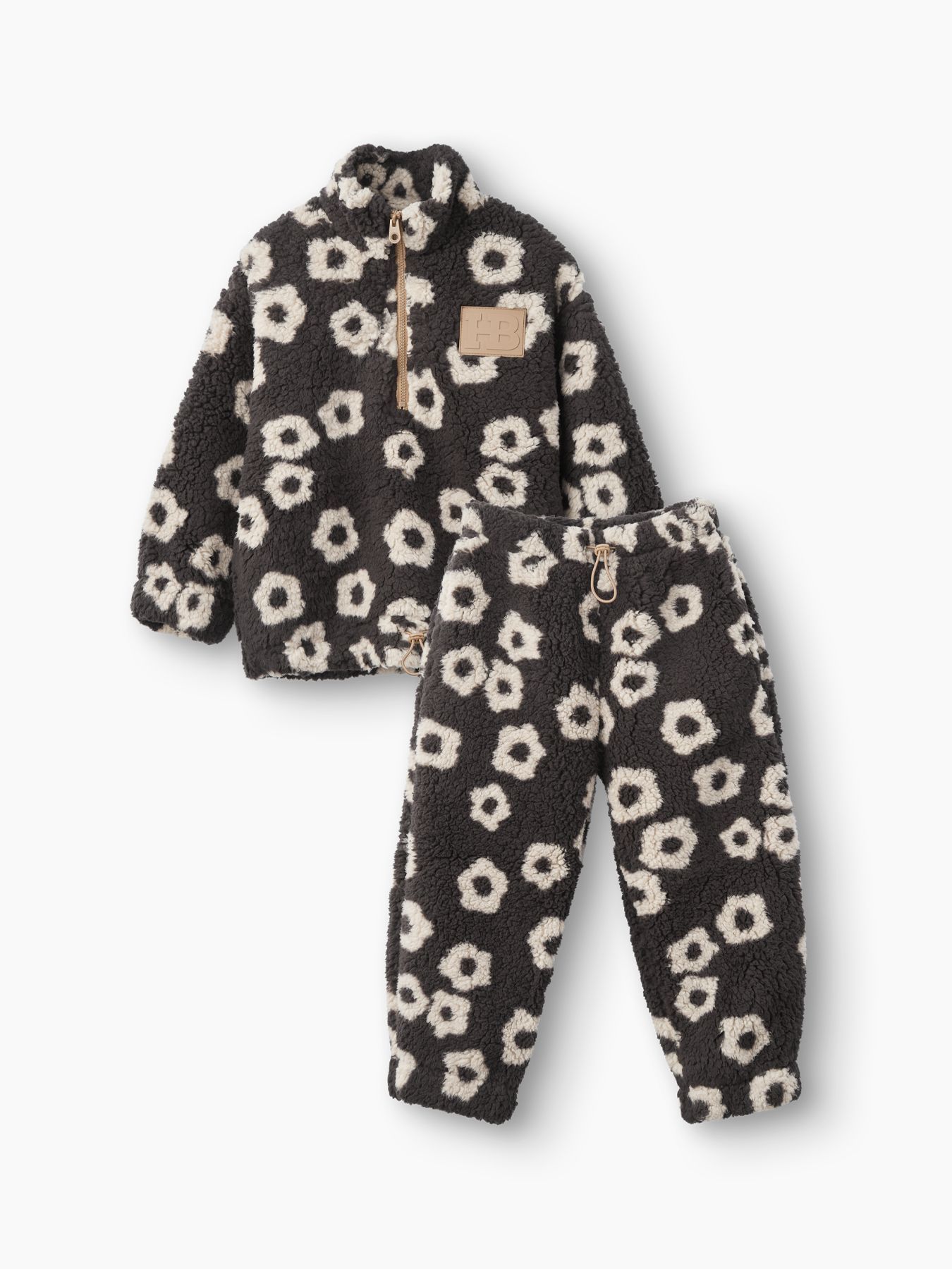 Комплект детский флисовый: джемпер и брюки black (flower)