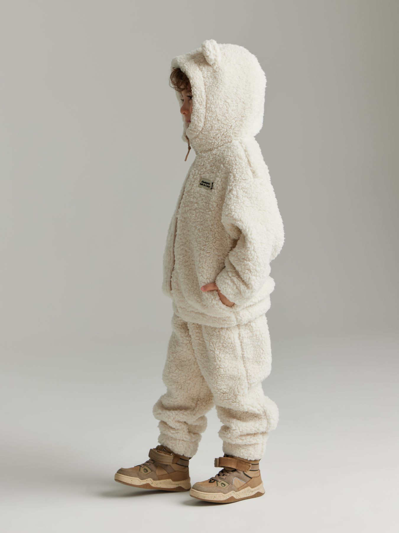 Детский флисовый костюм с капюшоном – идеальная верхняя одежда для прохладной погоды. Мягкий уютный флис отлично сохраняет тепло и защищает от ветра. Внутри – плоские швы, которые не доставят дискомфорта. У джемпера 2 пары карманов – накладные с клапаном на липучке и прорезные, в которых удобно греть руки. Джемпер застёгивается на молнию, которая снабжена защитой для подбородка. Дополнительная ветрозащита достигается благодаря манжетам на резинке на рукавах и штанинах. Брюки сидят на талии, а силуэт джемпера удлинён, поэтому тело малыша закрыто, даже если он поднимет руки. Обхват талии брюк регулируется резинкой.