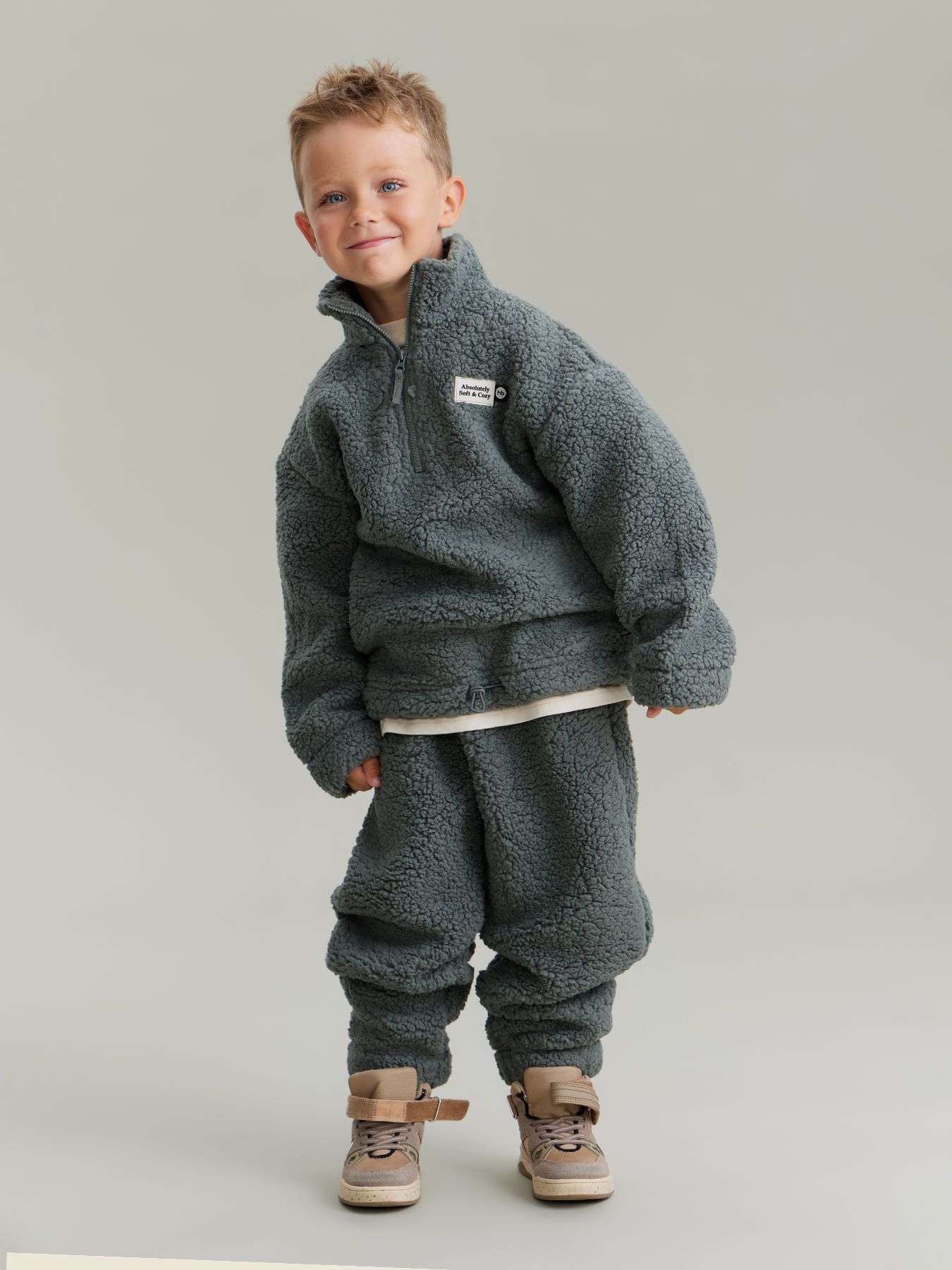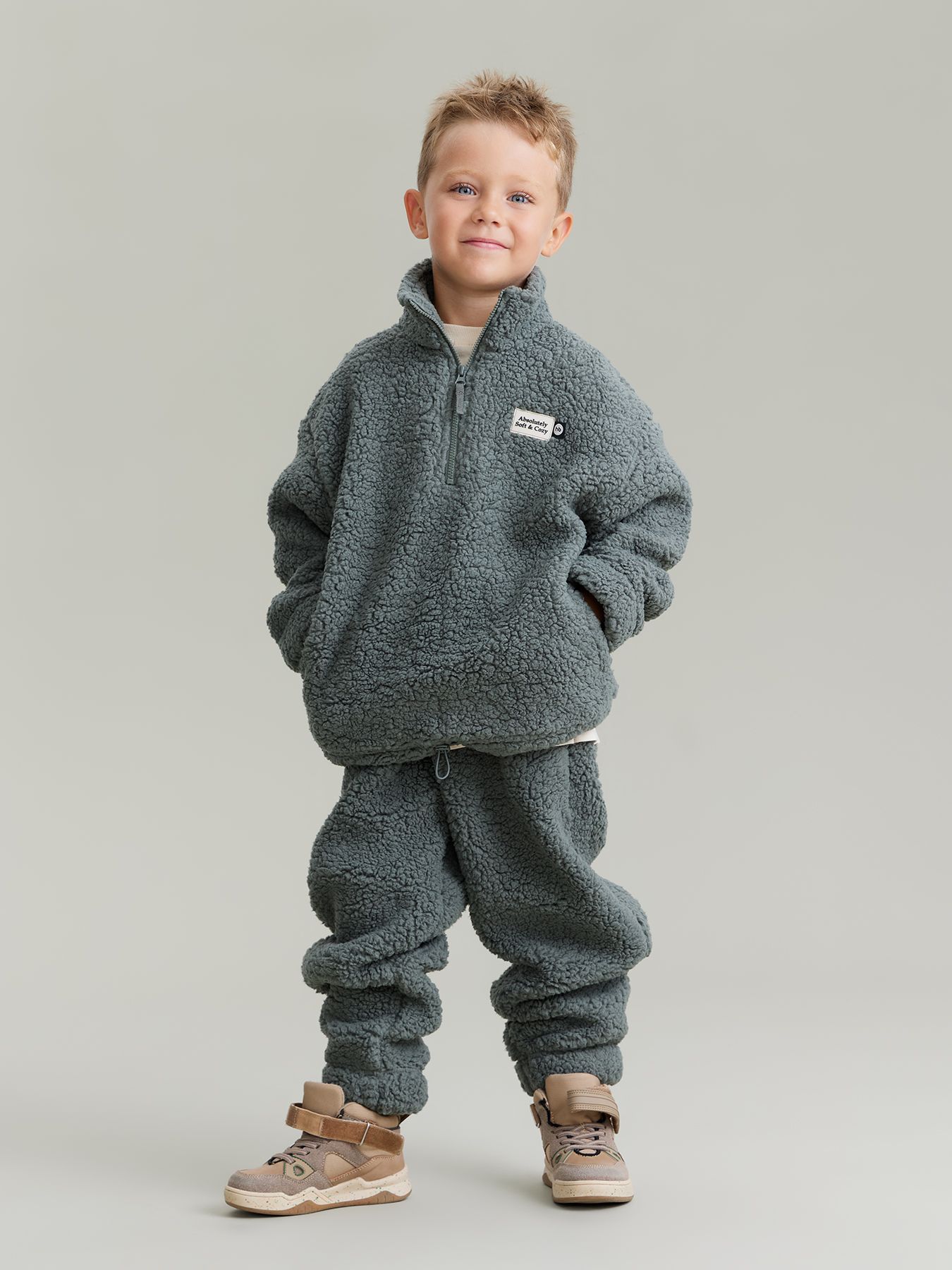 Детский костюм из флиса — основа модных осенних и весенних образов, а также идеальная поддёва под комбинезон. Толстовку и брюки легко смешивать с повседневной одеждой. Мягкий, приятный материал обладает свойствами удержания тепла и ветрозащиты. Удобная застёжка джемпера позволяет надевать и снимать его, не доставляя ребёнку дискомфорта. Высокое горло, манжеты на рукавах и по низу брюк защищают от холода и ветра. Спущенная линия плеча выглядит актуально и удобна в повседневной носке. Благодаря регулируемой резинке на поясе брюк обеспечивается правильная посадка на малышах разных типов фигур. По бокам – карманы, также карман сзади.