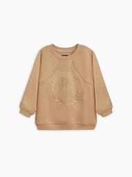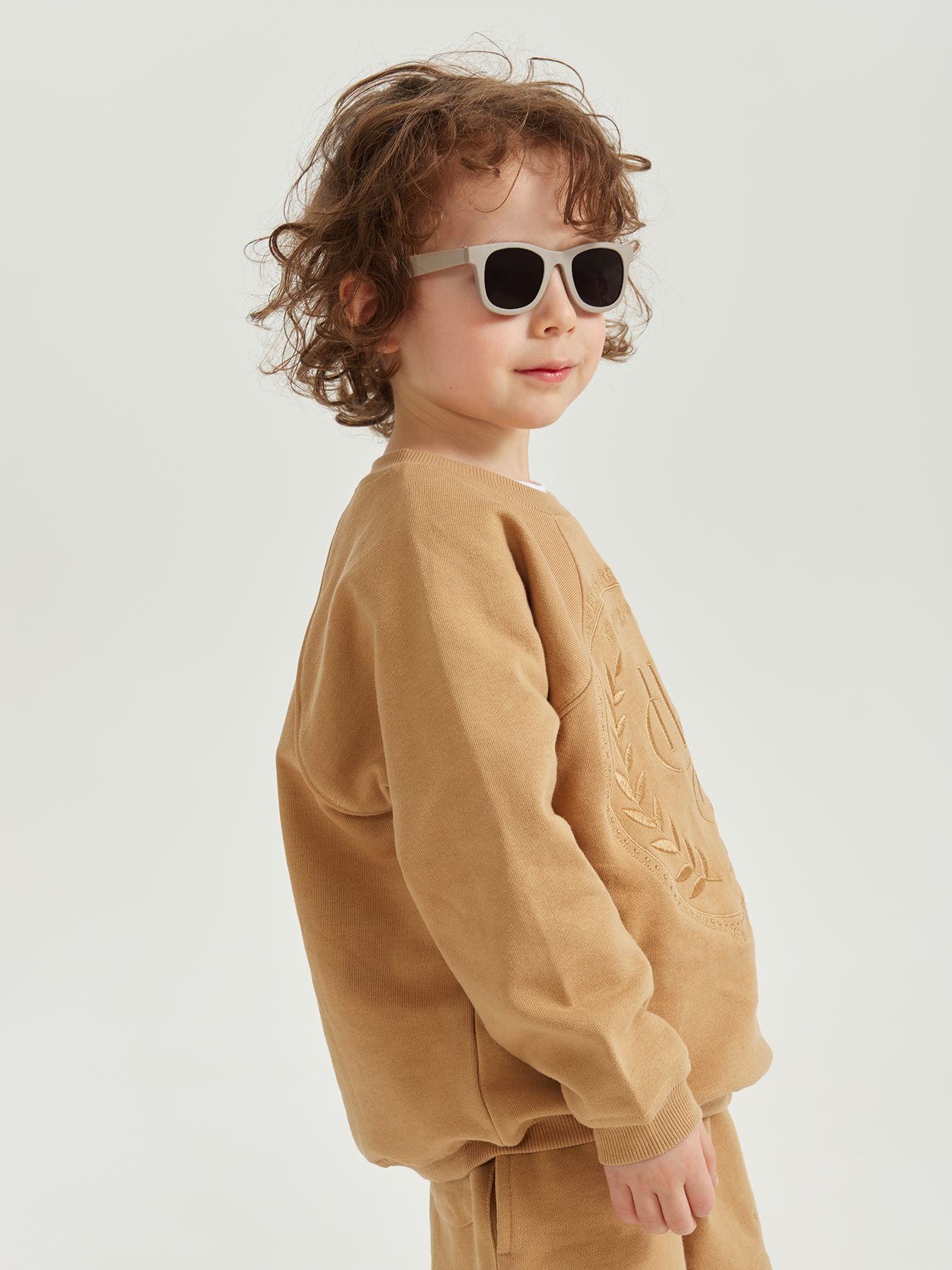 Уютный джемпер теплый и хорошо держит форму. Для дополнительной защиты от ветра свитшот оснащен манжетами и резинкой по низу изделия. Горловина дополнительно укреплена. Особенность кроя рукава – гипертрофированный реглан, что придает изделию архитектурную сложность. Джемпер станет утонченной и необычной деталью образов девочек и мальчиков.