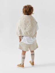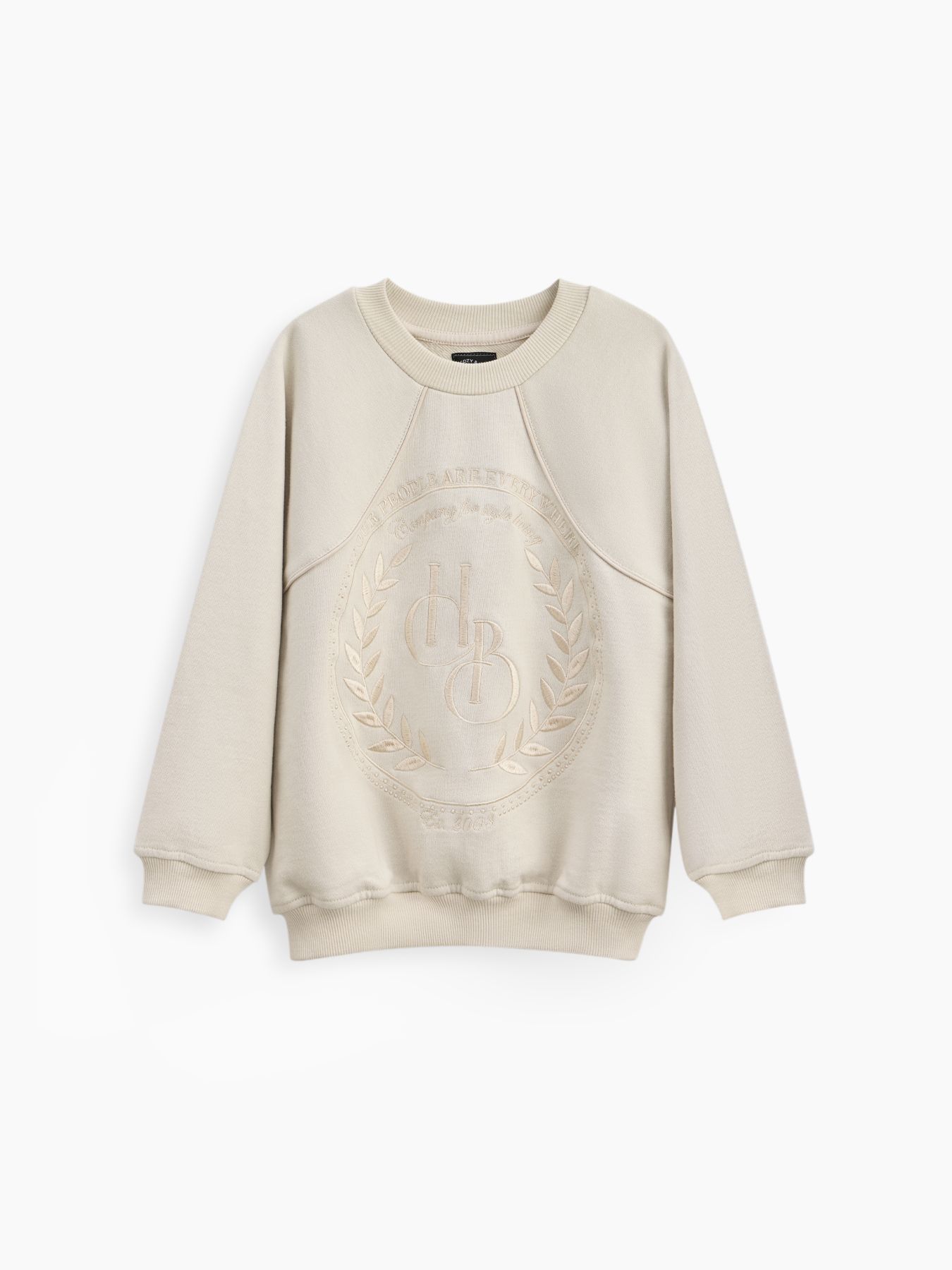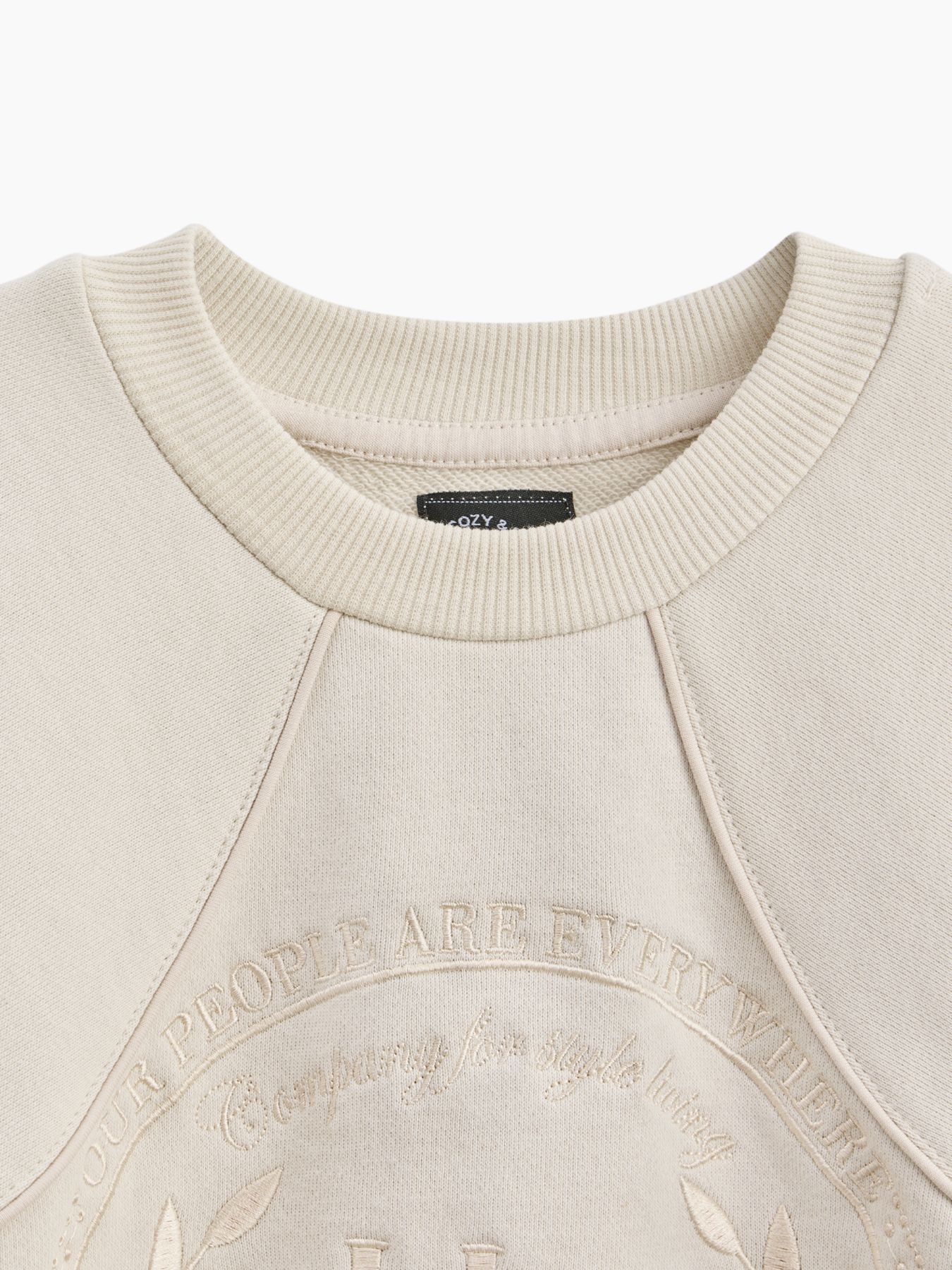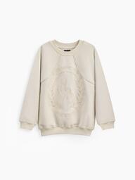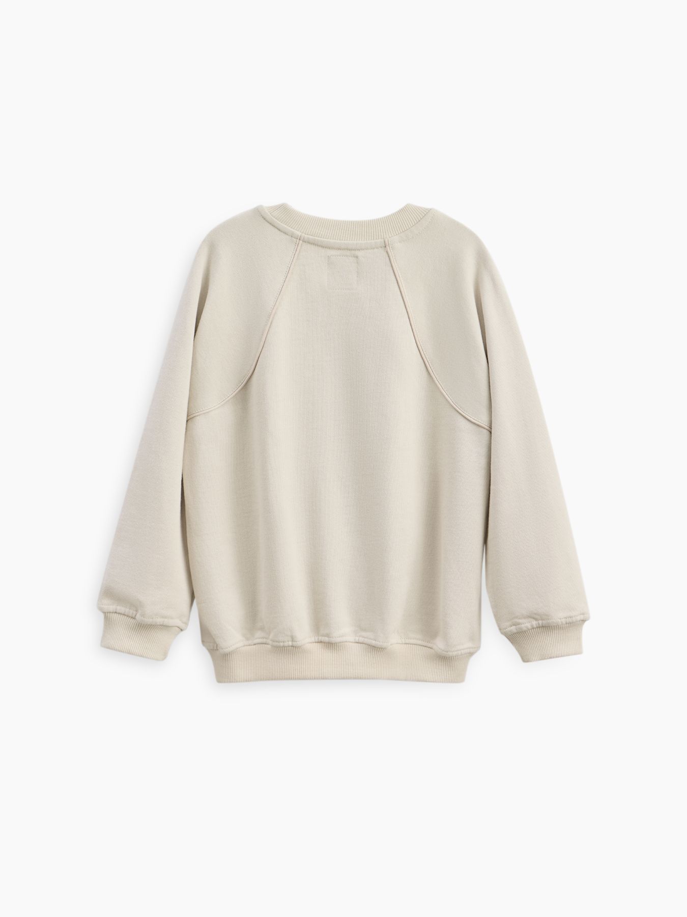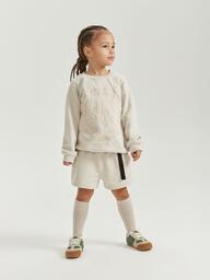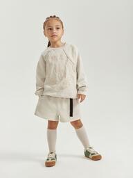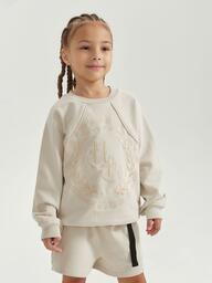 Уютный джемпер теплый и хорошо держит форму. Для дополнительной защиты от ветра свитшот оснащен манжетами и резинкой по низу изделия. Горловина дополнительно укреплена. Особенность кроя рукава – гипертрофированный реглан, что придает изделию архитектурную сложность. Джемпер станет утонченной и необычной деталью образов девочек и мальчиков.