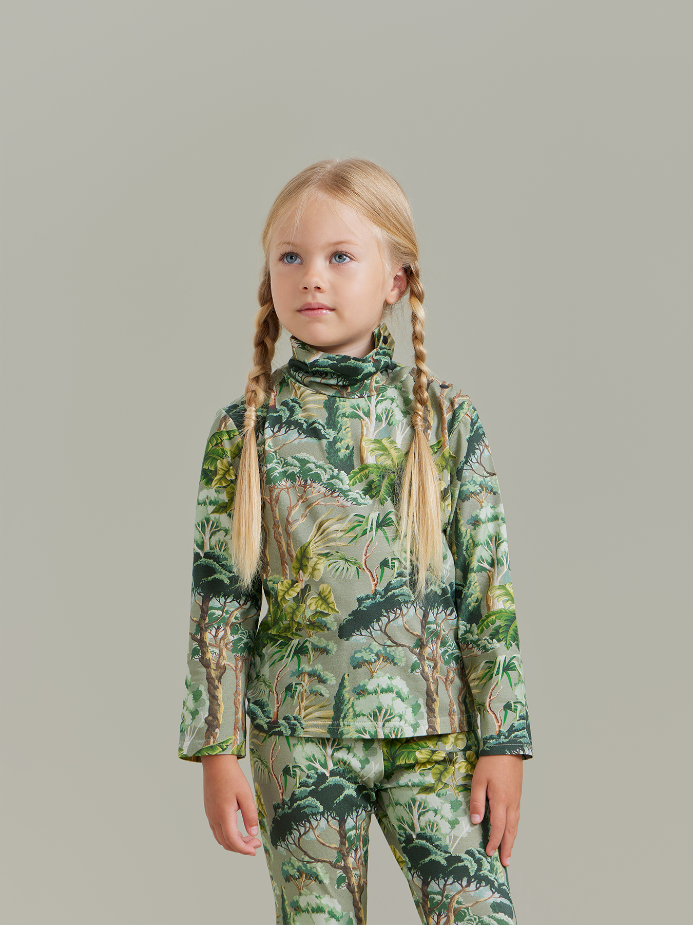 Водолазка – базовая вещь для прохладного времени года. Высокое горло защищает шею от ветра, при этом ткань хорошо тянется и одевание будет комфортным. Длинные рукава дают дополнительное утепление. Можно носить отдельно или под свитеры и худи. Джемпер сшит из приятного на ощупь материала смеси хлопка и эвкалиптового волокна. Материал хорошо отводит влагу. Комфортная посадка подойдет девочкам и мальчикам, крой не сковывает движения. Стильный дизайн позволит создать модные образы с юбками, сарафанами, брюками и другой одеждой.