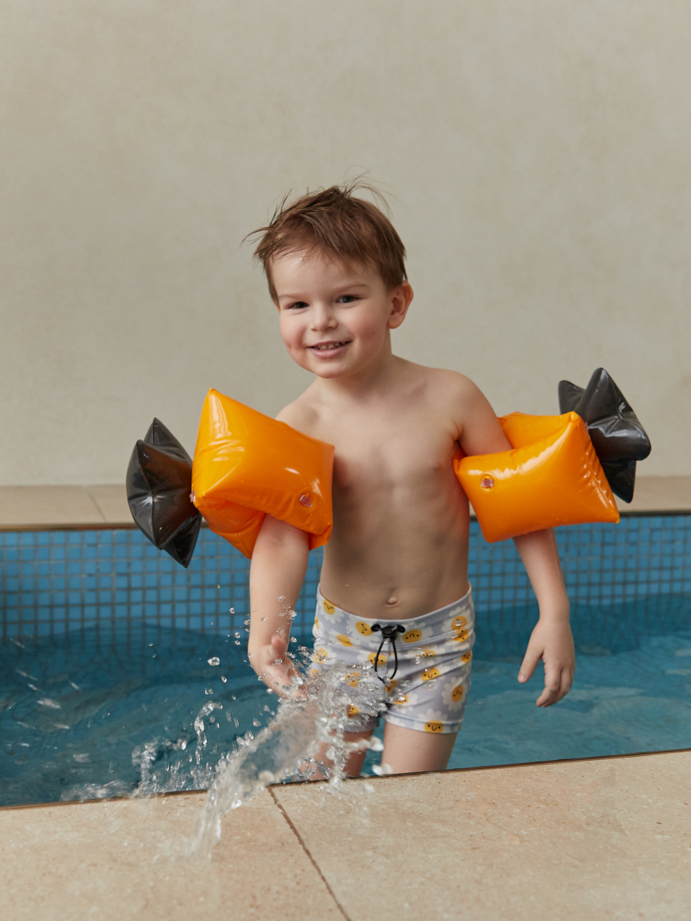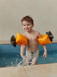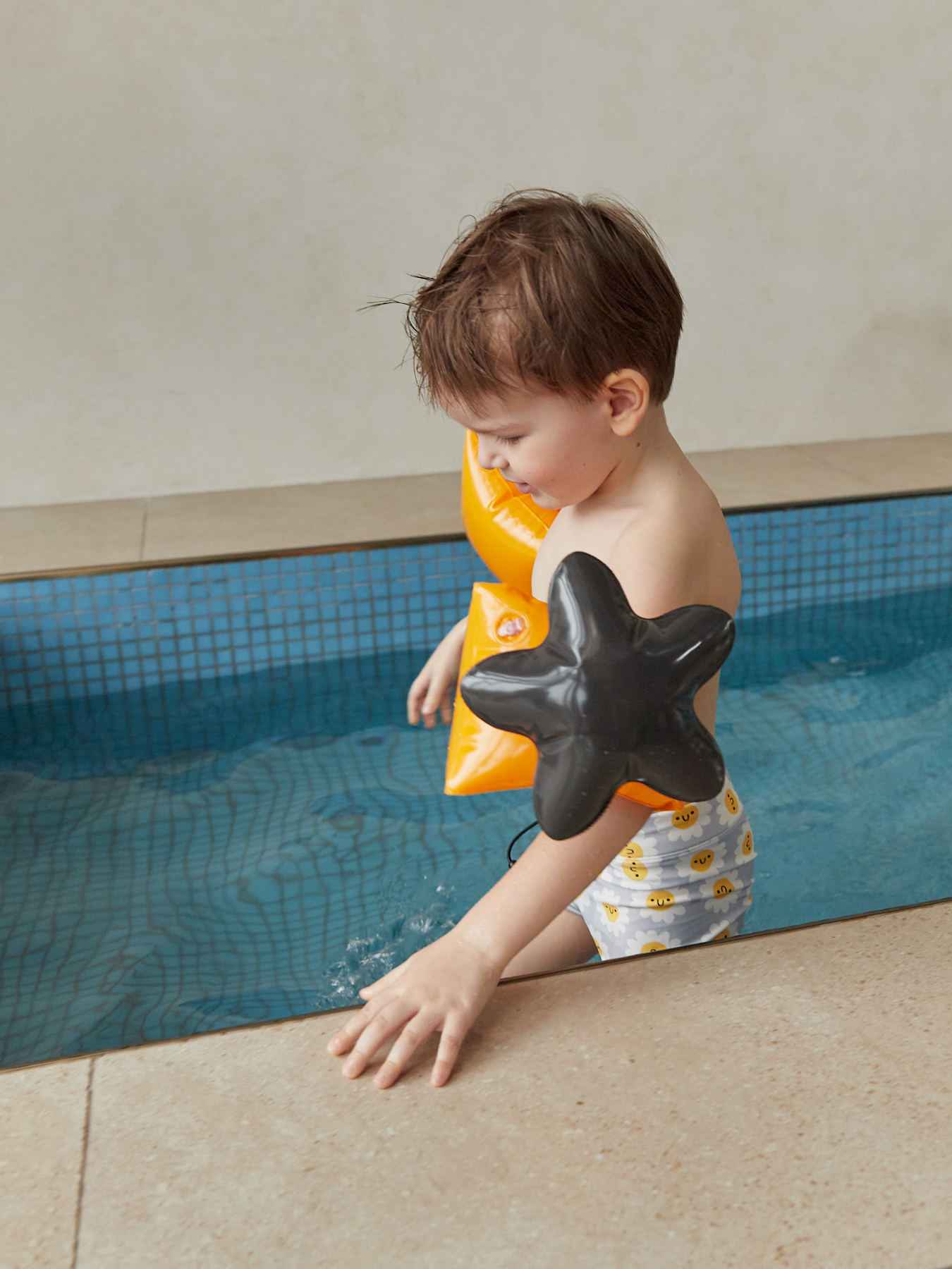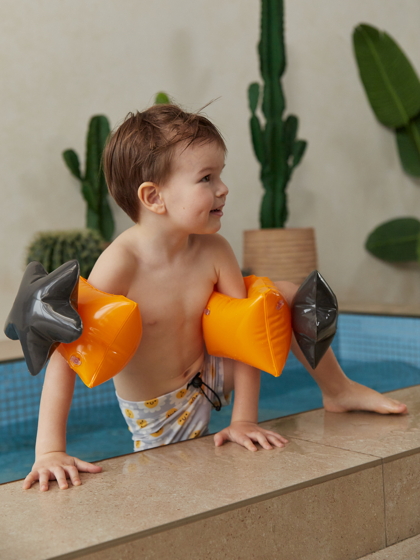 Нарукавники для плавания помогут малышу научиться плавать и справляться со страхом воды, который может возникать при первых попытках. Технология «внутреннего шва» делает контуры изделия мягкими и безопасными. Детали в виде звёздочек или крылышек позволят малышу почувствовать себя сказочным персонажем или супергероем.