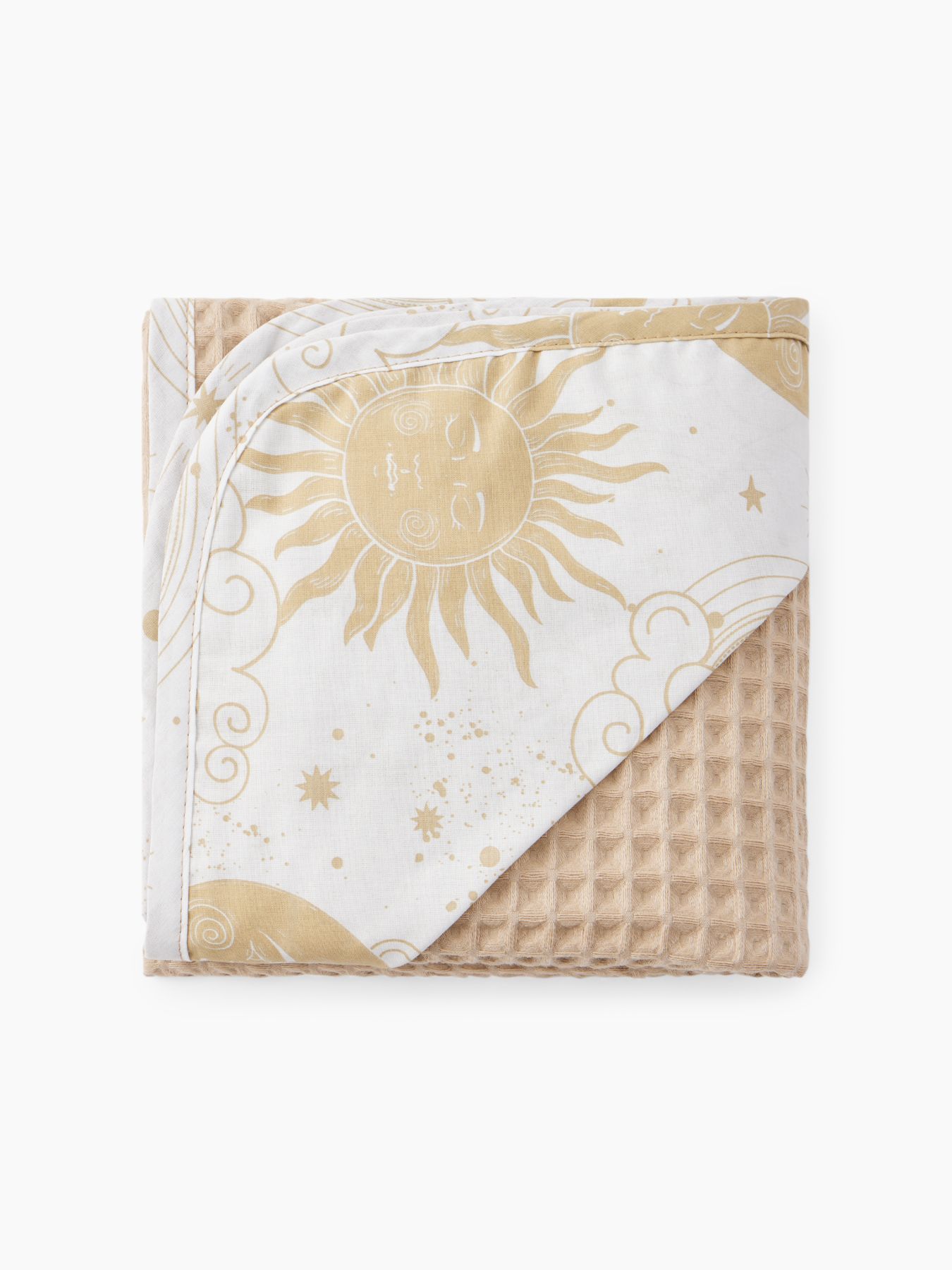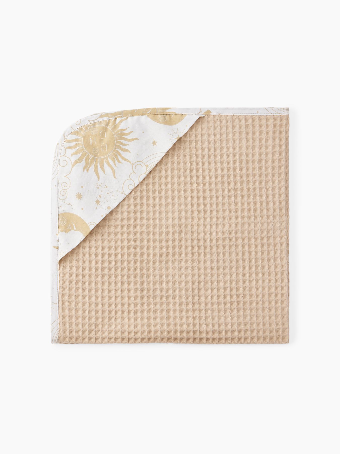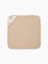 Полотенце с капюшоном, сшитое из мягкого вафельного полотна, окутает новорожденного атмосферой тепла и спокойствия после каждого купания. Материал очень нежный и приятный, хорошо впитывает влагу. Капюшон на уголке позволит защитить мокрую голову от сквозняков. Широкое полотенце удобно обернуть вокруг младенца, успокоив его. Компактное и легкое изделие быстро сохнет и точно понравится и мамам, и малышам.