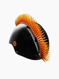 Шлем с ирокезом на голове сделает малыша заметным для пешеходов. Даже если ребенок отказывался надевать защиту на голову, теперь он изменит свое мнение. Дерзкий и яркий вид понравится малышу и выразит его смелую бунтарскую натуру. Размер и крепление регулируются, потому модничать в этом стильным аксессуаре ребенок сможет несколько лет.