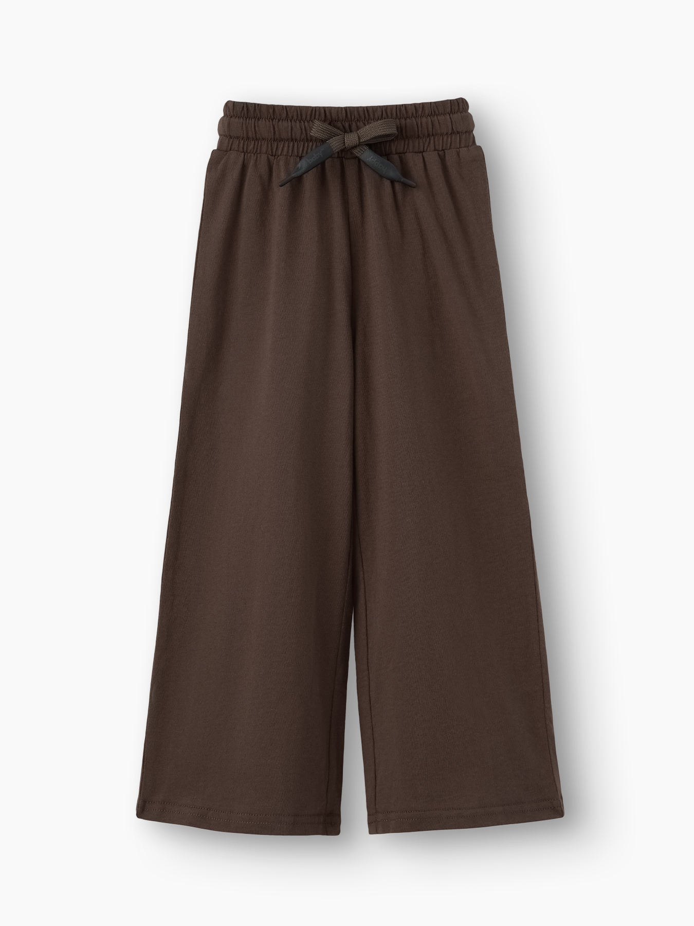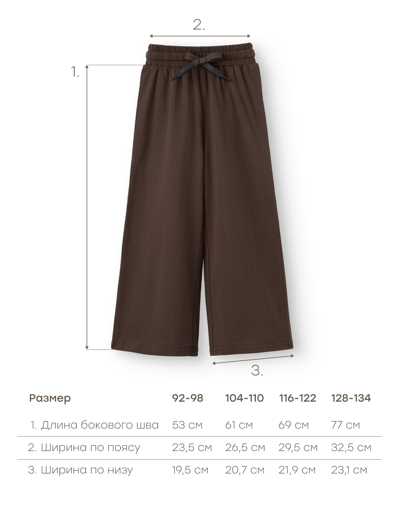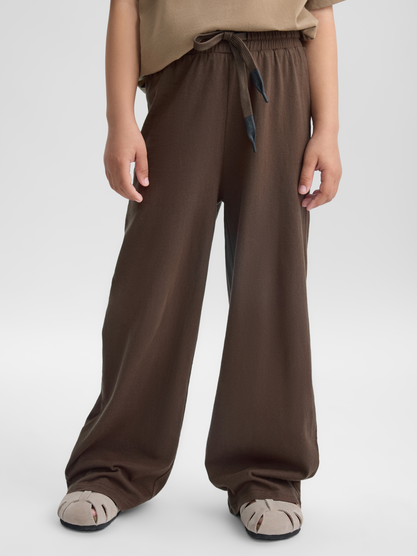 Трикотажные брюки — комфортный и стильный вариант на каждый день. Широкий крой обеспечивает свободу движений, а пояс на мягкой резинке с регулируемыми шнурками добавляет удобства. Шнурки украшены фирменными эглетами, что придаёт модели особый акцент. Карманы делают брюки практичными, а базовые цвета легко сочетаются с разными стилями. Отличный выбор для прогулок, дома или активного отдыха.