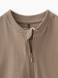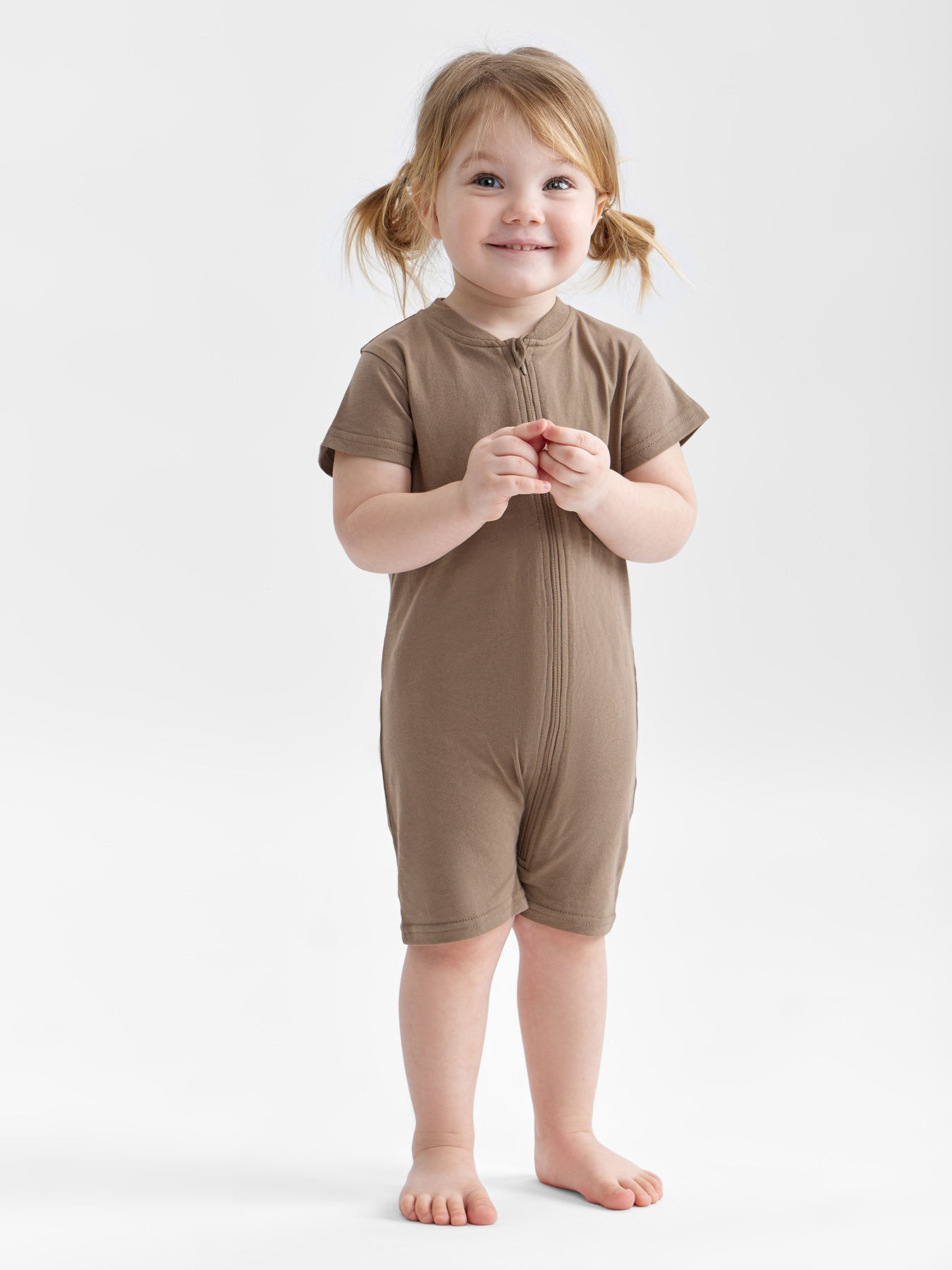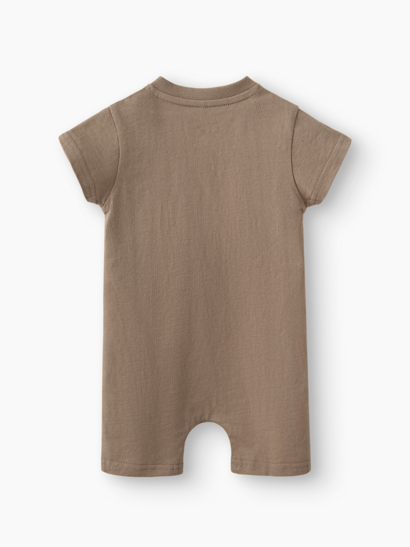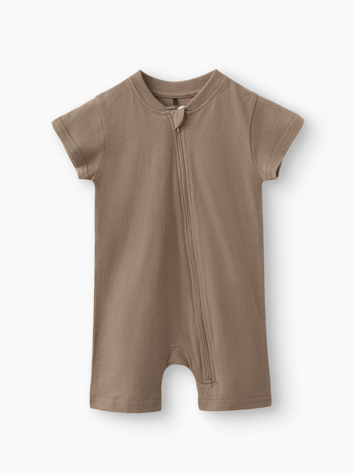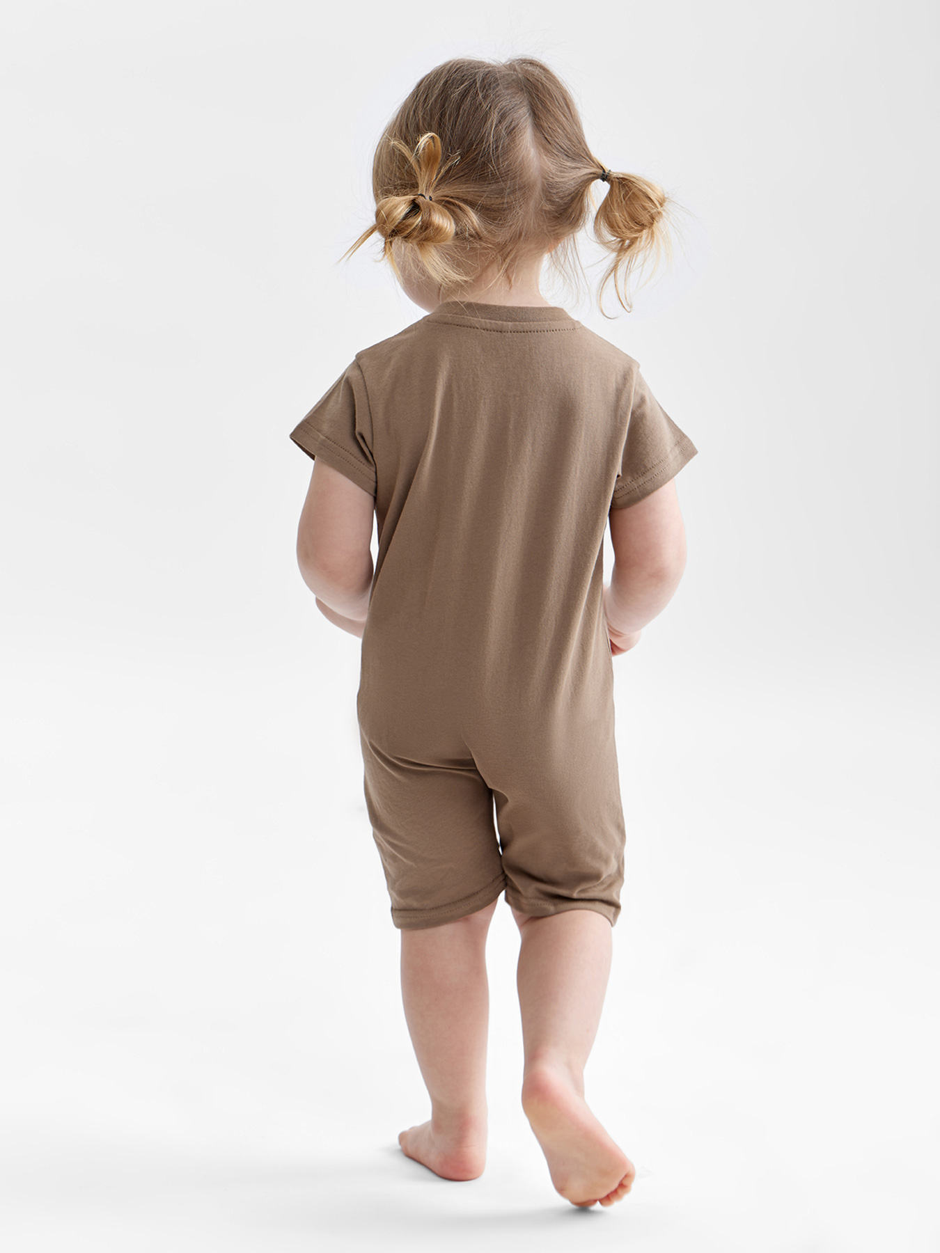 Комбинезон из хлопкового трикотажа — удобная и практичная модель для малышей. Мягкий и дышащий материал обеспечивает комфорт и заботится о нежной коже ребенка. Короткие рукава подходят для теплой погоды, а застежка-молния, проходящая от горловины до низа, облегчает переодевание. Продуманное лекало создает дополнительное пространство для подгузника и обеспечивает свободу движений. Идеальный выбор для игр, сна и прогулок.