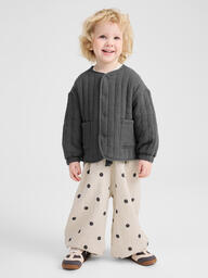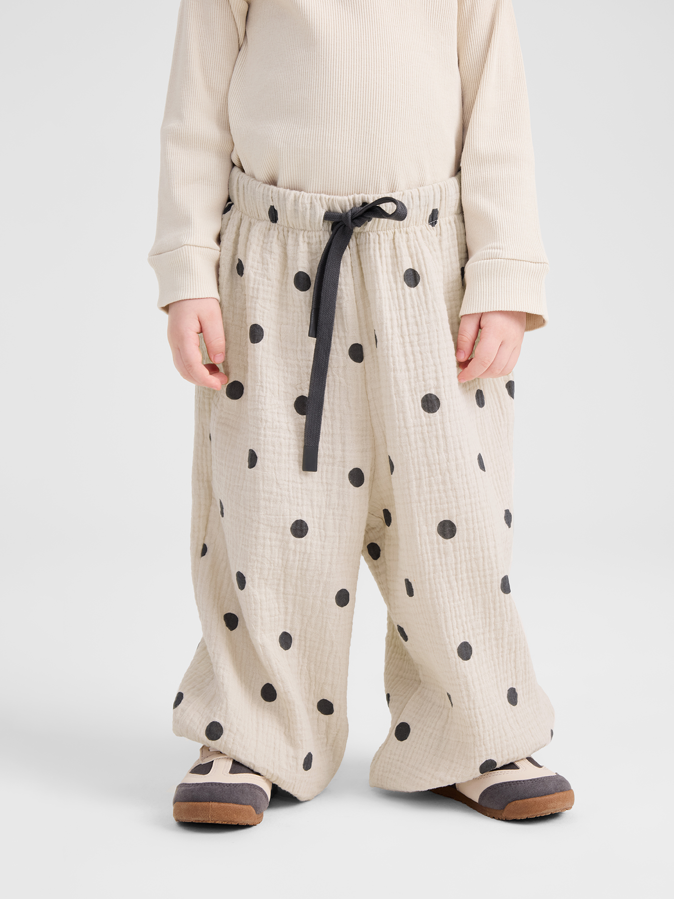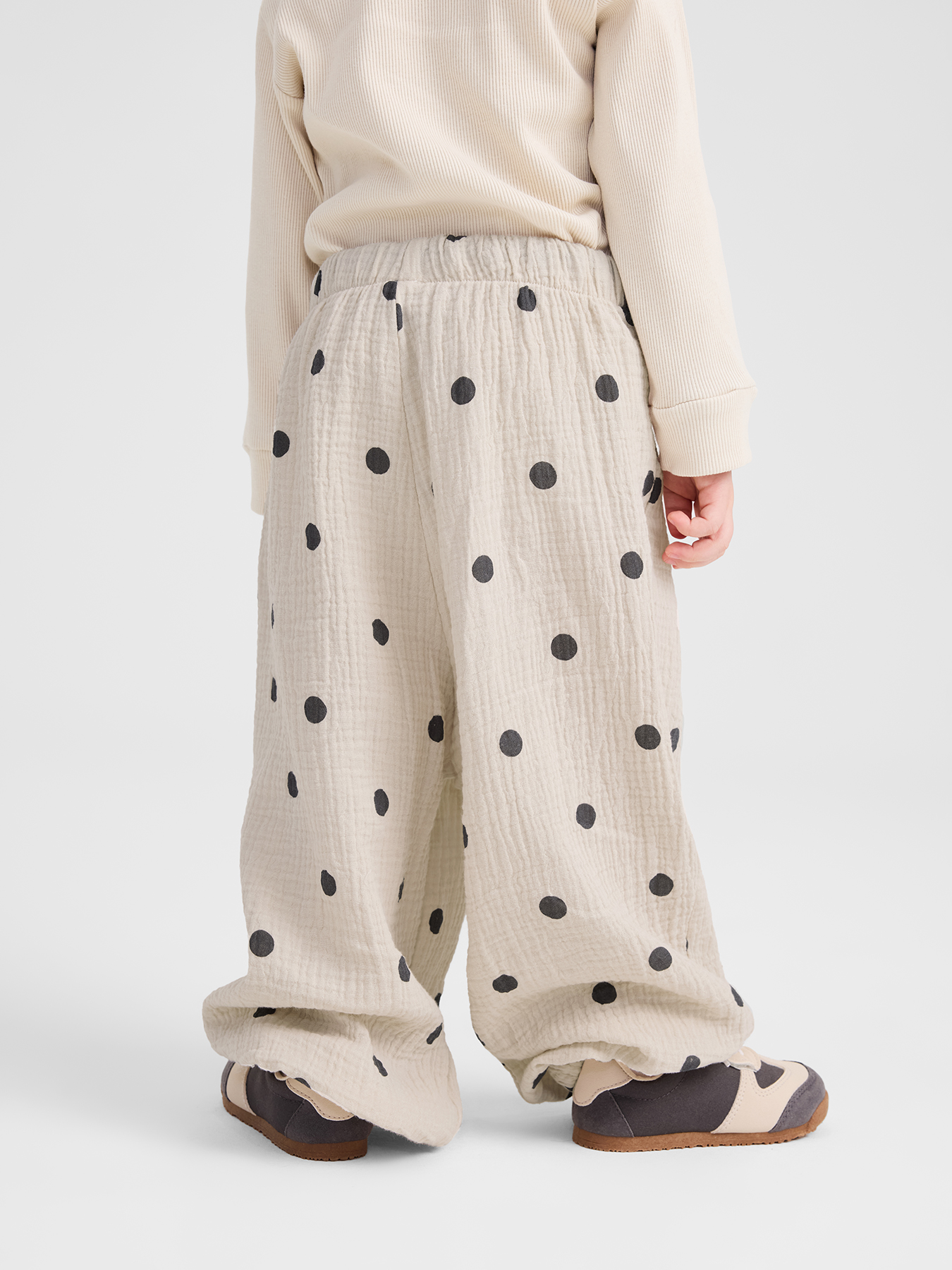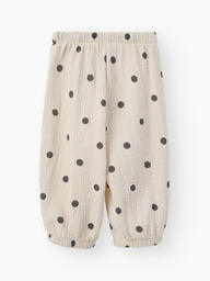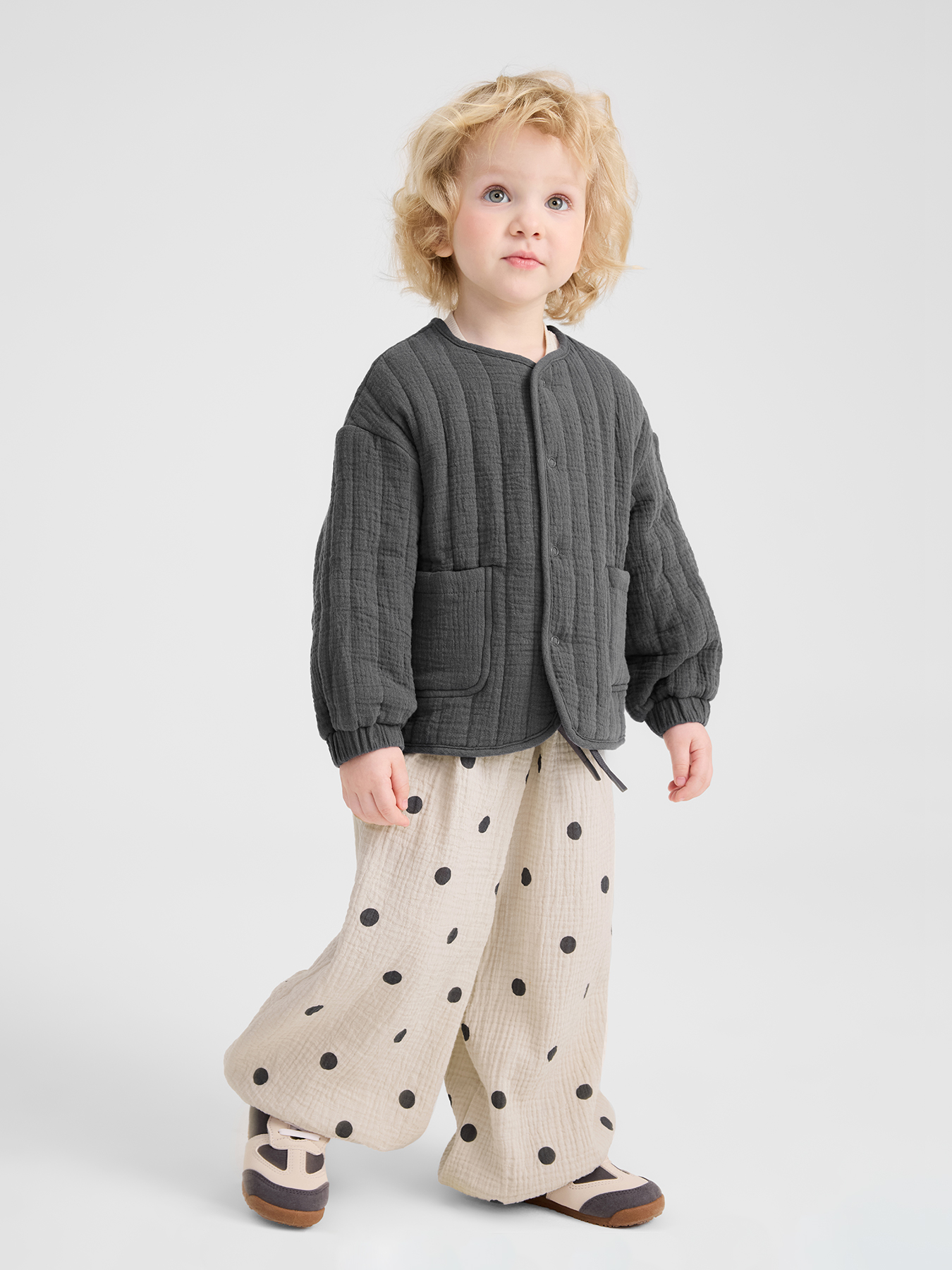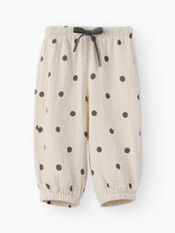 Хлопковые брюки для малышей — практичная модель на каждый день. Выполнены из мягкого и дышащего материала, обеспечивают удобство при носке и комфорт нежной коже ребенка. Эластичный пояс со шнурком позволяет легко регулировать посадку, обеспечивая надежную фиксацию без дискомфорта. Манжеты на штанинах мягко прилегают, предотвращая задирание и добавляя практичности. Универсальный крой и лаконичный дизайн делают брюки подходящими для любого случая. Легко комбинируются, создавая стильные и удобные образы для маленьких исследователей.