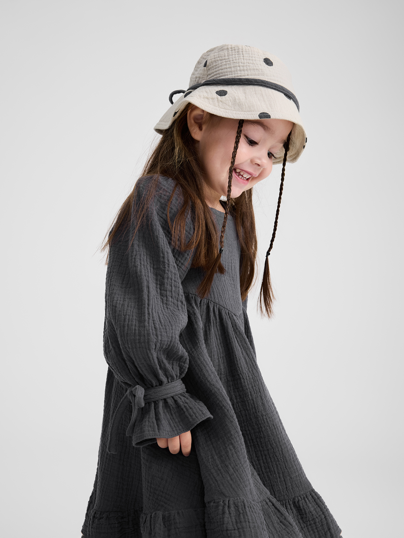 Хлопковое платье для девочек — воплощение нежности и стиля, идеально подходит для маленьких принцесс. Модель с длинными рукавами-фонариками придает образу изысканность, а пышная юбка с рюшами на подоле делает платье по-настоящему волшебным. Выполненное из мягкого и дышащего хлопка, оно обеспечивает максимальный комфорт в течение всего дня. Трендовые цвета позволяют выглядеть модно и привлекательно, а универсальный фасон подходит как для праздничных мероприятий, так и для создания атмосферы праздника в любой день. Платье легко комбинируется с аксессуарами, добавляя образу законченности и изящества.