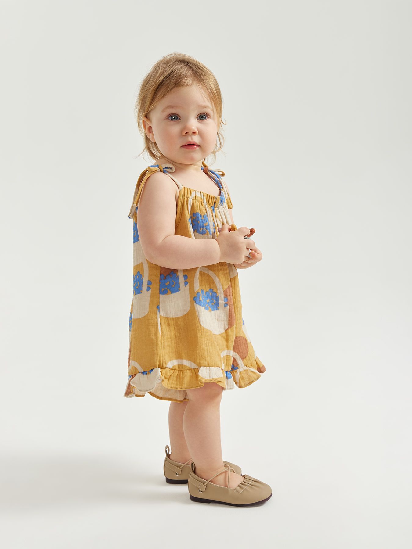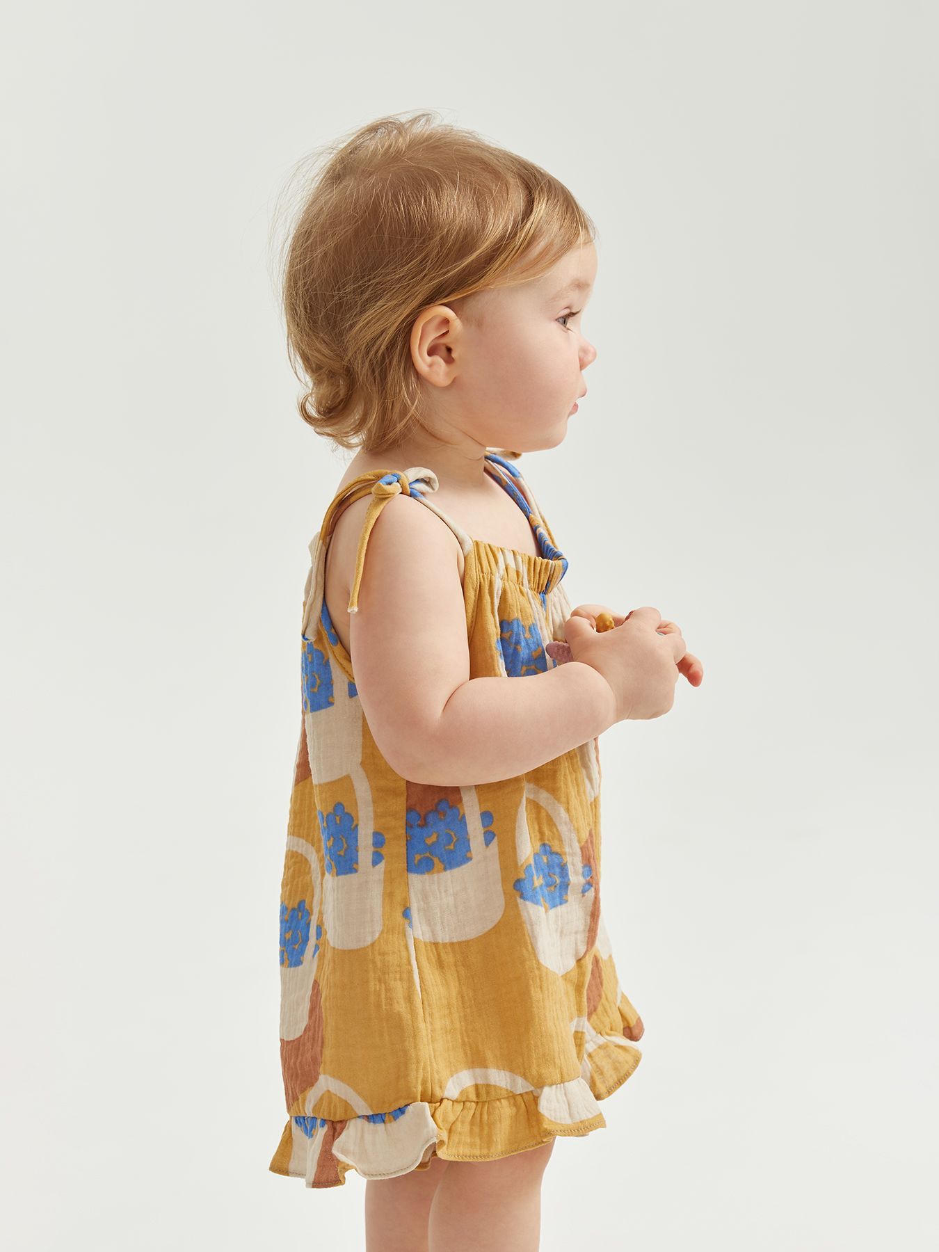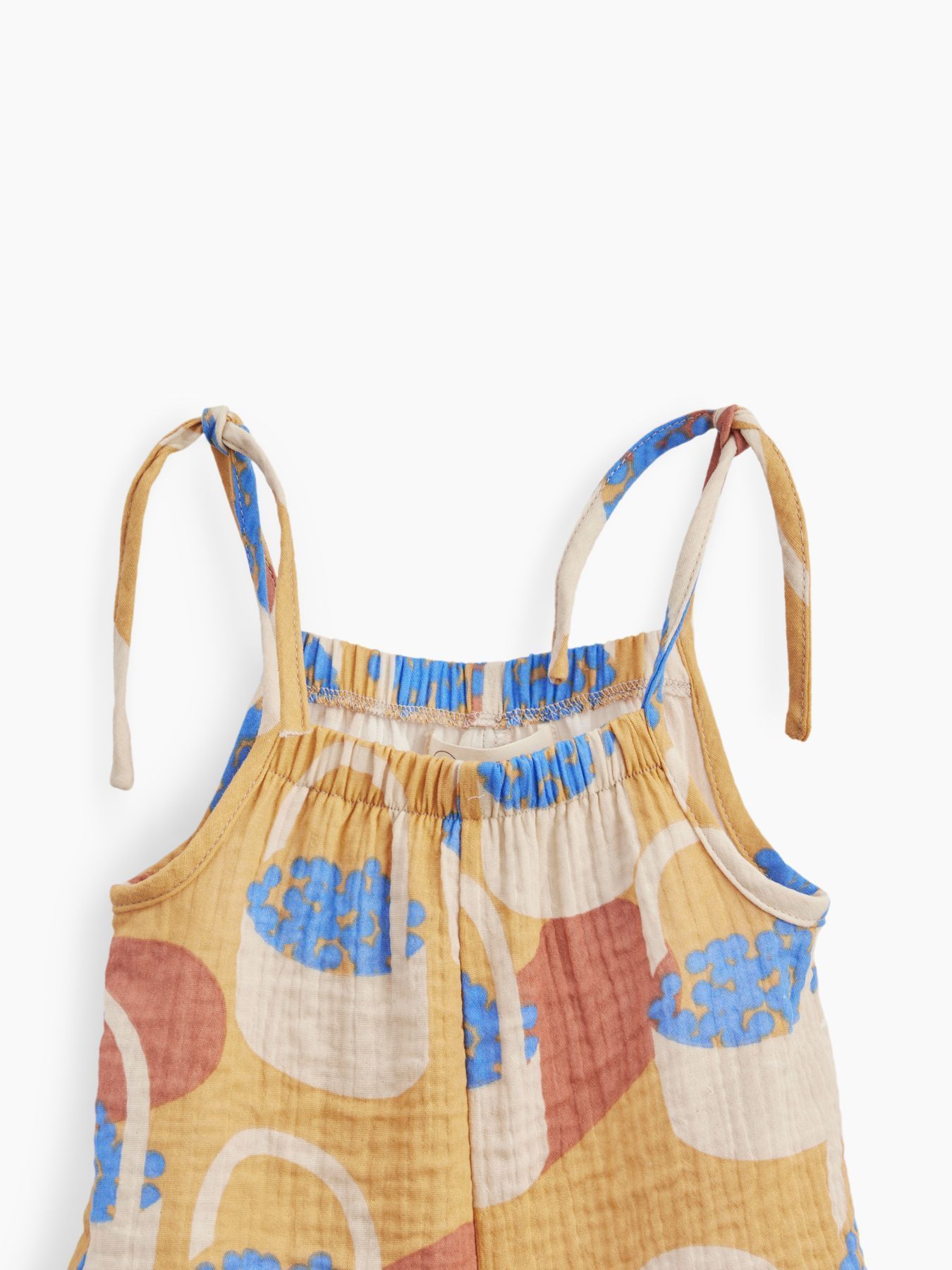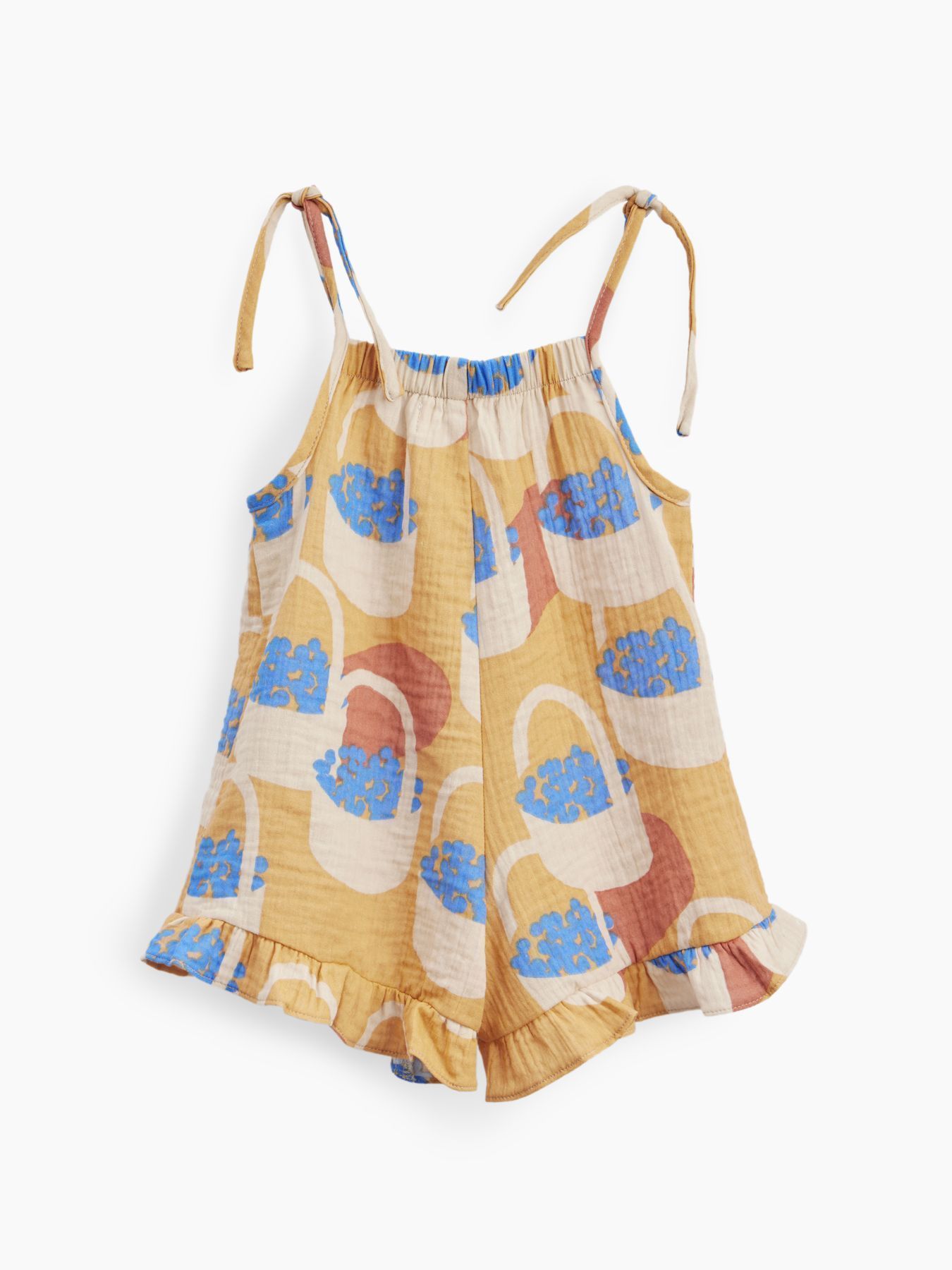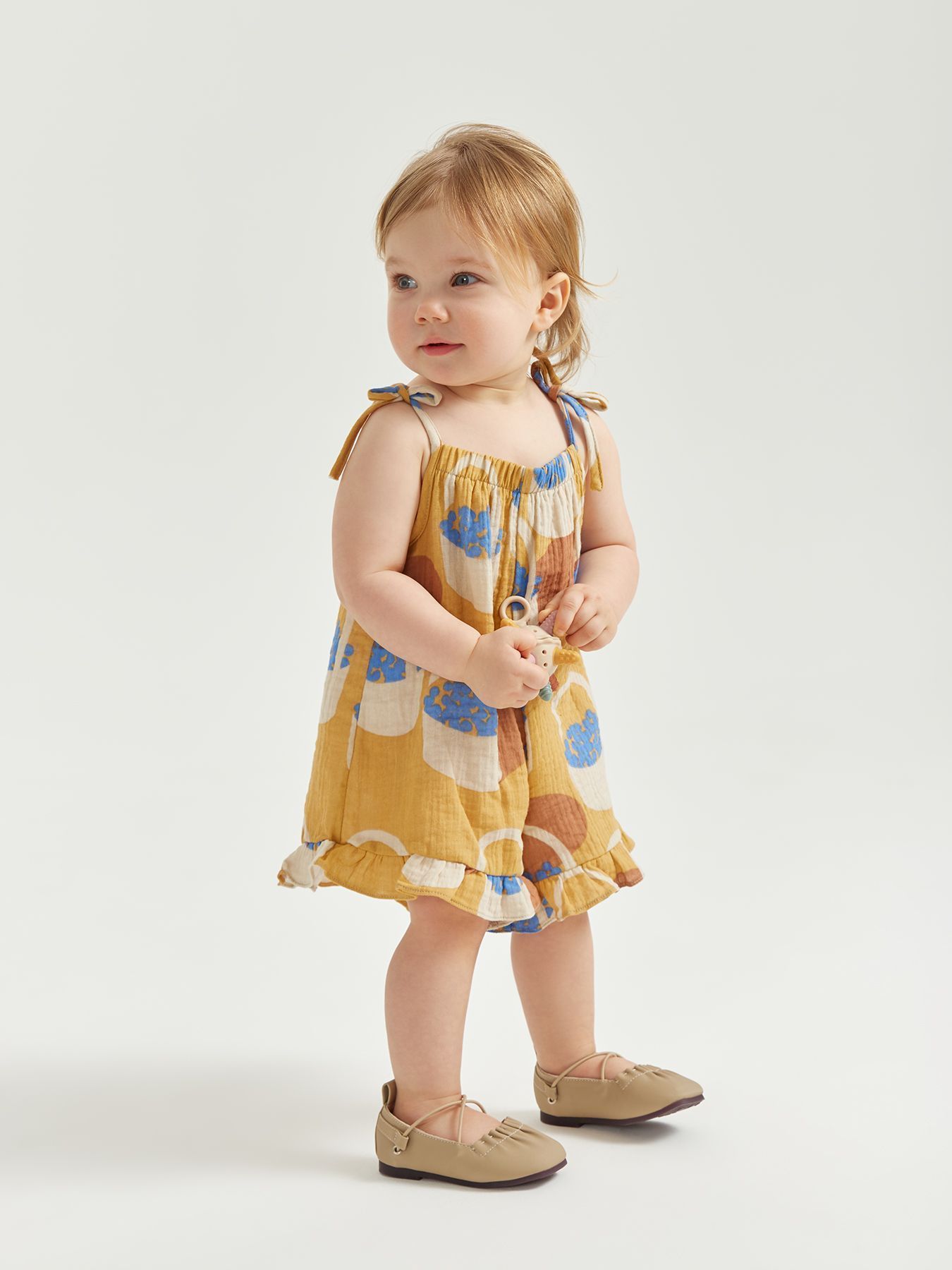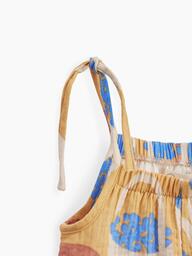 Летний комбинезон – одна из самых удобных вещей для самых маленьких. Свободный крой не сковывает движения, есть пространство под подгузник. Благодаря завязкам можно легко отрегулировать посадку по фигуре. Изделие сшито из 100% хлопковой ткани, которая отводит влагу, дышит, не натирает и не электризуется. Комбинезон можно носить с любыми топами или без них.
