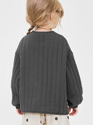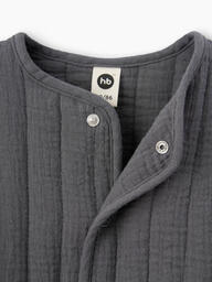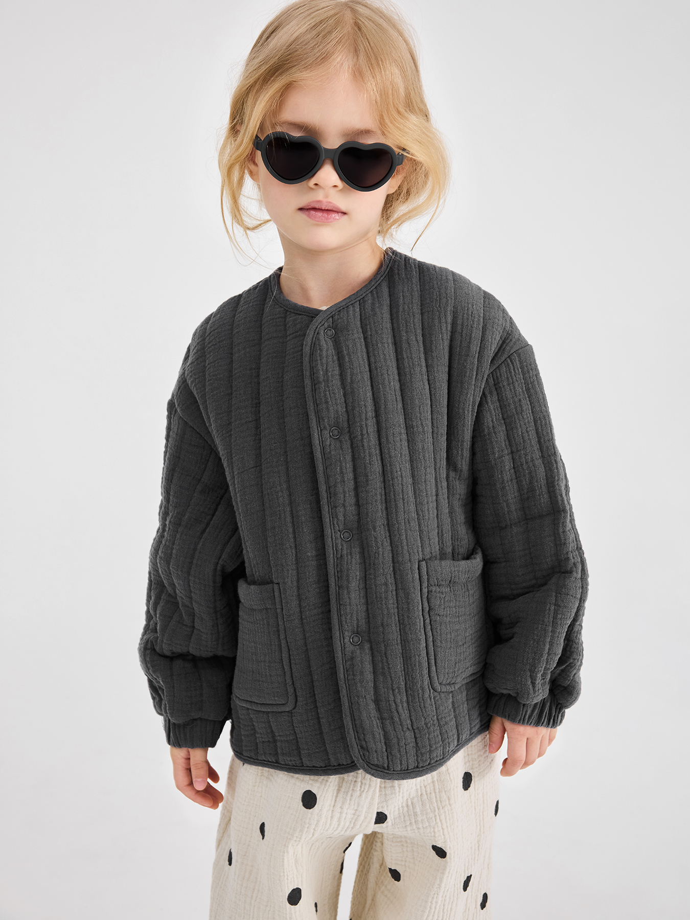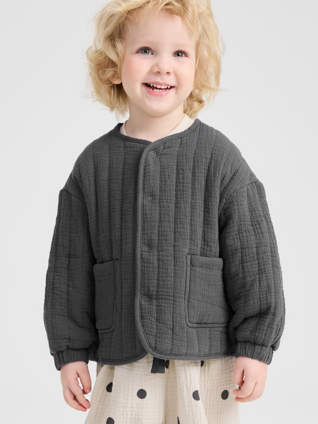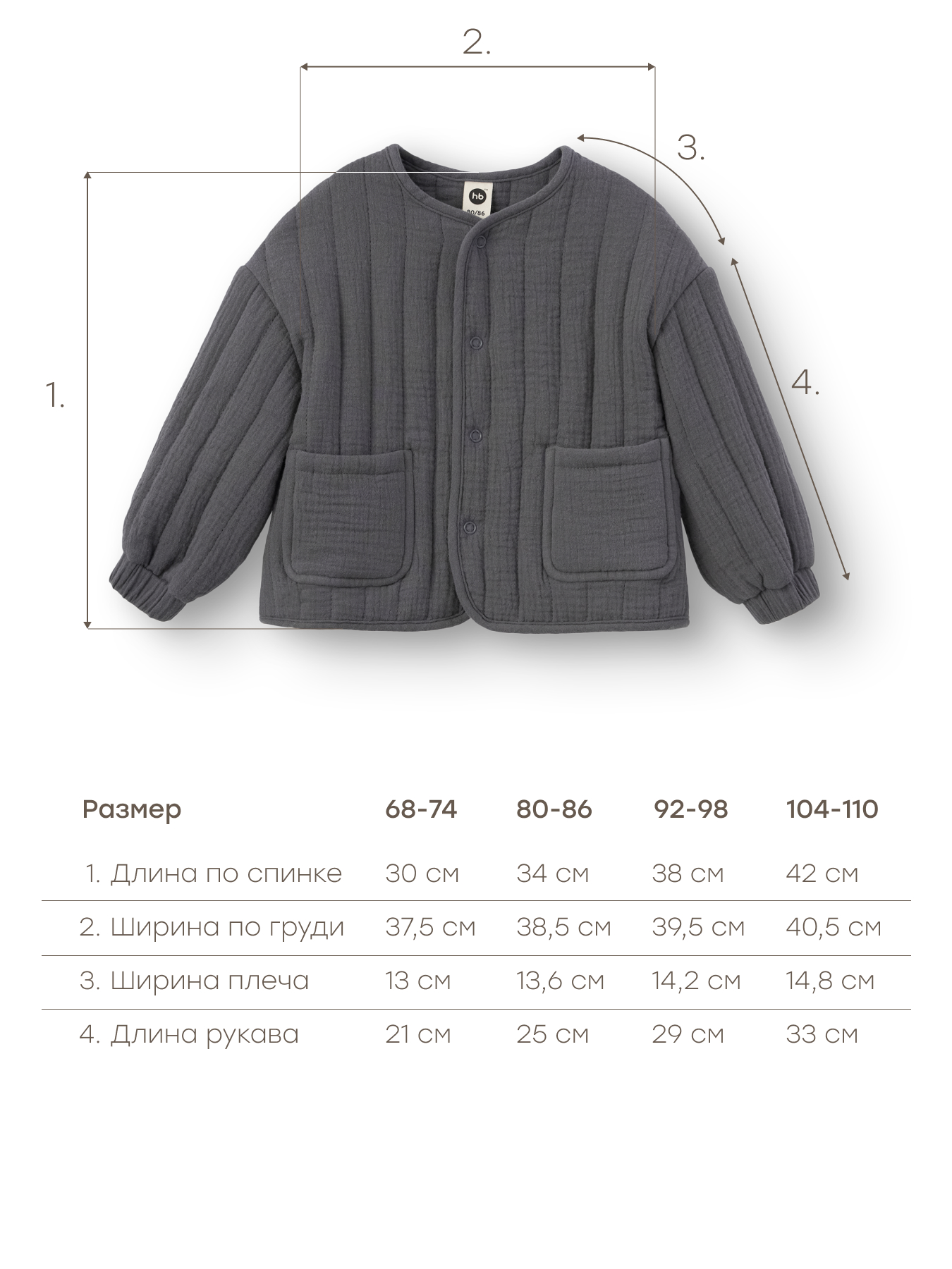 Детская куртка из хлопка — стильная и практичная модель для летнего сезона. Легкий и дышащий материал обеспечивает комфорт, позволяя коже дышать. Удобная застежка на пуговицы позволяет создавать многослойные комплекты, свободный крой не стесняет движений ребенка. Минималистичная куртка легко сочетается с шортами, брюками или платьями. Накладные карманы добавляют практичности, позволяя ребенку носить с собой мелкие предметы, такие как платочек или небольшая игрушка. Материал выдерживает активное использование и частые стирки, оставаясь в отличном состоянии.