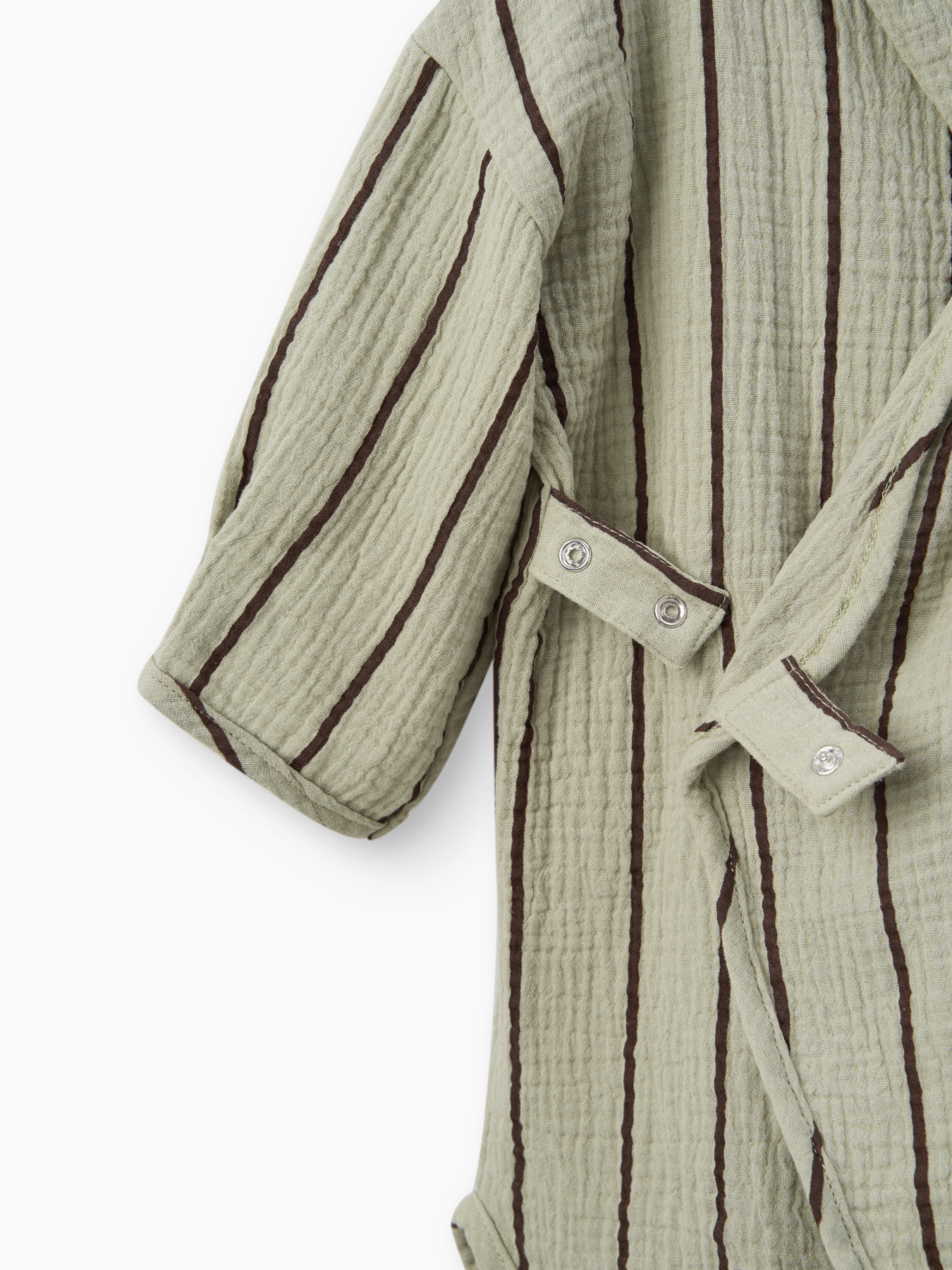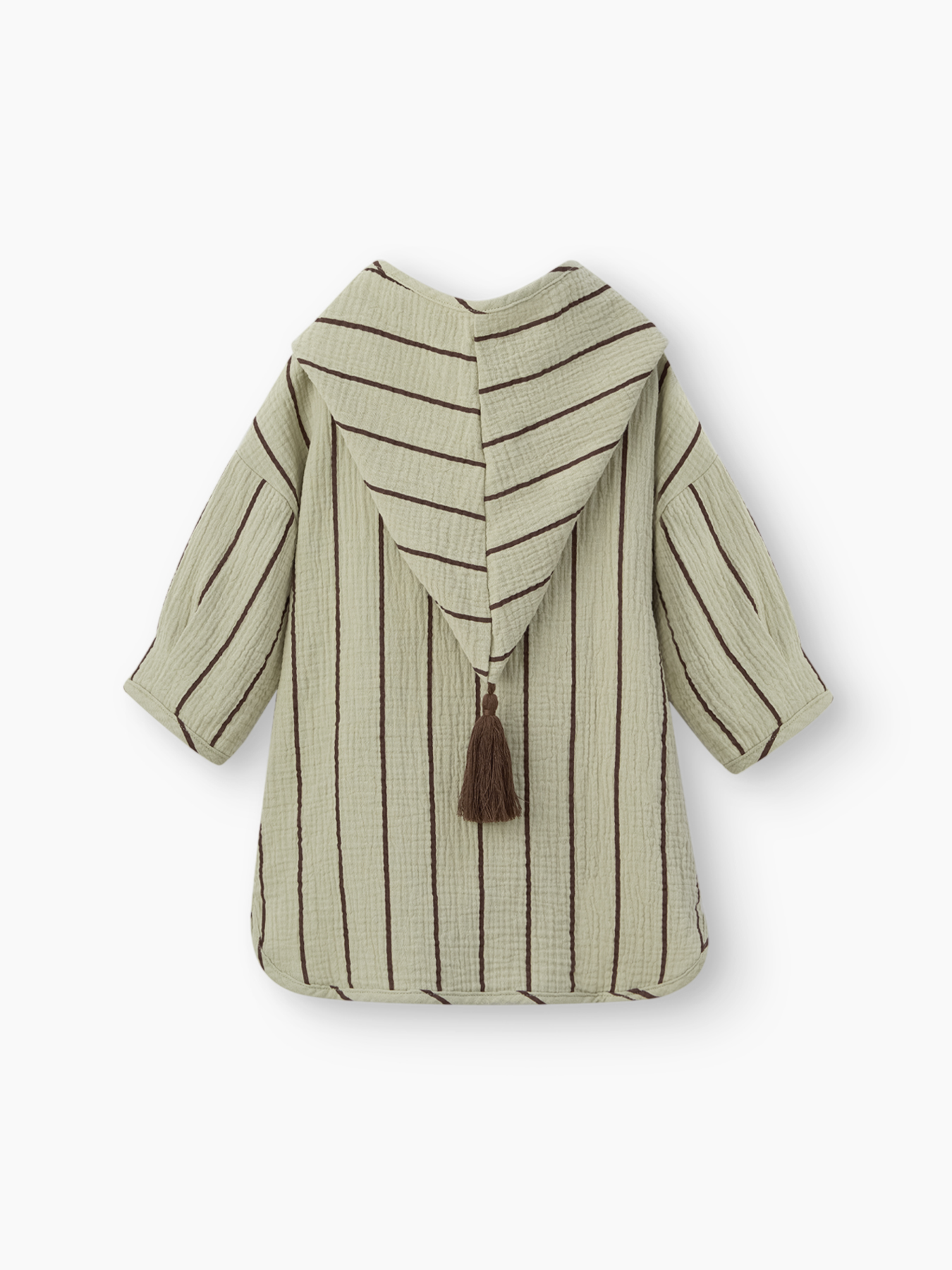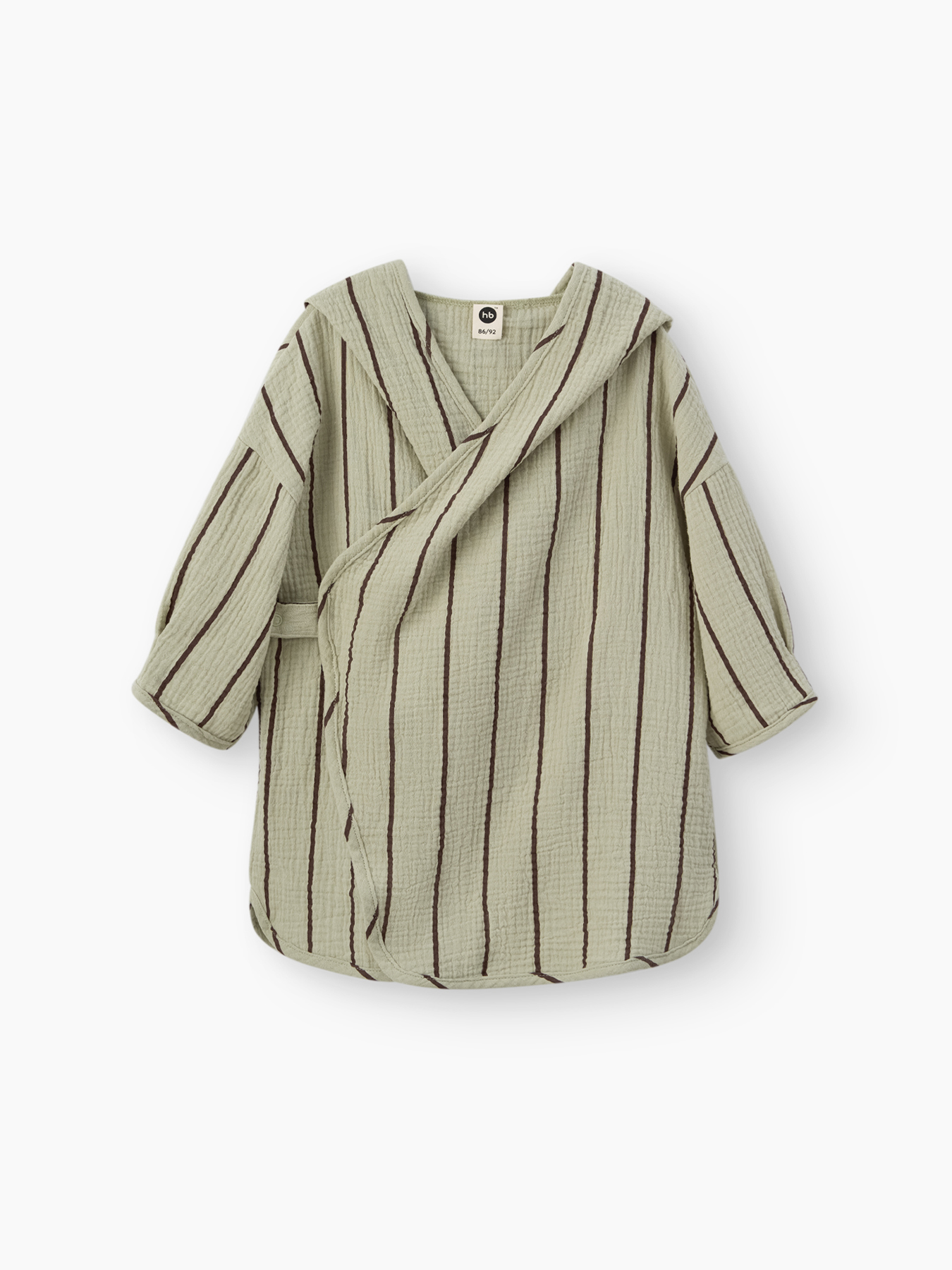 Пляжное пончо из муслина – настоящий летний хит. Удобно завернуть малыша в пончо после купания и не переживать за солнечные ожоги. Муслин отлично впитывает влагу и быстро сохнет. В одежде из муслина не жарко. Капюшон защитит от солнца голову, а длинные рукава уберегут руки. Благодаря застёжке «кимоно» пончо легко надевать, снимать и активно носить, не боясь, что пояс развяжется.