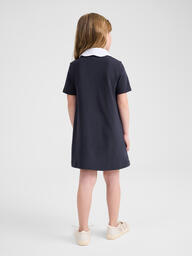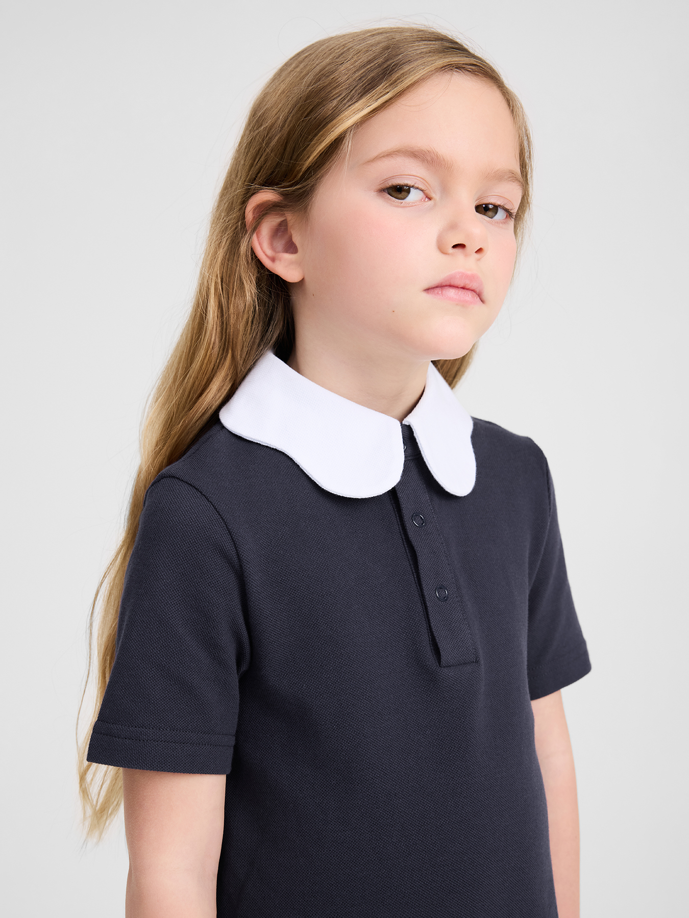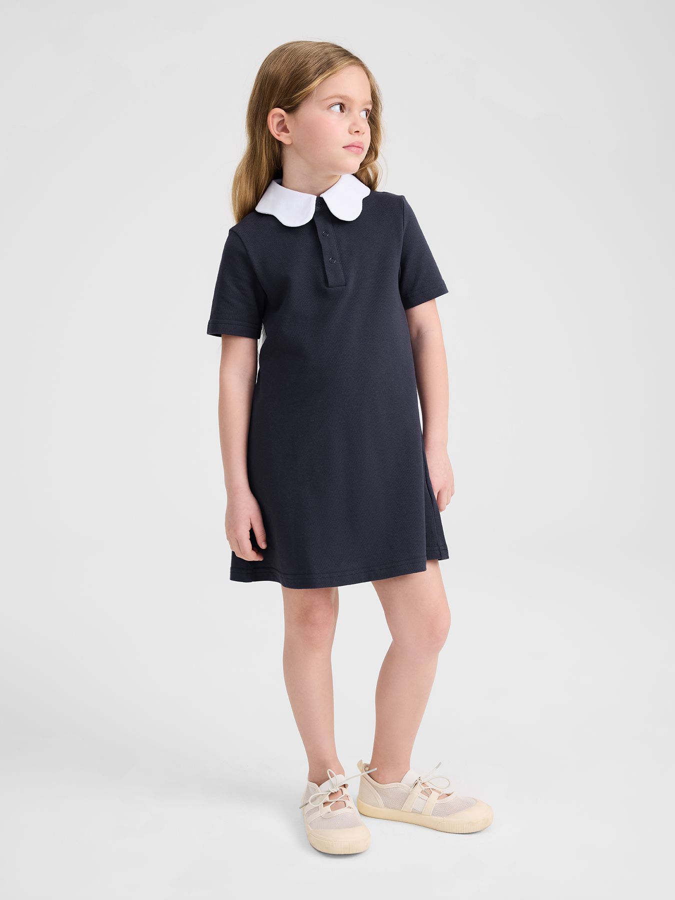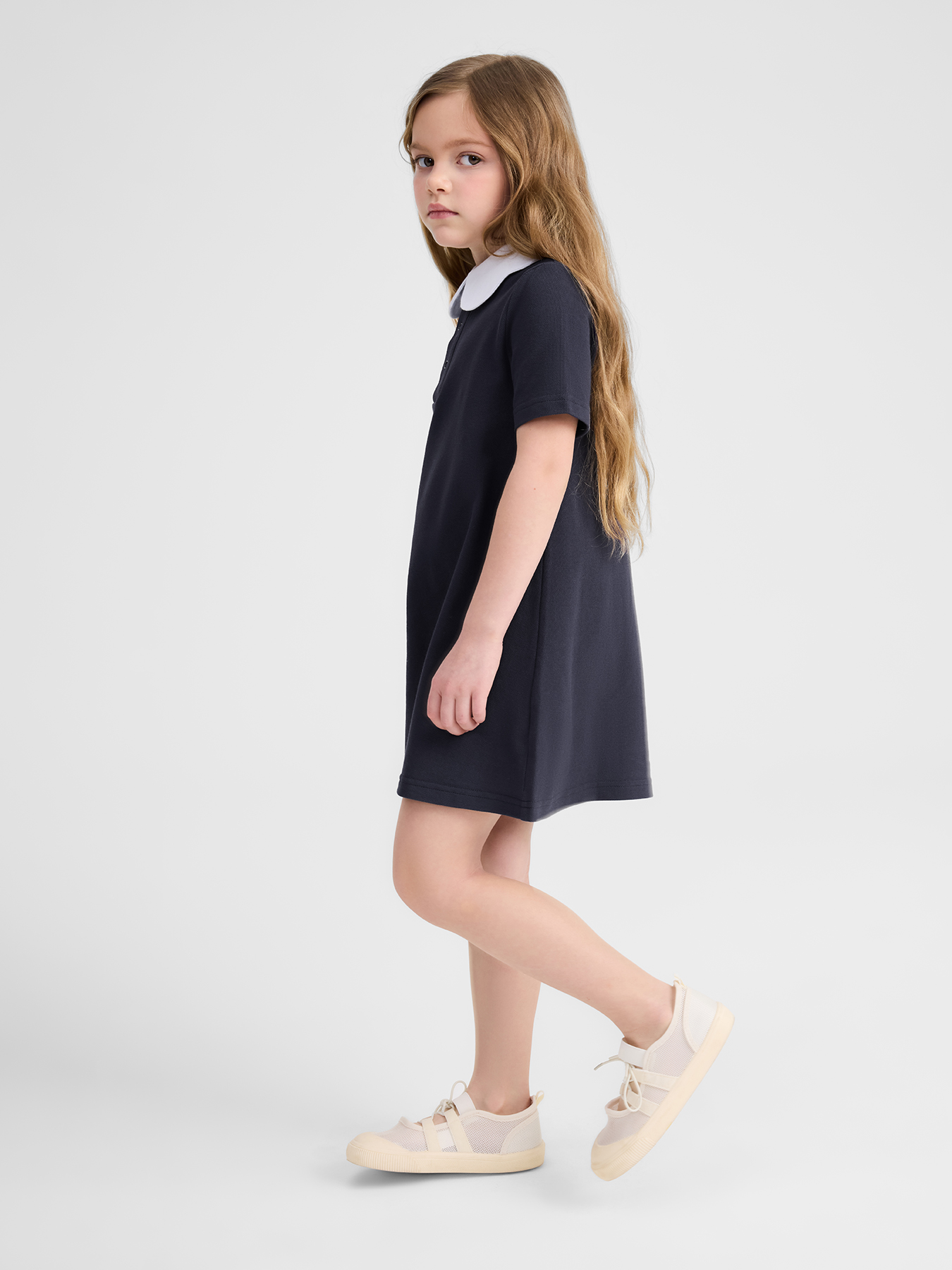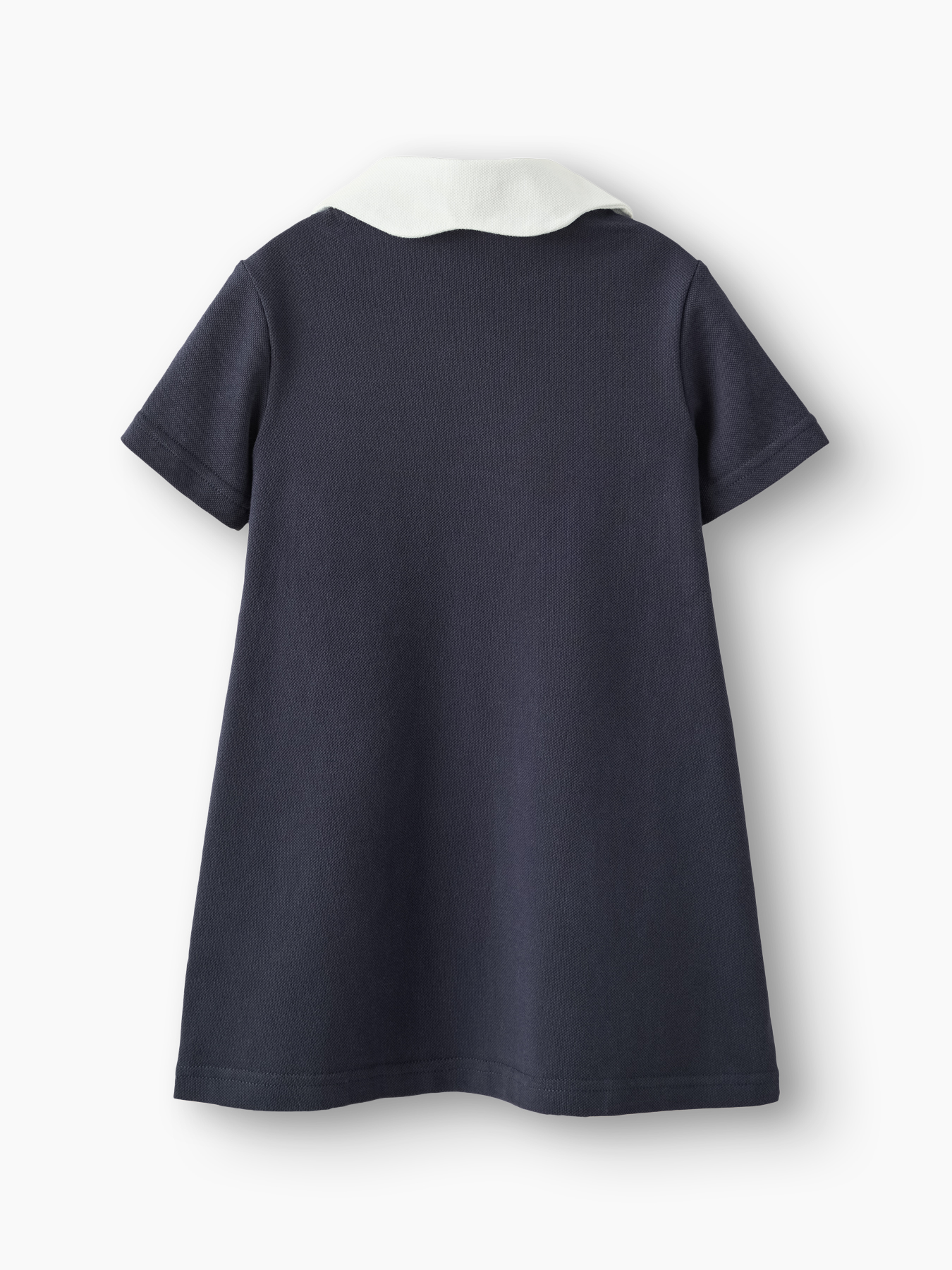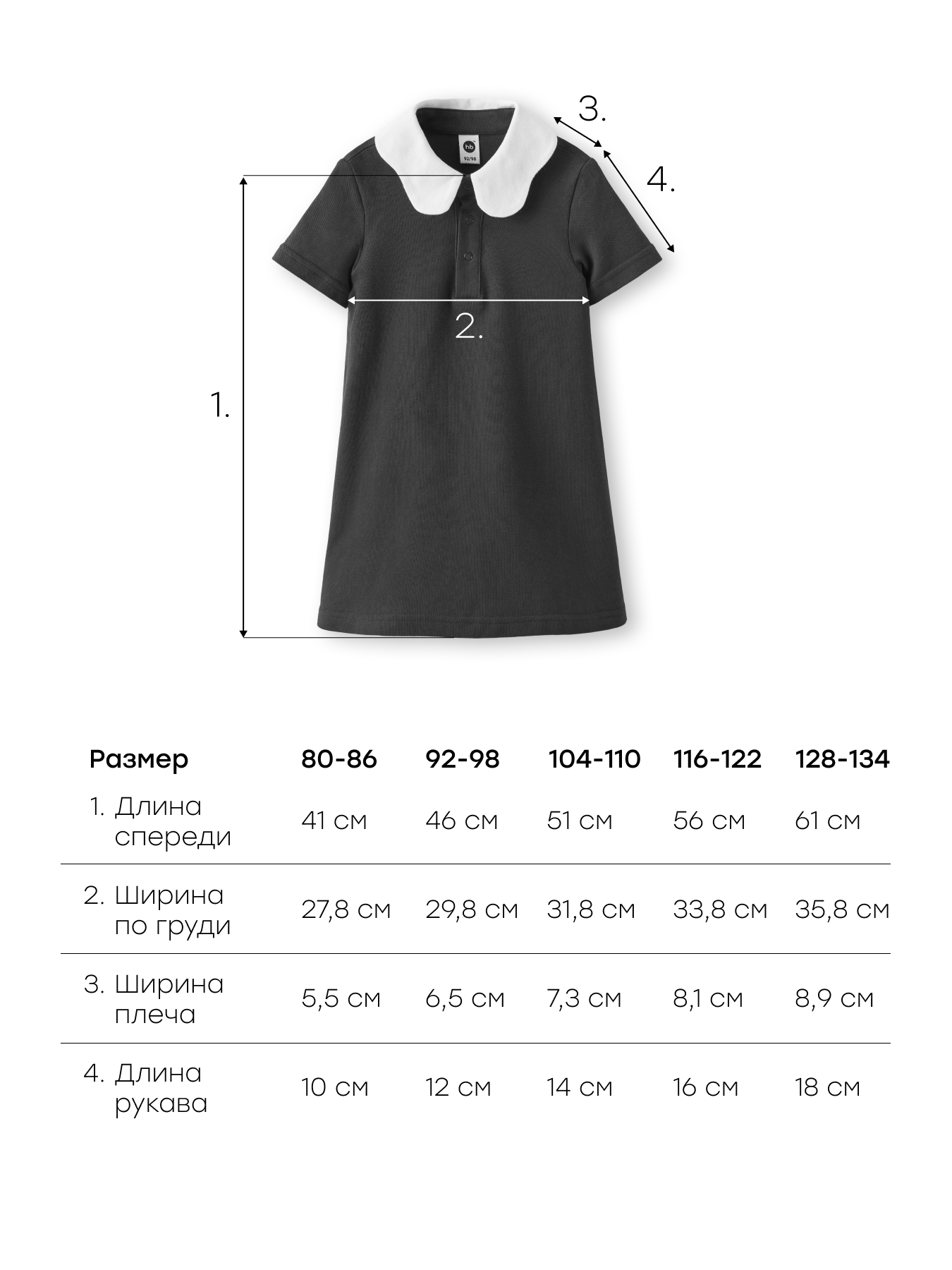 Удобное платье из 100% хлопка уместно в любое время года. Лекало разработано с учетом детской анатомии, потому изделие не сковывает движения. Благодаря застежке горловина становится широкой, что позволяет легко раздеть и одеть ребенка. Классический дизайн с белым воротничком идеально подойдет как для будней, так и для праздников.