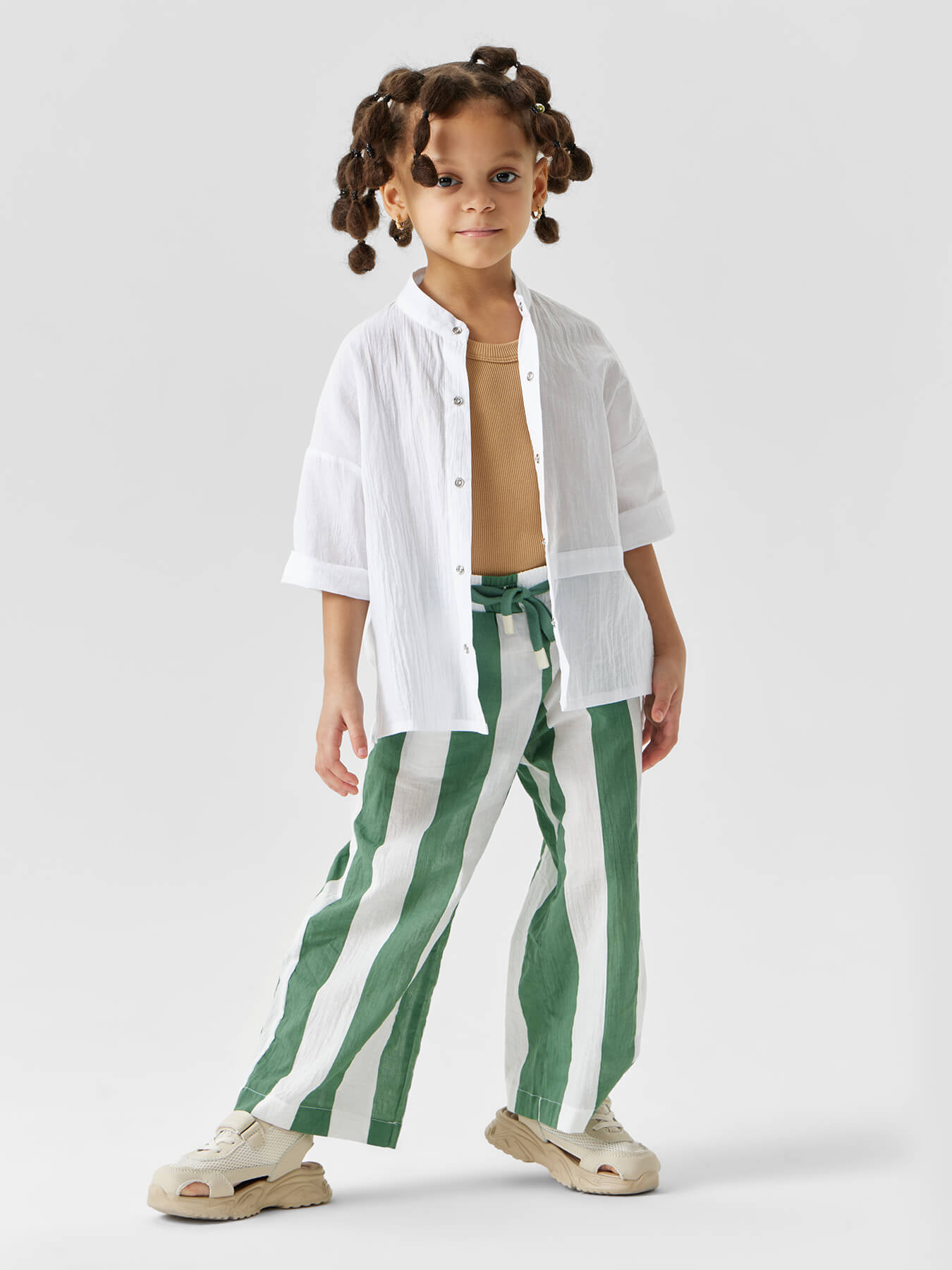 Легкие и воздушные штаны от Happy Baby станут отличным выбором на лето. Удобные штанишки подойдут для мальчика или девочки как для дня в саду, так и для домашних посиделок. Они сделаны из 100% хлопка — хлопковой ткань дышит и хорошо отводит влагу, поэтому брюки обеспечат вашего ребенка комфортом в жаркие летние дни. Пояс на завязках позволит отрегулировать посадку по фигуре малыша, а глубокие карманы помогут захватить на прогулку все необходимые мелочи. Брюки с широкими прямыми штанинами и яркими принтами идеально подходят как для детского садика, так и для особых случаев - они праздничные и одновременно удобные. Модель палаццо благодаря своему свободному крою долго будет актуальной. Выберите эти тканевые оверсайз брюки для вашего ребенка, чтобы создать стильный летний гардероб. Сочетание качественного хлопка, свободного кроя и яркого цвета делает эти штаны незаменимыми в гардеробе каждого ребенка.