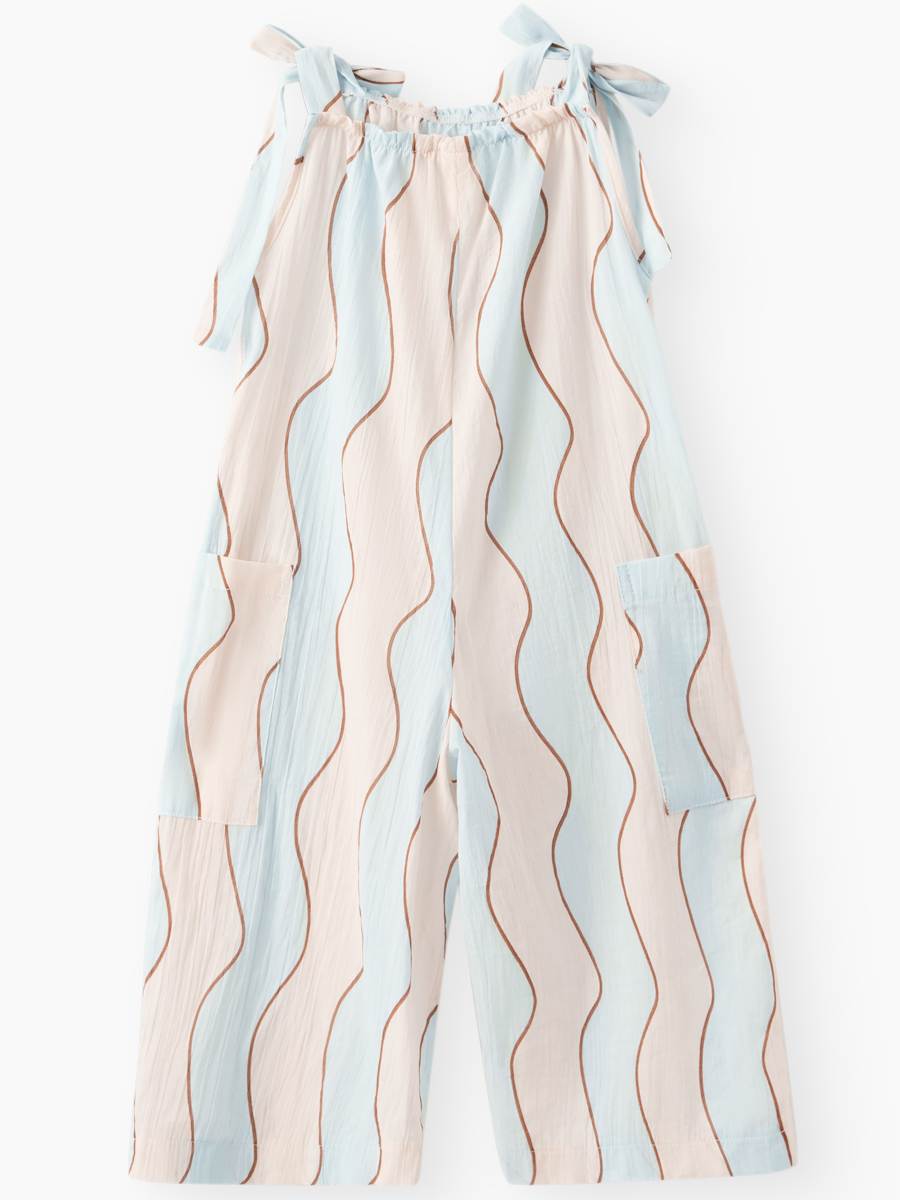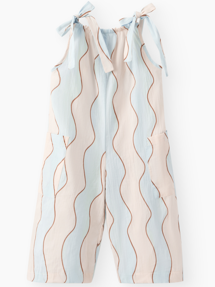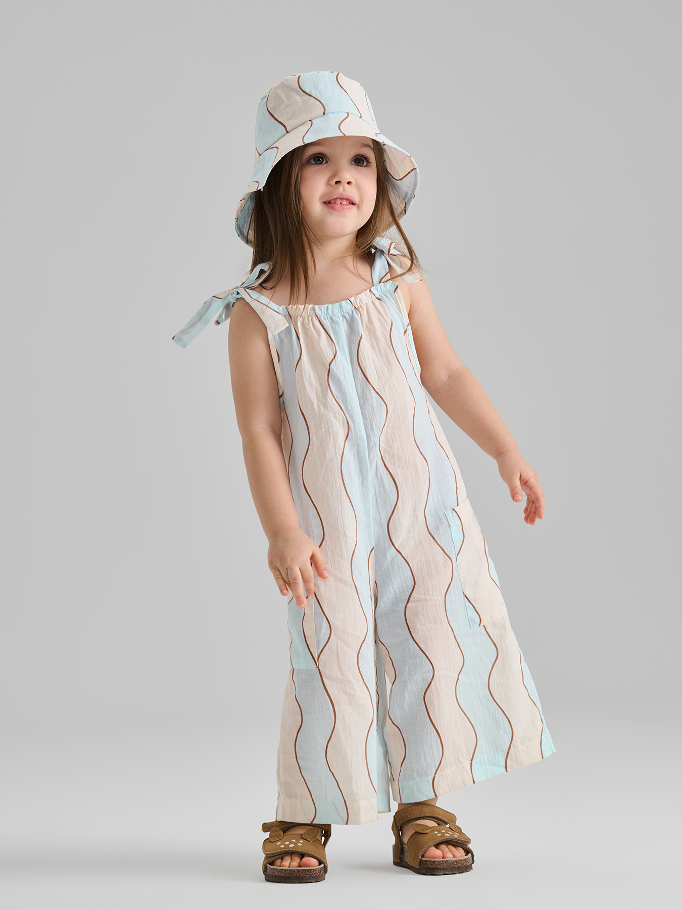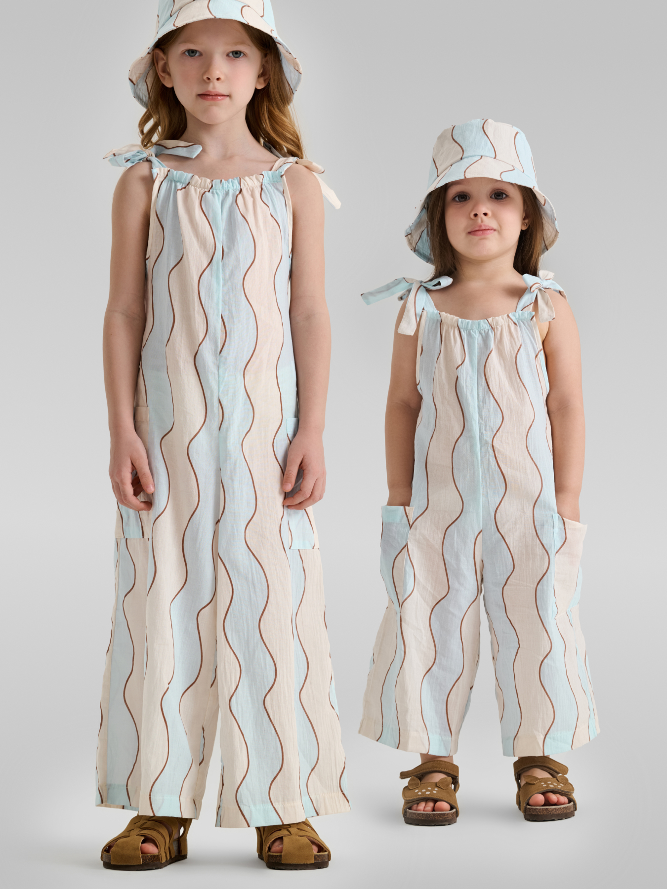 Хлопковый летний комбинезон можно носить как самостоятельный предмет гардероба, так и сочетать с любыми топами. Нежный дизайн создает романтичное настроение, при этом конструкция одежды позволяет смело бегать, лазить, сидеть на песке. Благодаря резинке и завязкам на лямках обеспечивается правильная посадка по фигуре. Натуральный материал, 100% хлопок, идеален для жаркой погоды – защищает от солнца и ветра, дышит, хорошо отводит влагу.