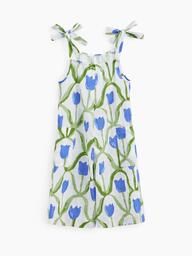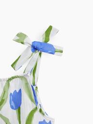Хлопковый летний комбинезон можно носить как самостоятельный предмет гардероба, так и сочетать с любыми топами. Нежный дизайн создает романтичное настроение, при этом конструкция одежды позволяет смело бегать, лазить, сидеть на песке. Благодаря резинке и завязкам на лямках обеспечивается правильная посадка по фигуре. Натуральный материал, 100% хлопок, идеален для жаркой погоды – защищает от солнца и ветра, дышит, хорошо отводит влагу.