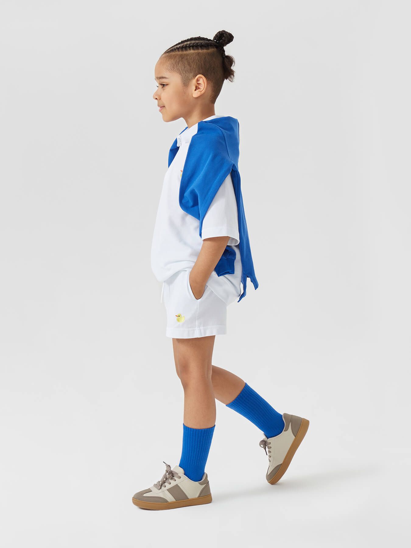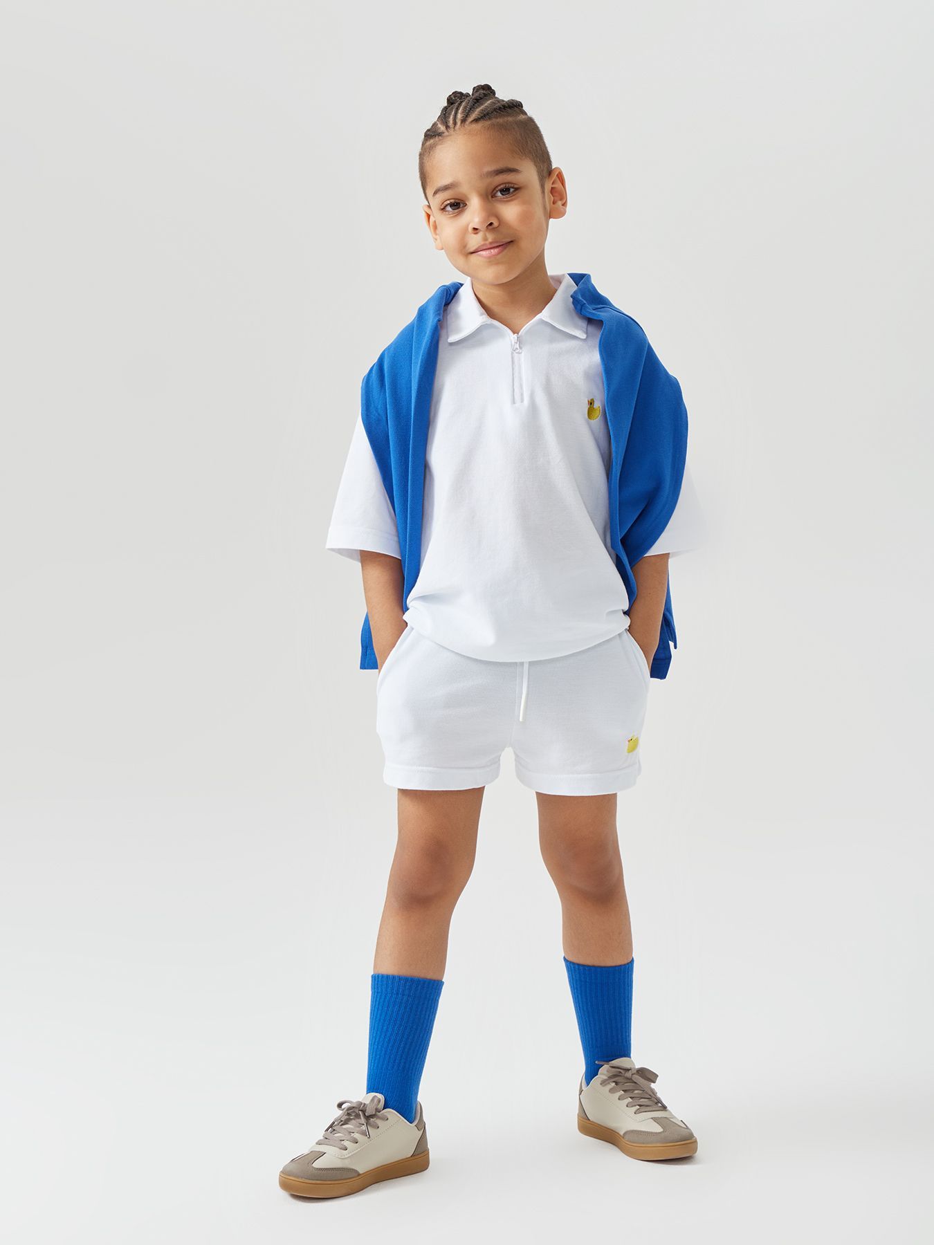 Удобные хлопковые шорты можно носить на прогулки, в детский сад, на занятия спортом. Благодаря резинке и шнурку легко регулировать посадку для любого объема талии. Хлопковый материал хорошо впитывает влагу, дышит, приятен коже. Ткань отлично тянется и не сковывает движения. Лаконичный дизайн шорт гармонично сочетается с одеждой разных стилей.
