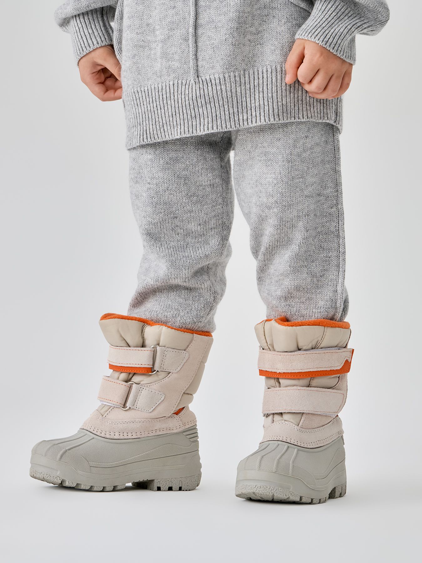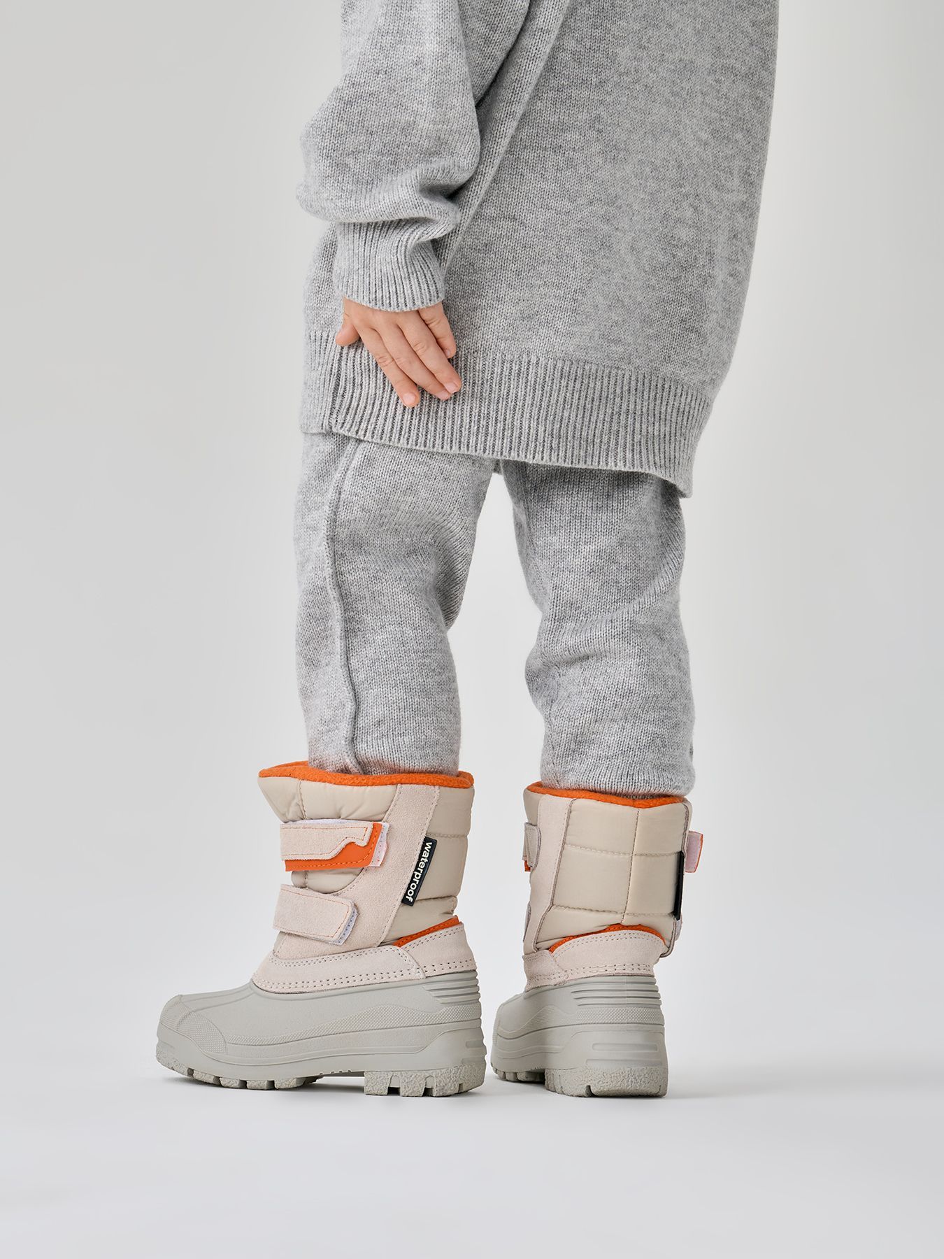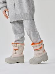 Сапоги «сноубутсы» защитят ноги от холода и влаги зимой и в демисезон. Нижняя часть сделана из термопластичной резины — легкого и морозостойкого материала. Подошва не скользит ни на асфальте, ни на мокром снегу. Внутри — шерстяной мех, благодаря которому нога не потеет и всегда в тепле. Верх ботинок сделан из влагоотталкивающего материала со вставками из натуральной замши, которые придают обуви стильный внешний вид. Застегиваются на липучку, потому малыш сможет легко обуваться сам.