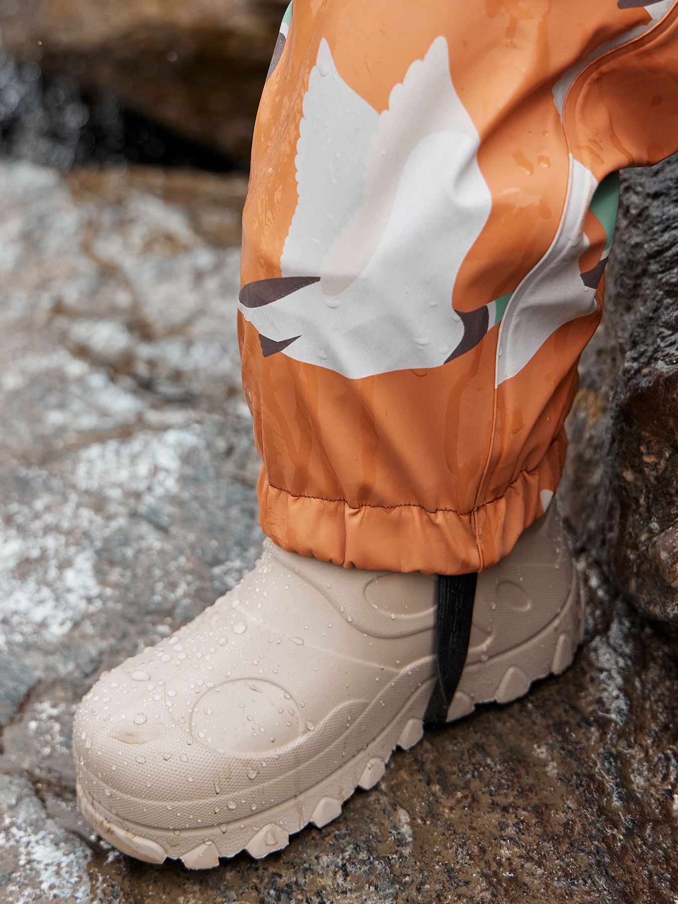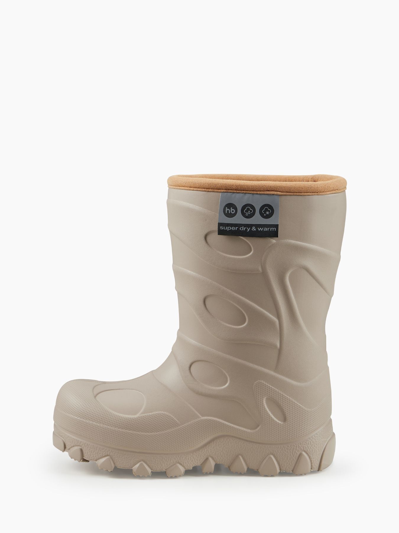 Резиновые сапоги с утеплителем позволят гулять по лужам и слякоти, сохраняя ноги сухими и тёплыми. Выполнены из лёгкого и прочного материала, а внутри шерстяная подкладка, поэтому ножки не вспотеют. Толстая рифлёная подошва создает дополнительный слой между холодной поверхностью земли и стопой. Подошва не скользит. Стильный дизайн с рельефами на поверхности и практичные цвета сапог позволяют легко вписать их в гардеробы мальчиков и девочек. Идеальная обувь для любой непогоды.