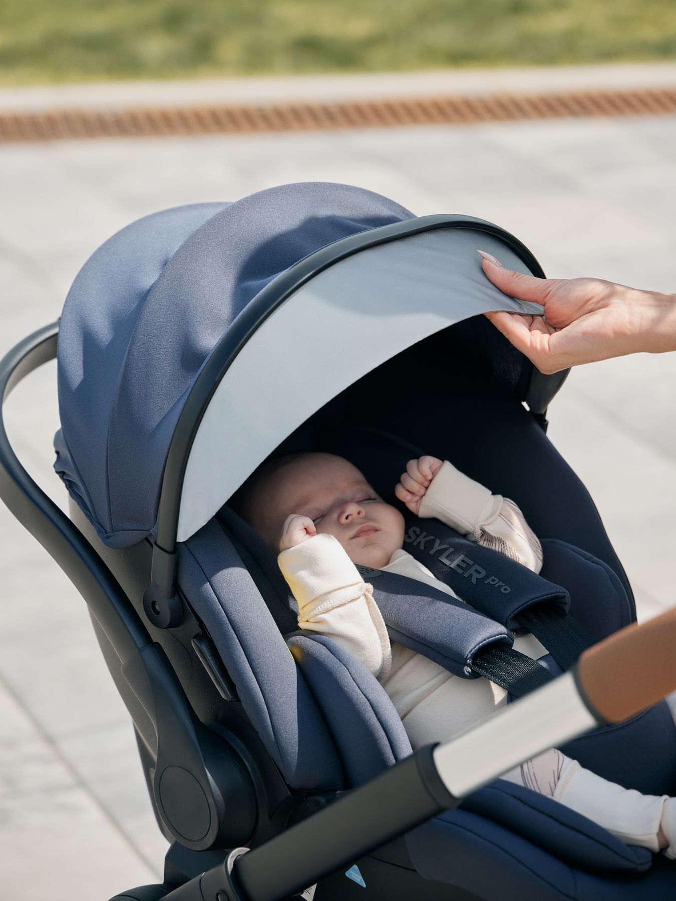 Изысканное автокресло-переноска SKYLER PRO – незаменимый помощник для мамы в первый год жизни ребёнка. Благодаря возможности крепления автолюльки на шасси колясок MOMMER PRO, MOMMER и LINDA мамы могут сохранять активный образ жизни и чаще выезжать с малышом. Элегантные линии продолжаются в дизайне мягкого анатомического вкладыша, который обеспечивает дополнительный комфорт во время поездки. Складной капюшон защитит ребёнка от солнца, а удобная ручка позволяет без лишних усилий переносить его, как в обычной люльке. Создавая SKYLER PRO, мы уделили повышенное внимание безопасности, поэтому у автолюльки надежная боковая защита и трёхточечные ремни с мягкими накладками для большего комфорта ребёнка. Благодаря полукруглому основанию удобно укачивать малыша, в качестве же ограничителя качания можно использовать ручку переноски, опустив ее вниз до упора. Автокресло крепится в автомобиле с помощью штатных ремней безопасности и устанавливается против хода движения автомобиля.