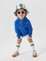 Поло с длинным рукавом – идеальный лонгслив. Благодаря воротнику под горло шея ребенка защищена от холода, манжеты на рукавах уберегут от ветра. Модель легко надевать благодаря застежкам на горловине. Объемный крой не сковывает движений. Стильное поло выглядит завершенным предметом одежды и не нуждается в дополнительных аксессуарах. Изделие подходит девочкам и мальчикам, его легко сочетать в комплектах разных стилей.