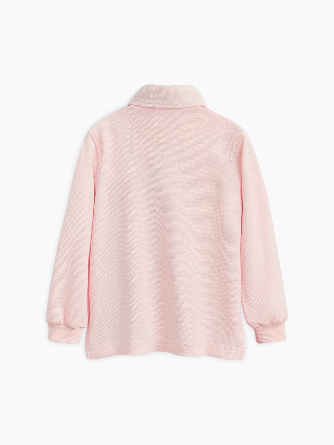 Поло с длинным рукавом – идеальный лонгслив. Благодаря воротнику под горло шея ребенка защищена от холода, манжеты на рукавах уберегут от ветра. Модель легко надевать благодаря застежкам на горловине. Объемный крой не сковывает движений. Стильное поло выглядит завершенным предметом одежды и не нуждается в дополнительных аксессуарах. Изделие подходит девочкам и мальчикам, его легко сочетать в комплектах разных стилей.