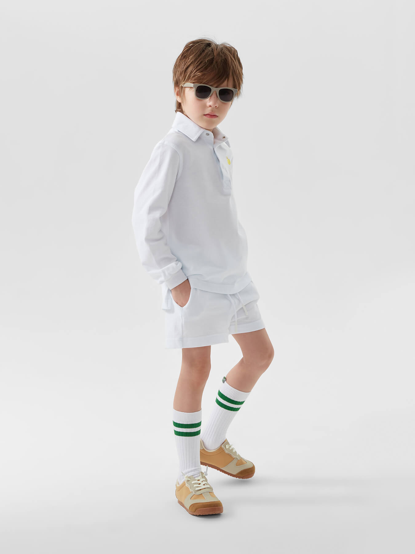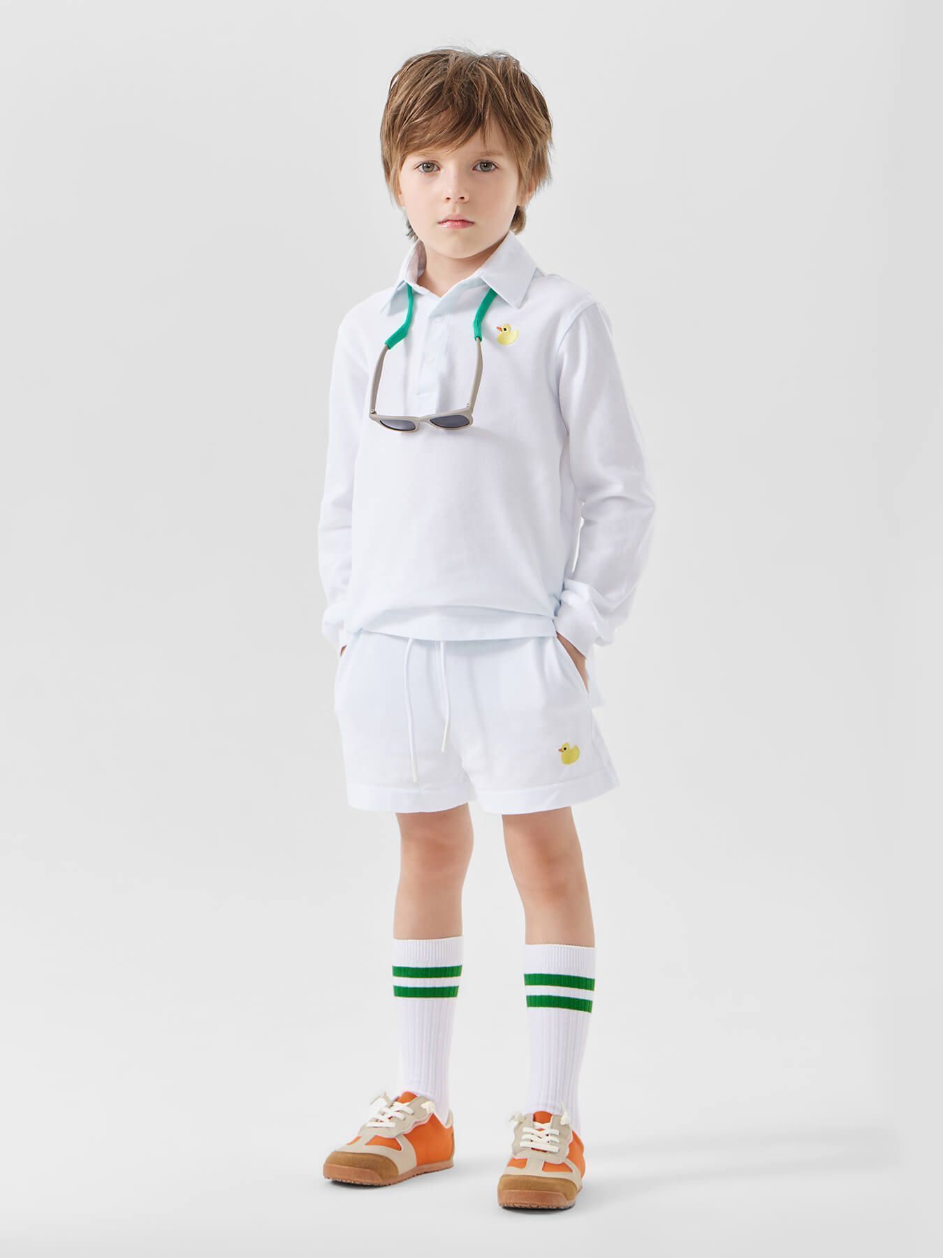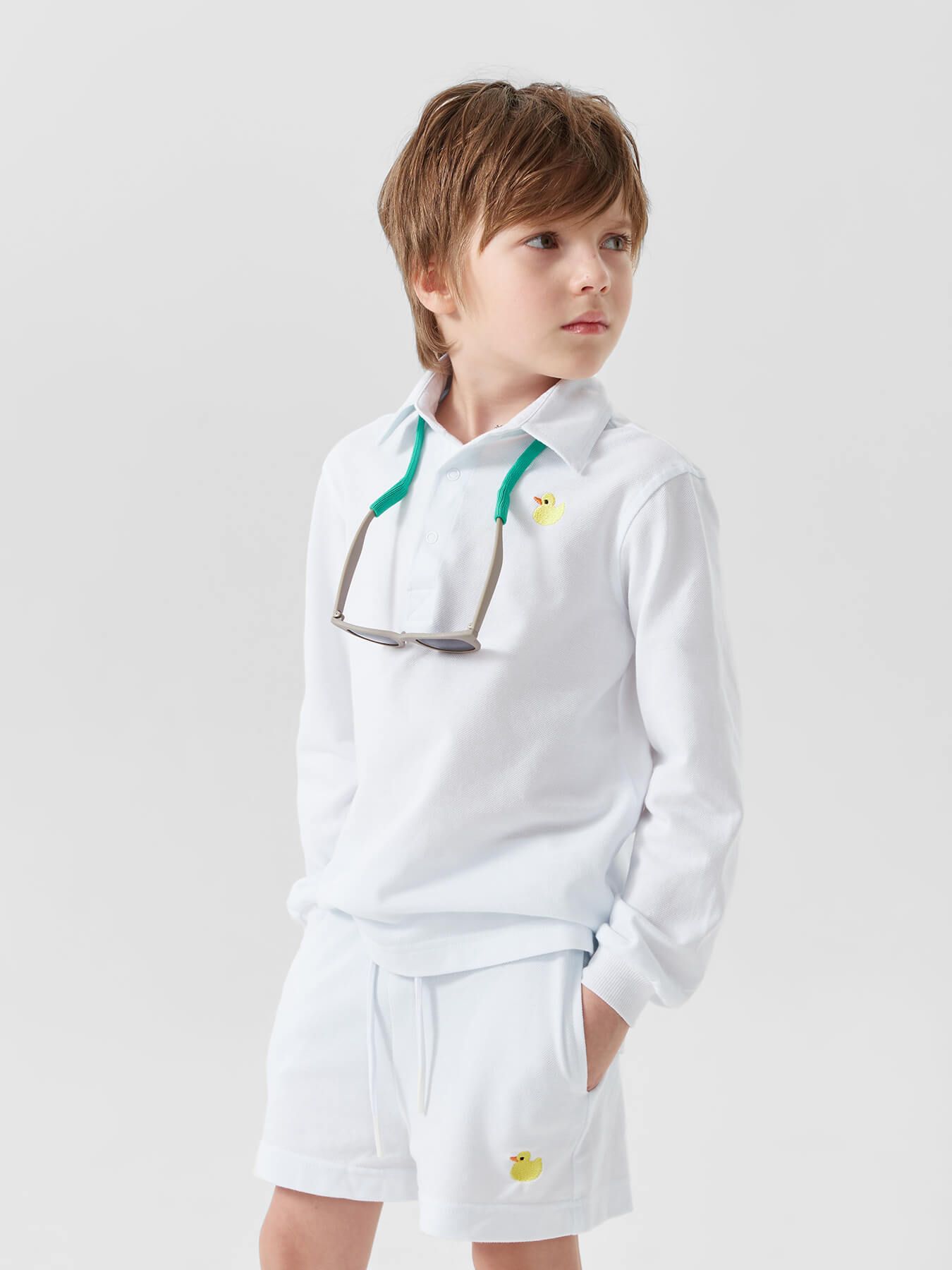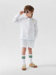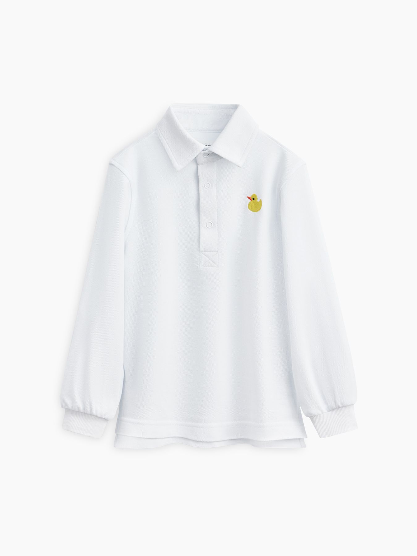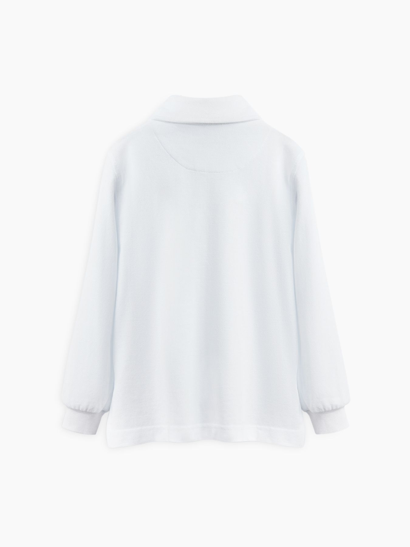 Поло с длинным рукавом – идеальный лонгслив. Благодаря воротнику под горло шея ребенка защищена от холода, манжеты на рукавах уберегут от ветра. Модель легко надевать благодаря застежкам на горловине. Объемный крой не сковывает движений. Стильное поло выглядит завершенным предметом одежды и не нуждается в дополнительных аксессуарах. Изделие подходит девочкам и мальчикам, его легко сочетать в комплектах разных стилей.