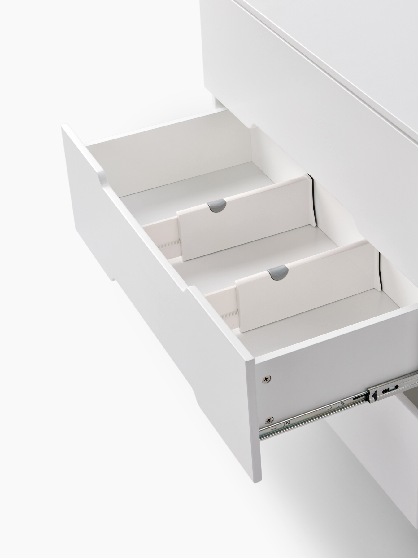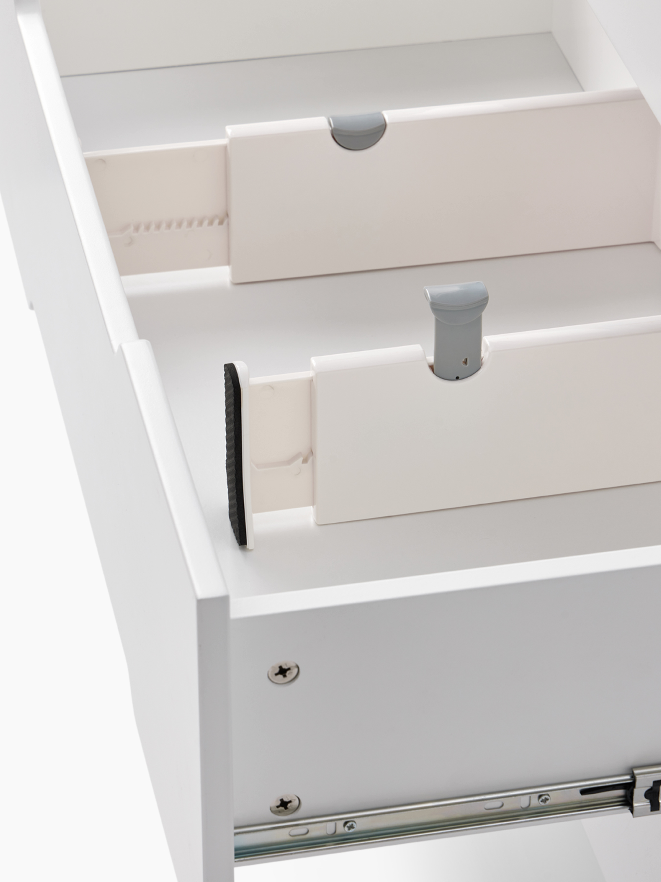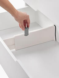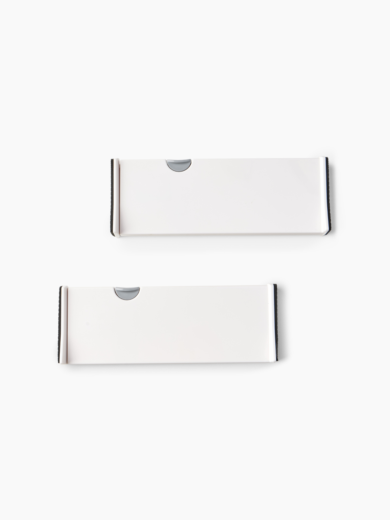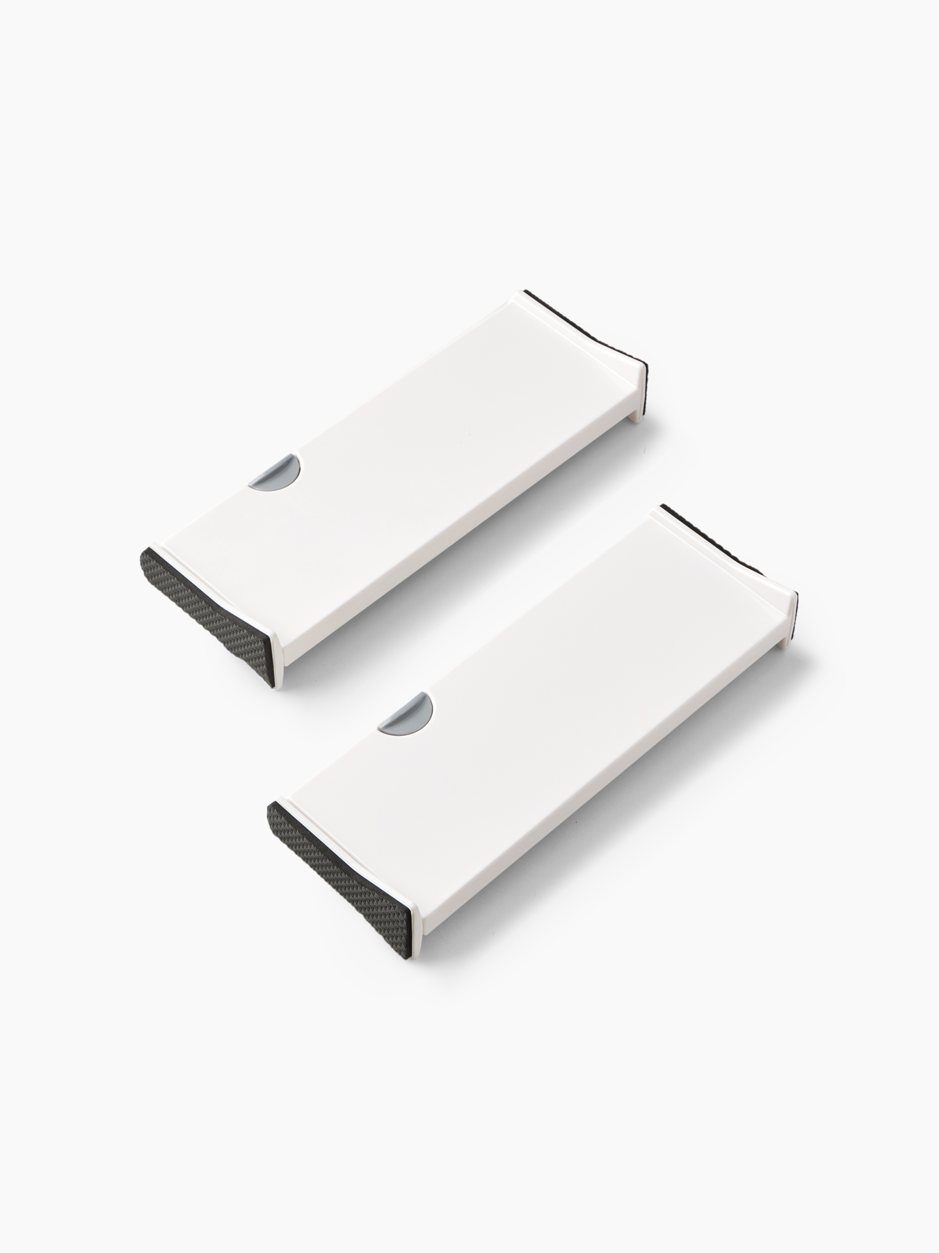 Комплект раздвижных разделителей для ящиков поможет организовать место для хранения как в детской, таки гардеробе. Для установки достаточно изменить длину по размеру ящика и зажать фиксатор. Боковые упоры с противоскользящей прокладкой прочно удержат разделители без повреждения мебели.