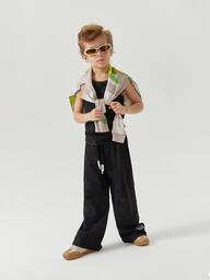 Детские брюки – удобный и стильный предмет гардероба. Посадка регулируется шнурком. Актуальный прямой крой хорошо сочетается со множеством вариантов верха и обуви. Брюки не сковывают движения, подходят для детского сада, спорта и ежедневных прогулок.