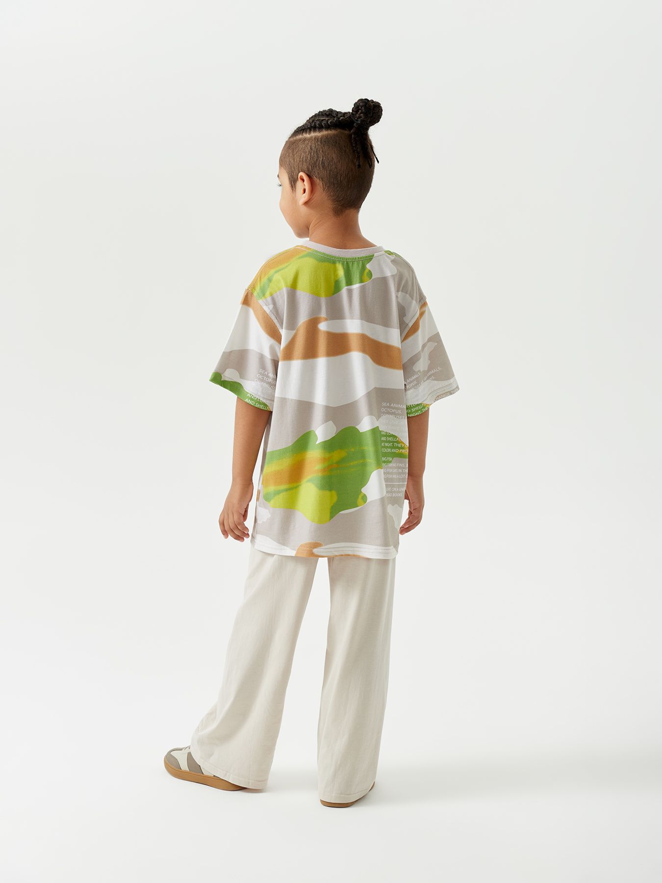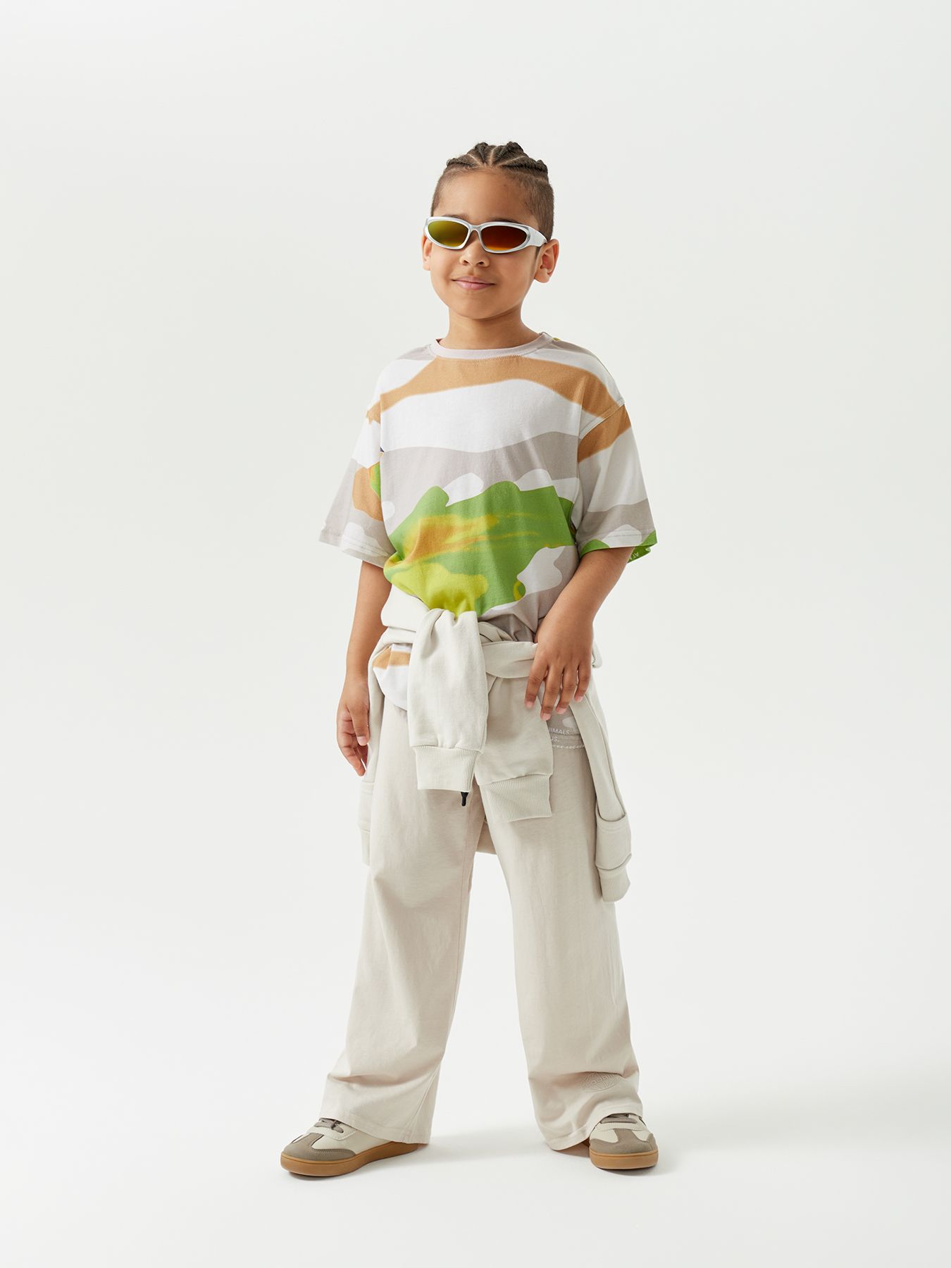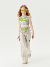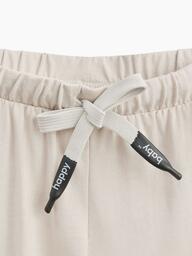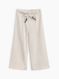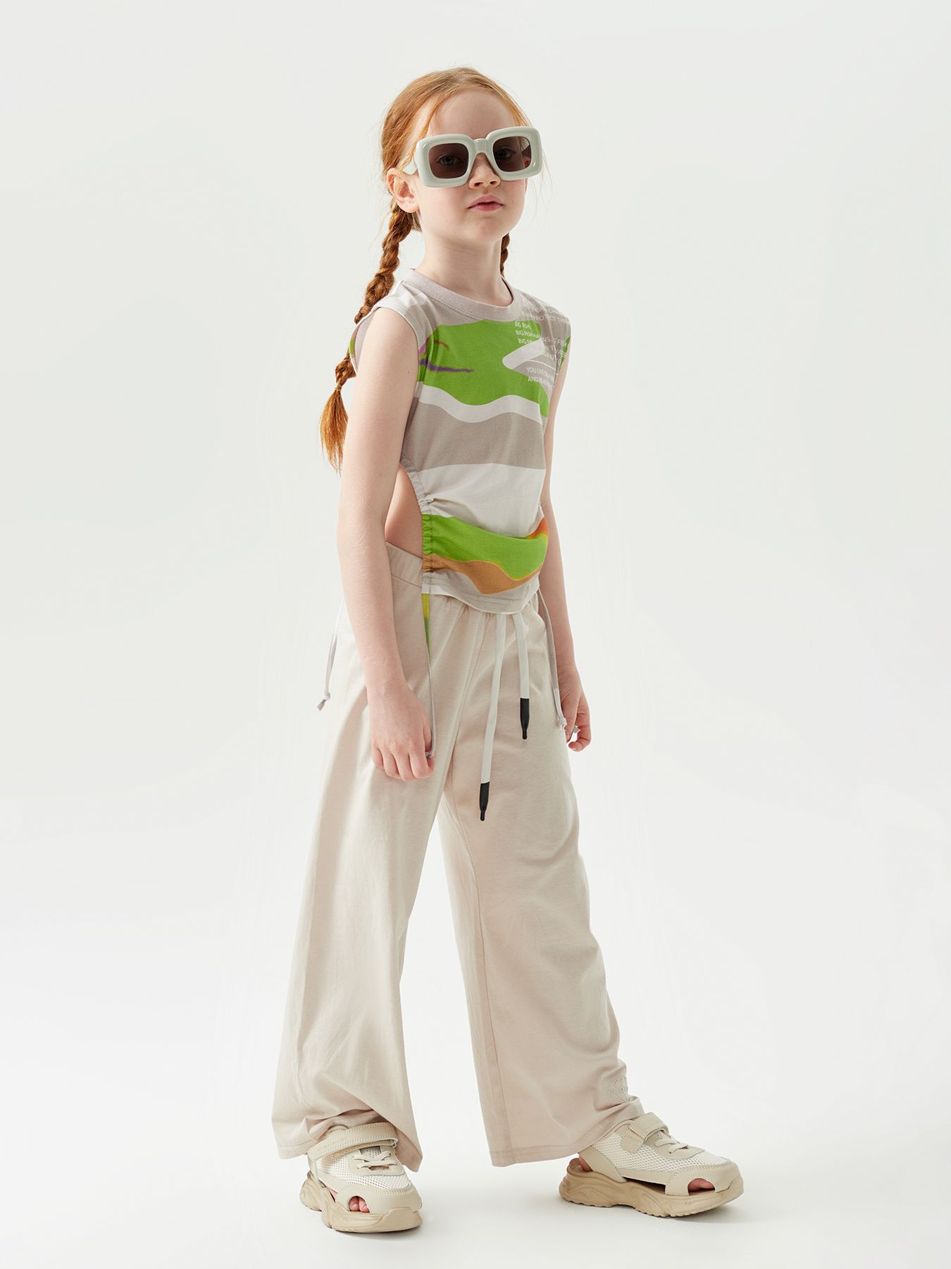 Детские брюки – удобный и стильный предмет гардероба. Посадка регулируется шнурком. Актуальный прямой крой хорошо сочетается со множеством вариантов верха и обуви. Брюки не сковывают движения, подходят для детского сада, спорта и ежедневных прогулок.