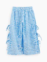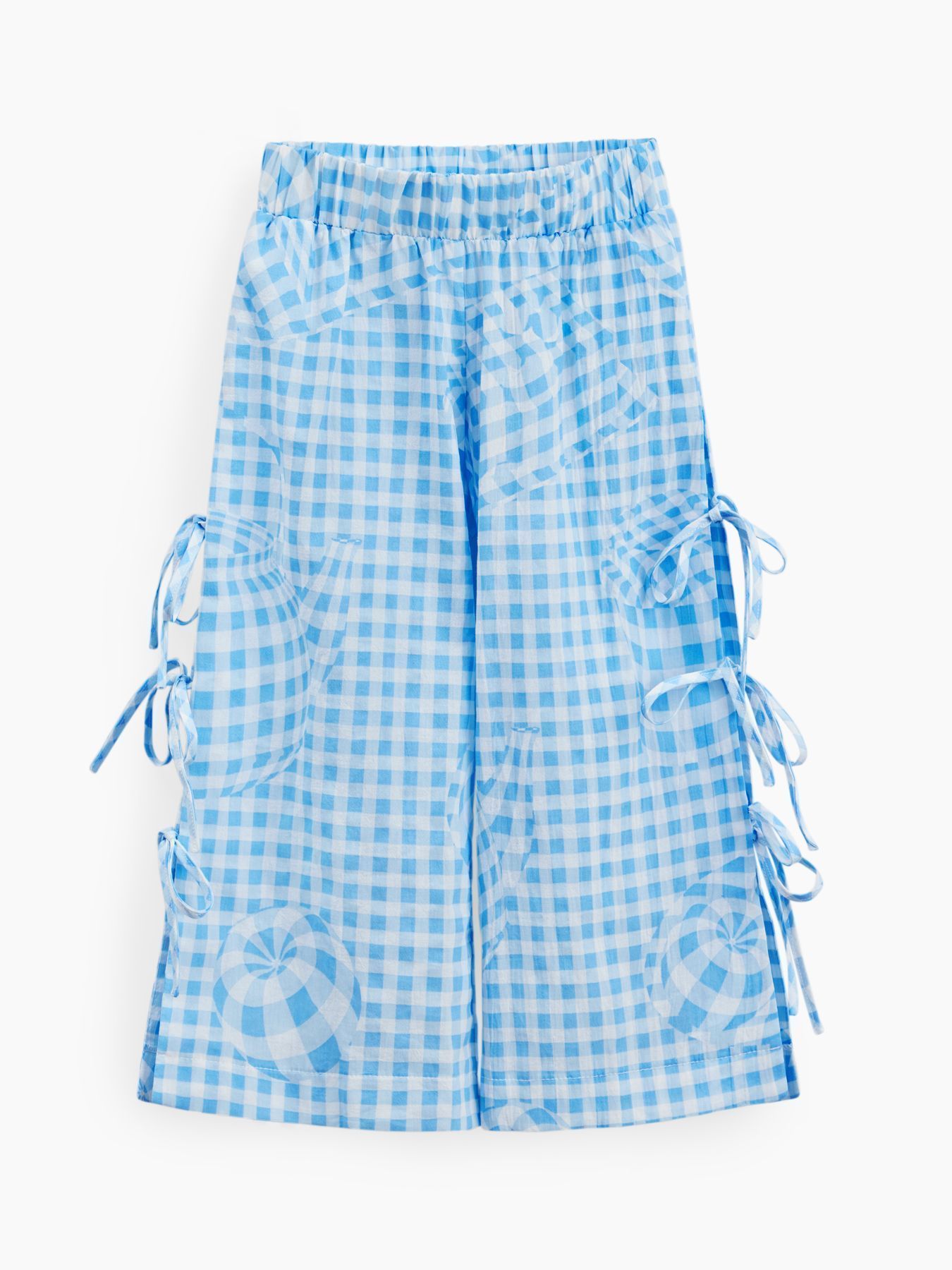 Стильные брюки из 100% хлопка станут необычным акцентом летнего гардероба. Благодаря прямому крою обеспечивается комфортная посадка на любом типе фигуры. Натуральный материал, 100% хлопок, идеален для жаркой погоды – защищает от солнца и ветра, дышит, хорошо отводит влагу. Завязки по бокам позволят дать волю воображению и придумать необычные способы стилизации брюк в пляжных и повседневных комплектах.