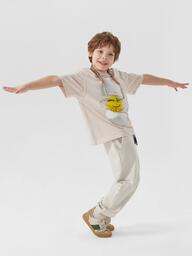Детские джоггеры из 100% хлопка с эластичным поясом на резинке, карманами и шнурком на талии – удобный и стильный выбор для вашего ребенка. В них удобно гулять, заниматься спортом, проводить время в детском саду. Благодаря манжетам ножки малыша защищены от ветра. Актуальные брюки позволят создать множество стильных комплектов.