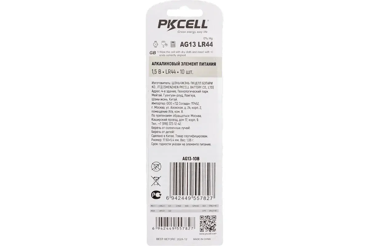- Типоразмер G13 (AG13, LR44, LR1154, SR44SW, 303, 357)