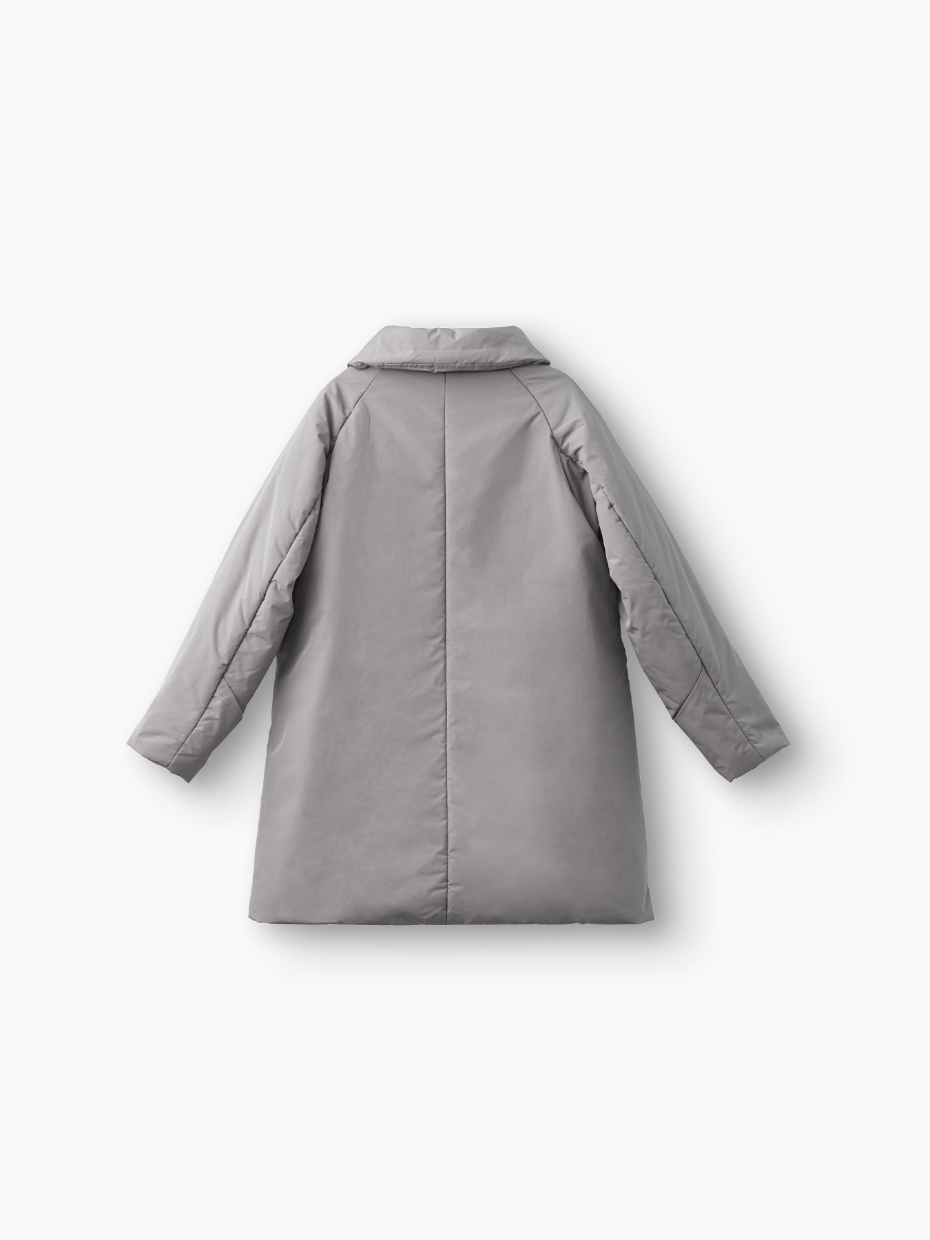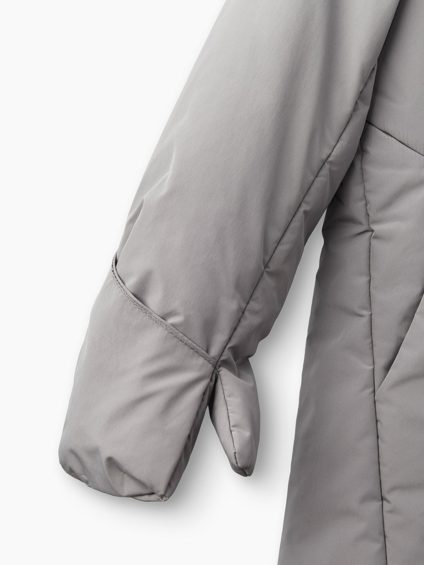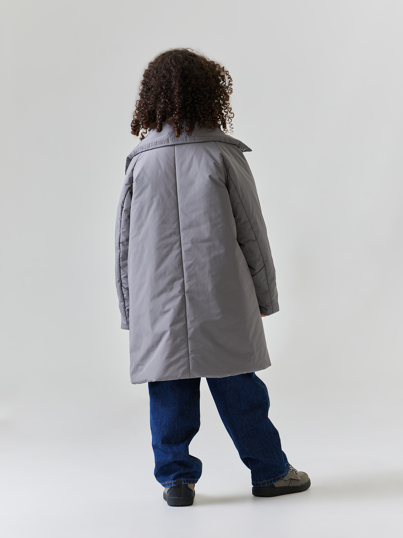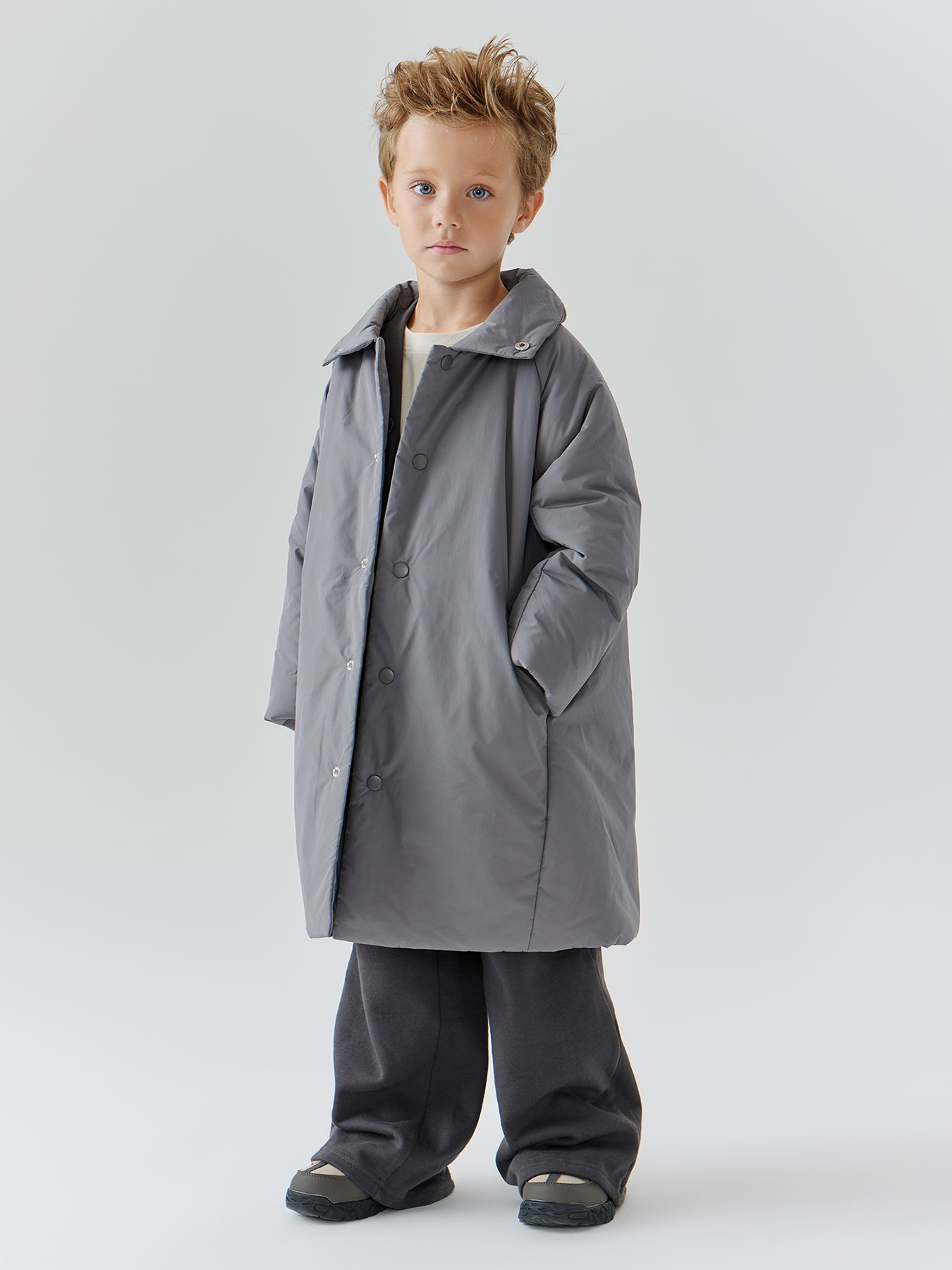 Утепленное пальто — идеально для создания утонченных образов. Практичность изделия достигается благодаря материалам — сверху влагоотталкивающая ткань, внутри — легкий утеплитель полиэфир. Благодаря особому крою рукавов с вшитыми варежками, ребенок больше не забудет и не потеряет свои рукавицы. Высокий отложной воротник защищает шею от холода и ветра. Пальто удобно застегивается на молнию.
