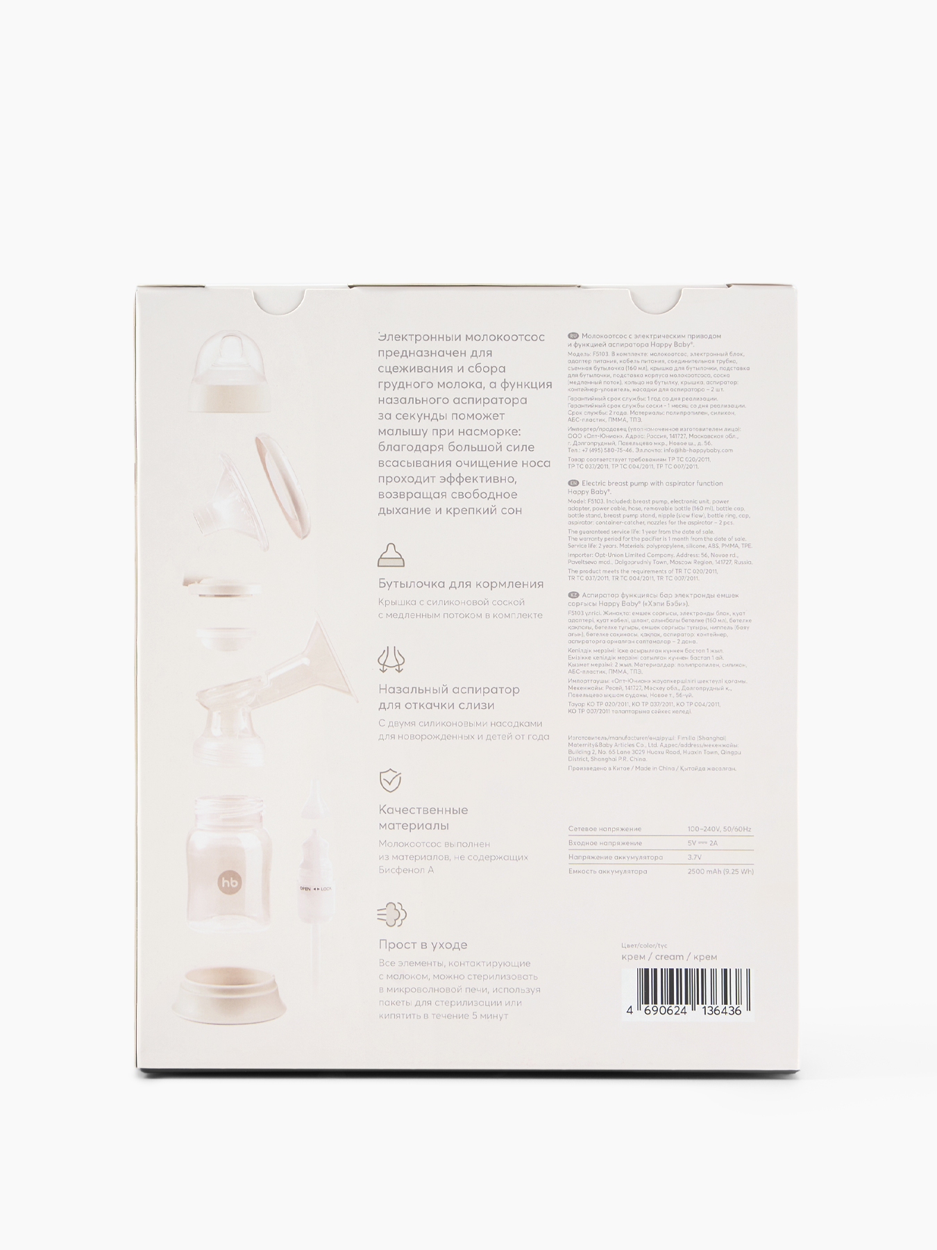 Чтобы сцеживание было комфортным и эффективным, предусмотрена возможность быстро выбрать подходящий режим. Процесс сцеживания происходит естественно, что позволяет сохранить ритм грудного вскармливания, а также исключить неприятные ощущения. Силиконовая массажная воронка плотно прилегает к груди даже в положении полулежа. В комплект входят бутылочка объёмом 160 мл., крышка — можно сразу покормить ребёнка или сохранить молоко в холодильнике. Назальный аспиратор с мягкой насадкой за секунды поможет малышу при насморке. Благодаря большой силе всасывания очищение носа проходит эффективно, возвращая малышу свободное дыхание и крепкий сон. Модель отличается простой конструкцией, ее несложно собирать и разбирать для поддержания чистоты. Детали можно стерилизовать.