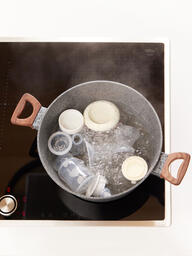 • Перед первым использованием вымойте и продезинфицируйте все детали молокоотсоса, контактирующие с молоком. Перед обработкой деталей тщательно вымойте руки.