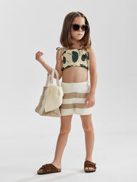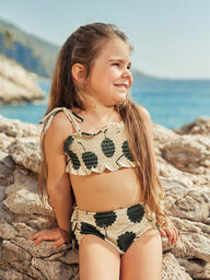 Конструкция и дизайн стильного двухпредметного купальника разработаны специально для малышей. Топ на завязках плотно сидит, не перетягивая кожу. Костюм изготовлен из быстросохнущего материала с UPF50+, который защищает ребёнка от вредных лучей и дарит комфорт. В купальнике удобно играть в воде и на берегу.