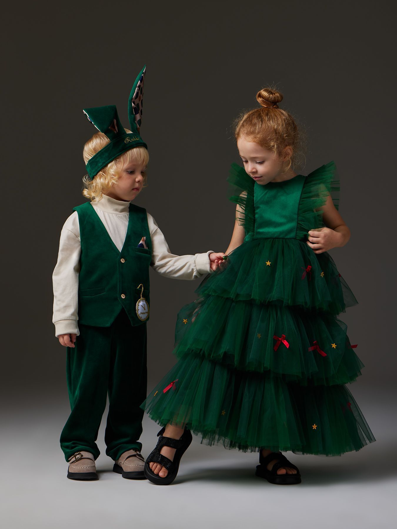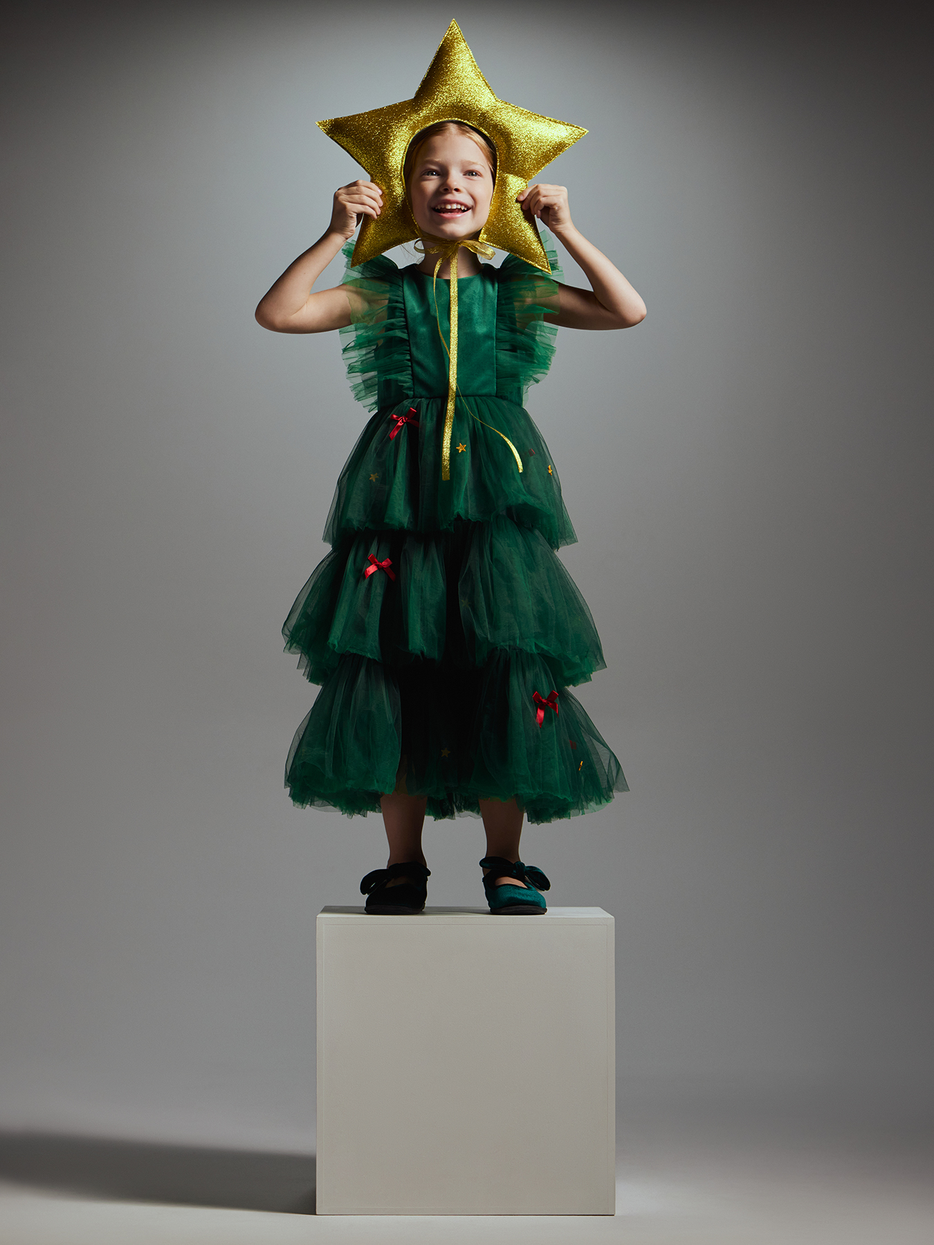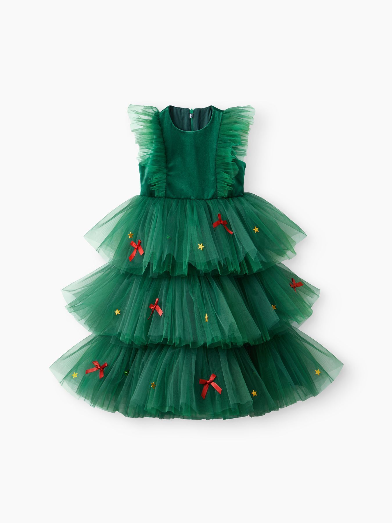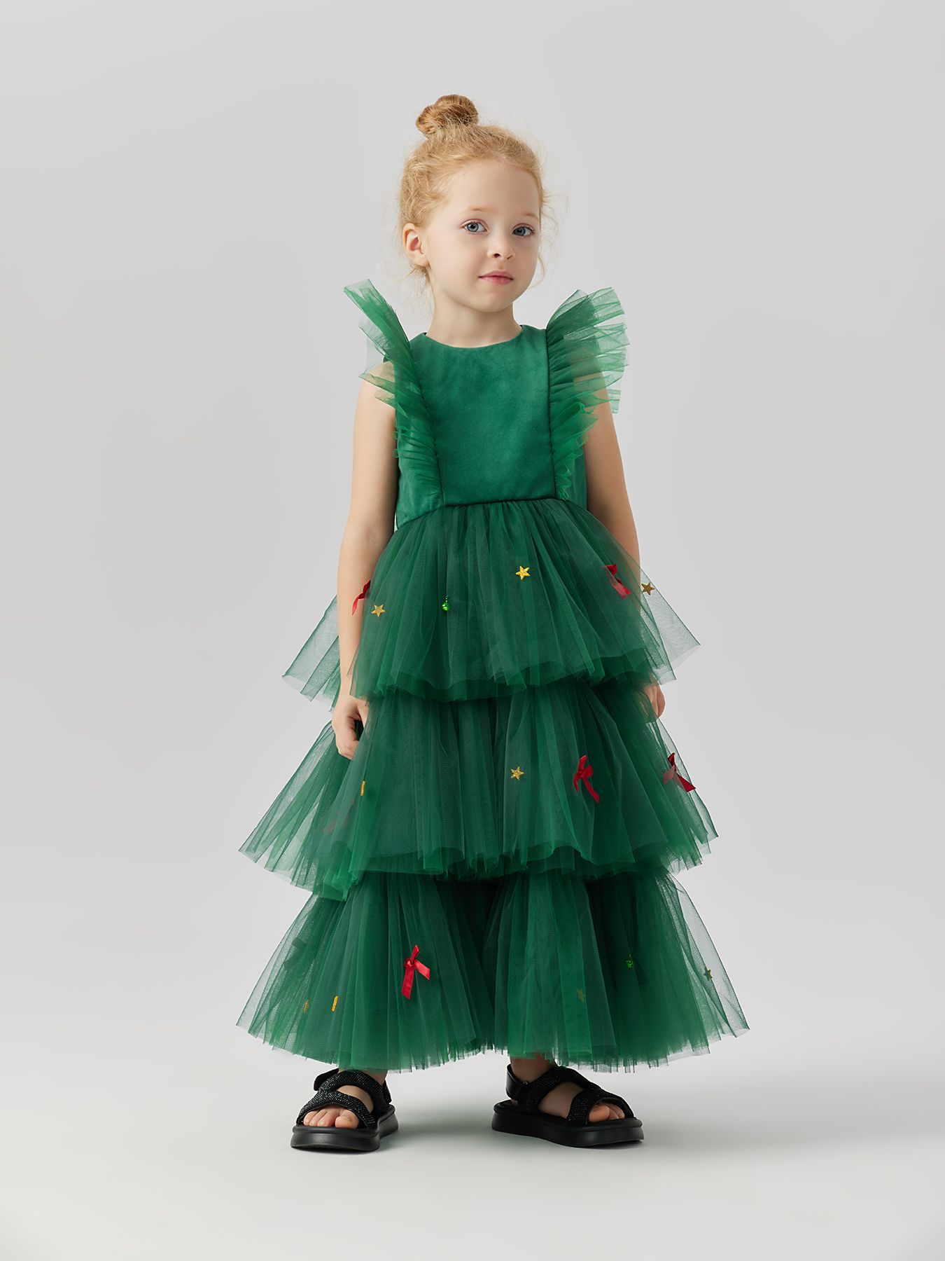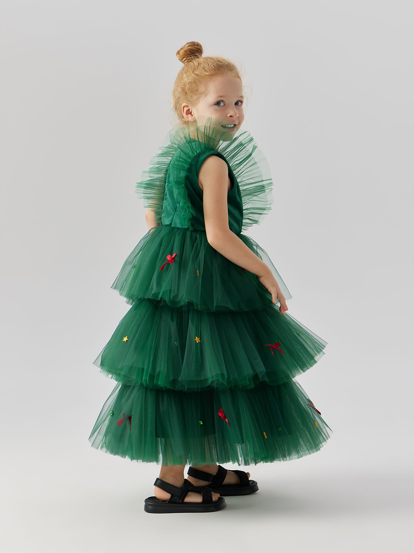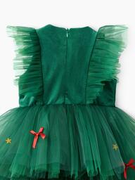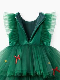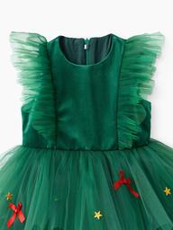 Позвольте своей маленькой моднице почувствовать себя настоящей принцессой в этом очаровательном зелёном платье! Украшенное яркими звёздами и аккуратными бантиками, оно идеально подойдёт для особых случаев и праздников. Многоярусный дизайн создаёт волшебную атмосферу и делает образ воздушным и игривым.