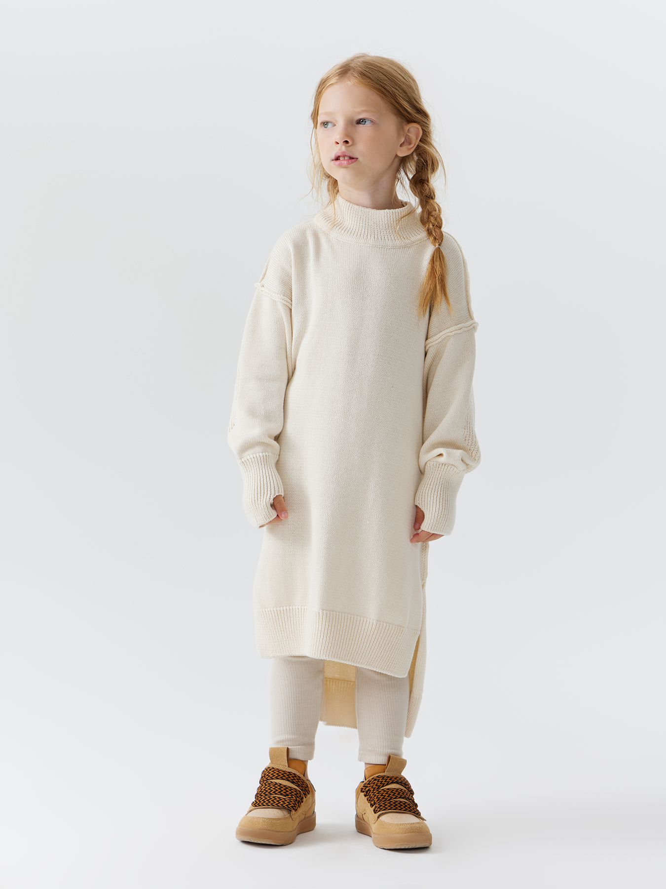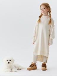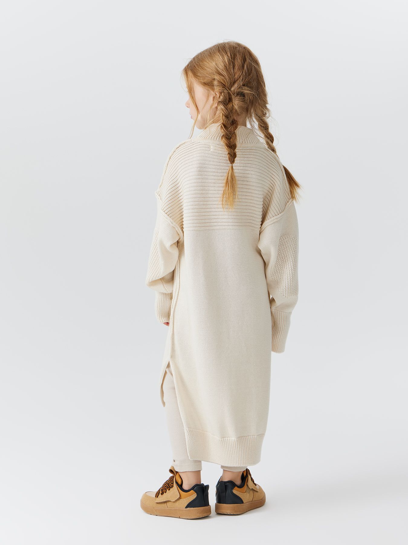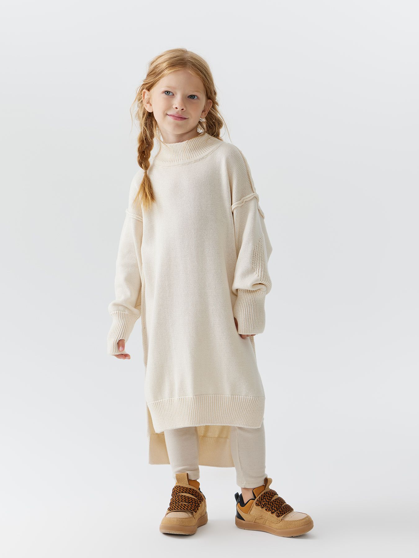 Удлиненный джемпер из смесового материала с 50% хлопка в составе — это универсальный предмет гардероба на все времена года. Гладкая вязка и современный дизайн придают изделию стильный вид, который легко вписывается в гардероб девочек. Укрепленная горловина обеспечивает долговечность джемпера, предотвращая вытягивание со временем. Разрезы по бокам добавляют свободу движений, делая джемпер не только модным, но и комфортным в носке.