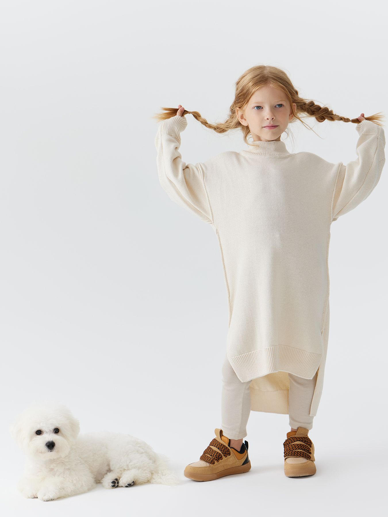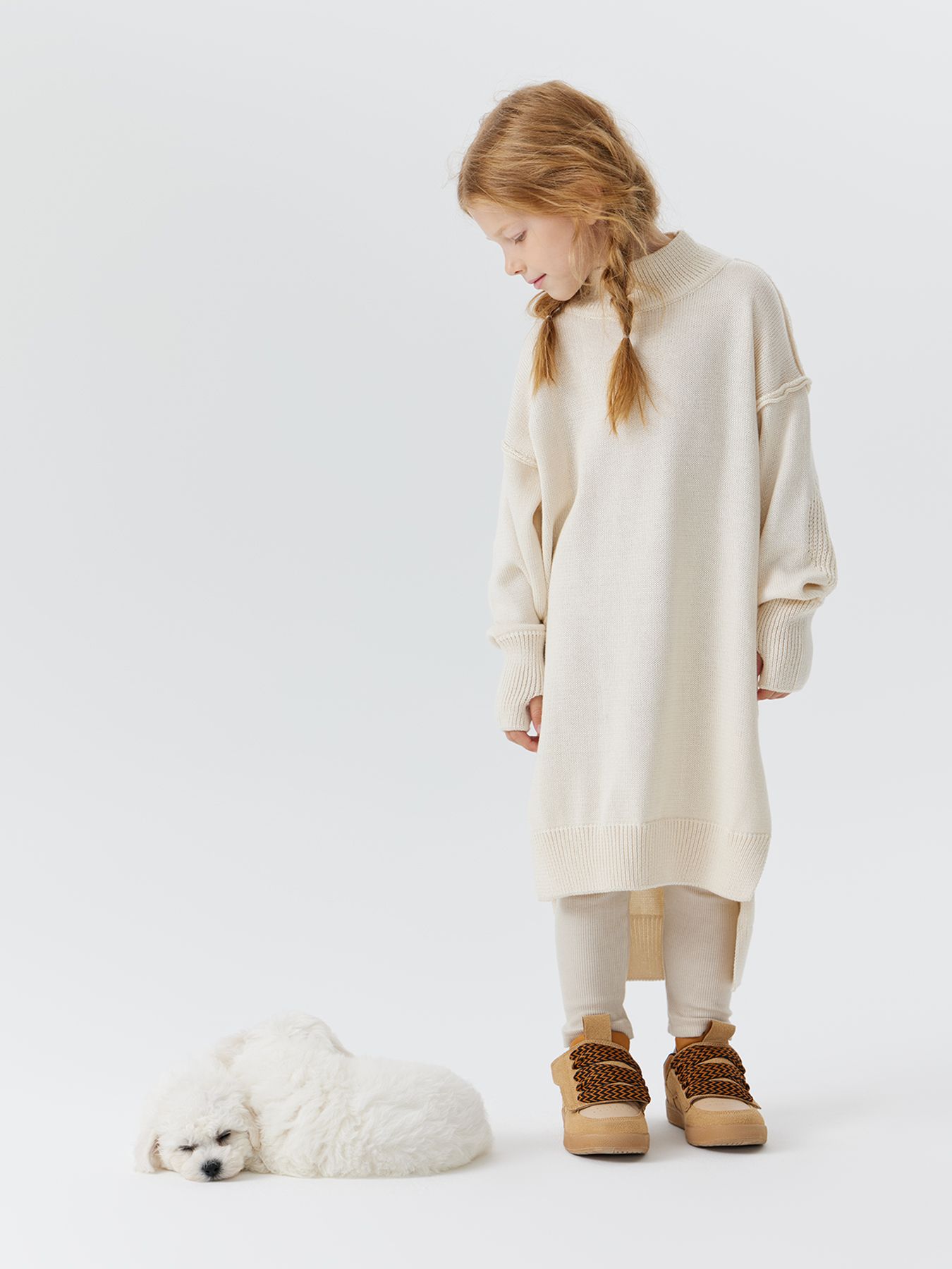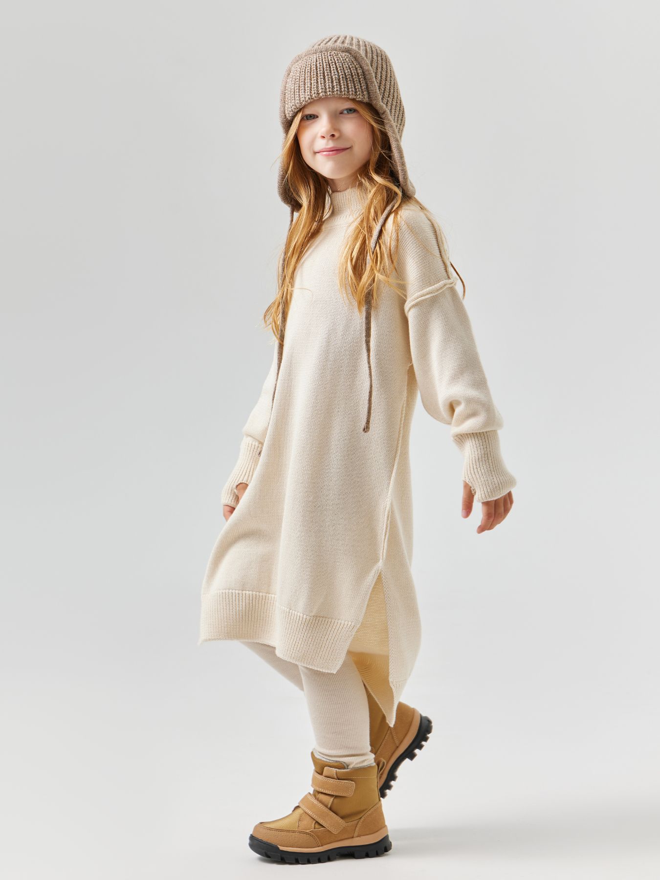 Удлиненный джемпер из смесового материала с 50% хлопка в составе — это универсальный предмет гардероба на все времена года. Гладкая вязка и современный дизайн придают изделию стильный вид, который легко вписывается в гардероб девочек. Укрепленная горловина обеспечивает долговечность джемпера, предотвращая вытягивание со временем. Разрезы по бокам добавляют свободу движений, делая джемпер не только модным, но и комфортным в носке.