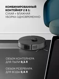 ОсобенностиПолностью автоматическая уборка; Плоский корпус для удобства уборки под мебелью; Голосовое сопровождение; Функция "найди меня"; Управление с голосовыми помощниками, электронная регулировка мощности