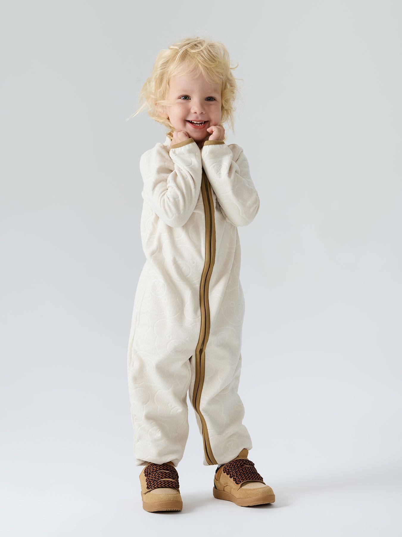 Комфортный комбинезон можно использовать как поддеву или носить как самостоятельный предмет одежды. Быстро и легко застегивается на молнию, которая уходит в ногу. Высокий ворот закрывает шею. Крой не сковывает движений. Приятный материал создает уютное настроение.