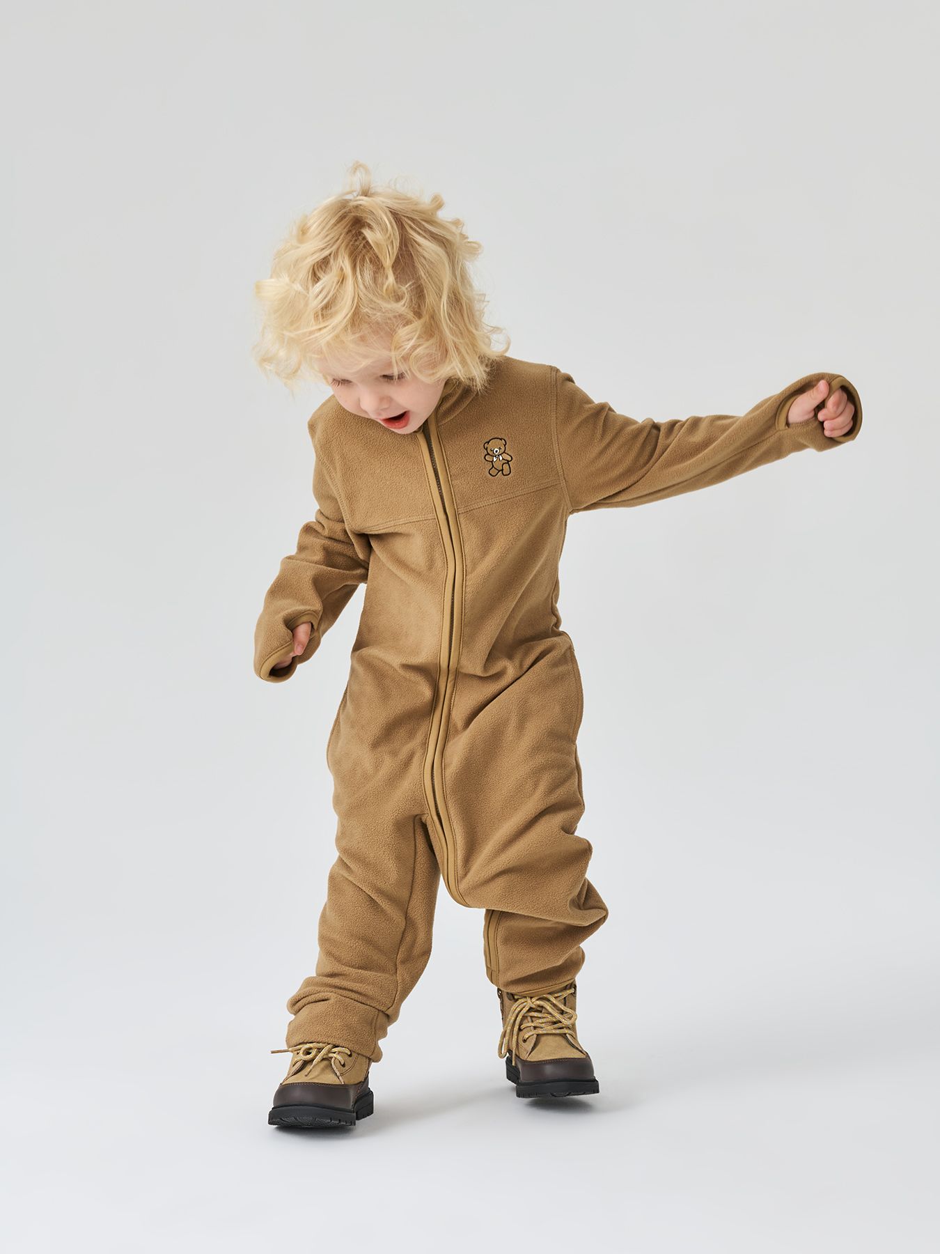 Комфортный комбинезон можно использовать как поддеву или носить как самостоятельный предмет одежды. Быстро и легко застегивается на молнию, которая уходит в ногу. Высокий ворот закрывает шею. Крой не сковывает движений. Приятный материал создает уютное настроение.