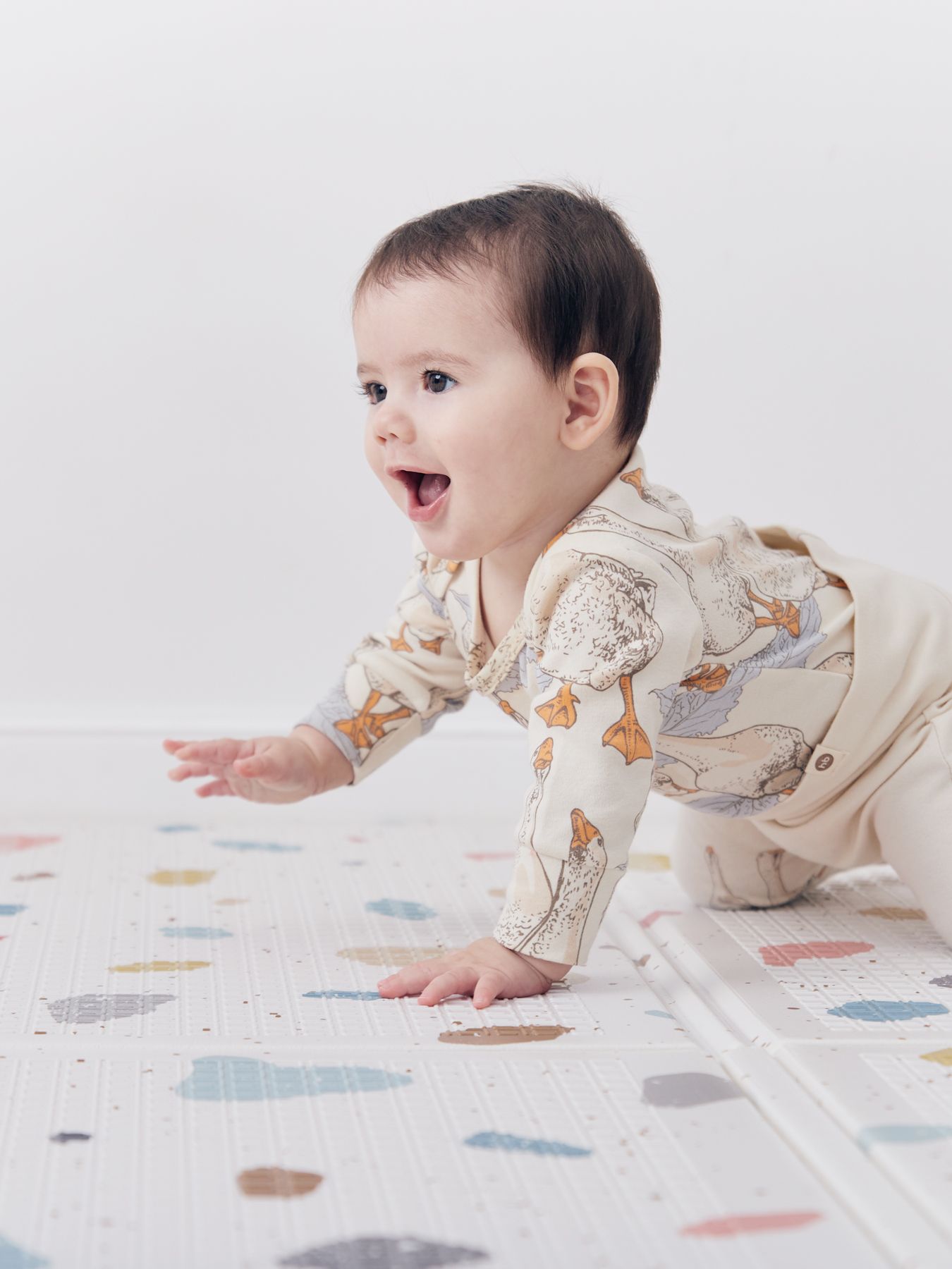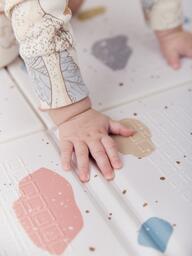 Складной коврик SOFT FLOOR подходит для малышей с первых месяцев жизни. Складывается гармошкой и экономит место в квартире. Коврик можно разложить не полностью – в зависимости от доступной вам площади. Сделан из плотного непромокаемого материала, который легко моется. Рельефная поверхность обладает массажным эффектом, развивает тактильное восприятие. Спокойные цвета не перегружают нервную систему малыша.