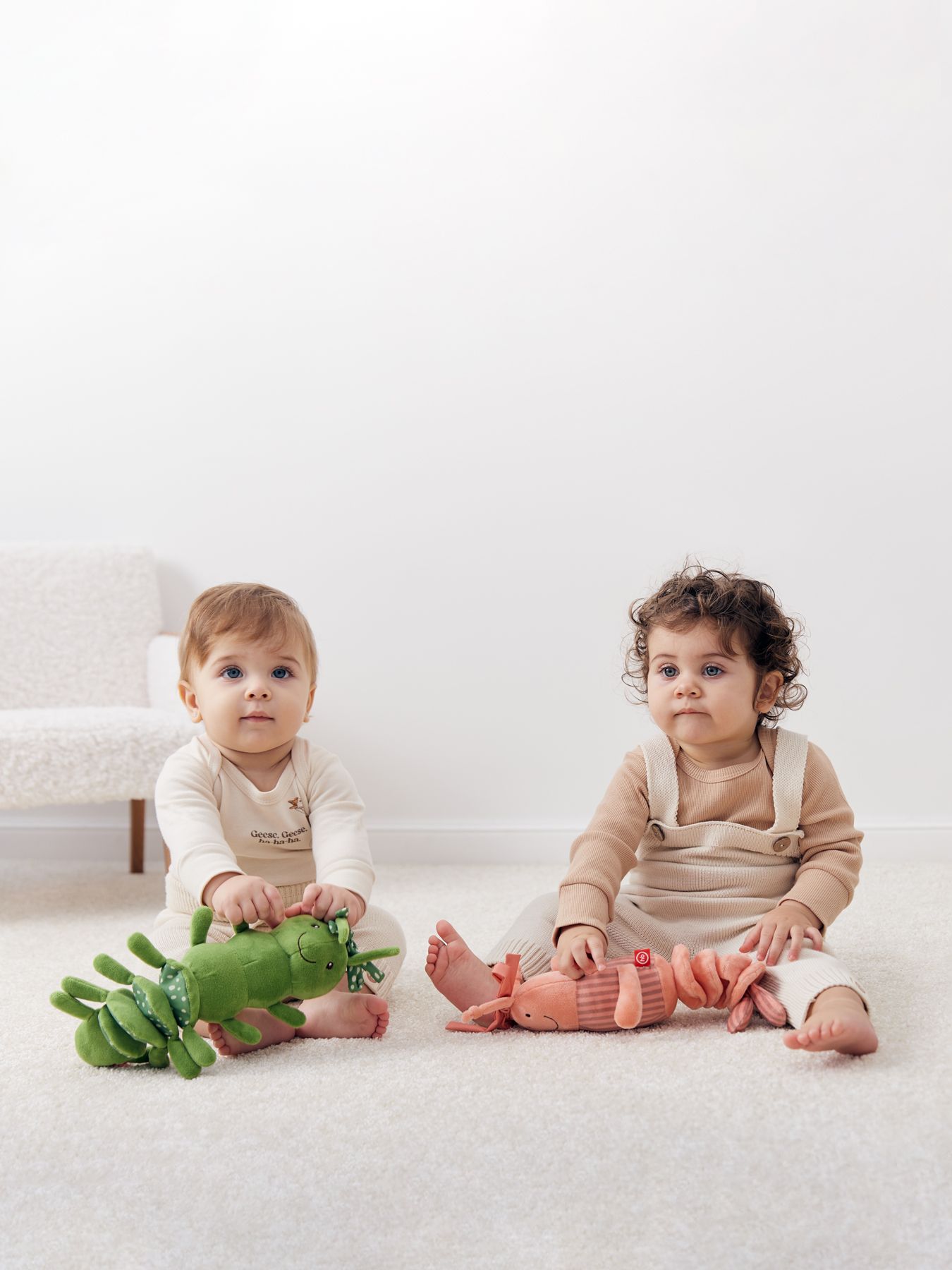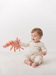Подвесная игрушка вызовет у малыша настоящий восторг. Стоит схватить игрушку за нижние лапки, как она растянется и отпустив завибрирует. Малыш будет снова и снова тянуться к этому забавному персонажу, тренируя мышцы, память и логику. Лапки, тонкие усики с узелками приятно трогать, развивая мелкую моторику. Наблюдение за подвижными частями учит удерживать взгляд.