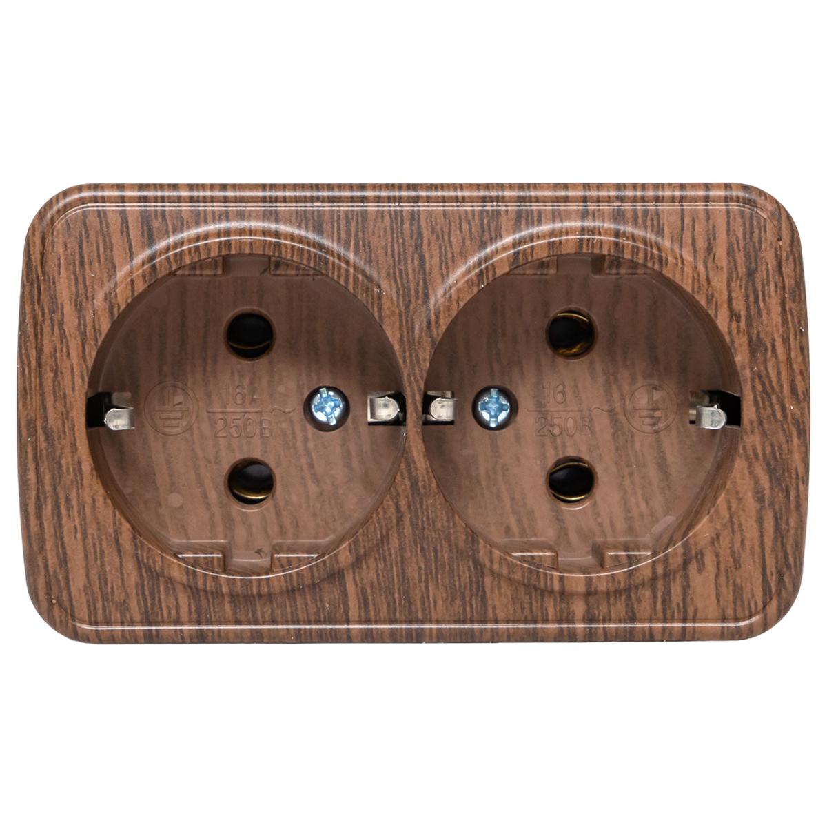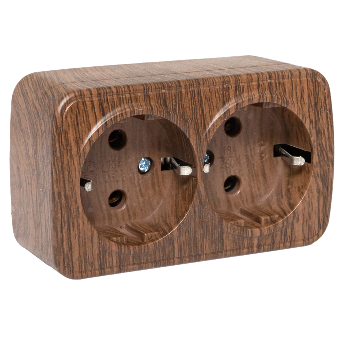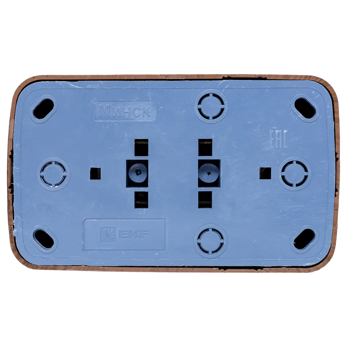 Дополнение к основной серии электроустановочных изделий для открытой проводки «Минск», компания EKF предлагает Вашему вниманию изделия в цвете светлое и темное дерево. Данный продукт сочетает в себе все преимущества и качество основной линейки с дизайном «под дерево». Все изделия изготовлены методом окрашивания с дальнейшей фактурной текстуризацией, что великолепно передает рисунок натуральной древесины. Такое покрытие долговечнее и практичнее пленки, которую используют многие компании на рынке. Новинка сочетается с прочими изделиями EKF имеющими окраску «под дерево» и позволит Вам создать комплексное решение по электроснабжению Вашего загородного дома или дачи. Конструкция и материалы серии специально оптимизированы для надежной и долговечной службы изделий и быстрого и удобного монтажа. А литое основание из полностью негорючих материалов сделает использование в условиях деревянного дома максимально безопасным.