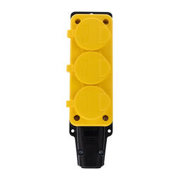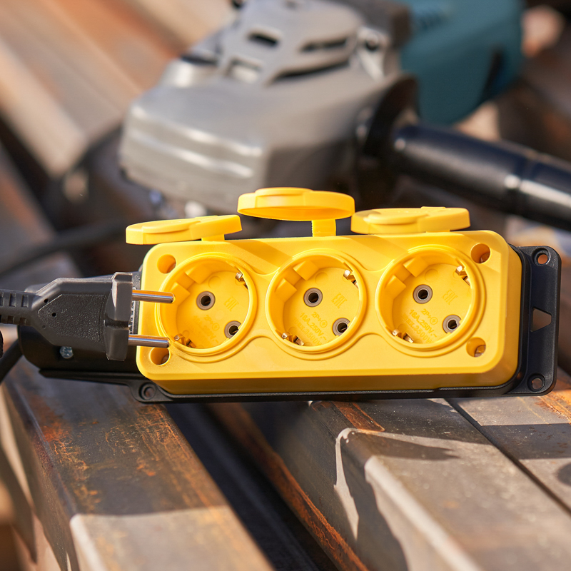 Штепсельная трехместная влагозащищенная электрическая розетка из каучука REXANT предназначена для использования в сложных эксплуатационных условиях и широко применяется в производстве, строительстве и машиностроении. Она легко монтируется, имеет высокую прочность и более длительный срок службы, чем розетки других производителей.Ударопрочный разборный корпус выполнен из каучука, устойчив к механическому и химическому воздействию.Технические характеристики:Номинальный ток: 16 АДиапазон рабочего напряжения: 200-250 ВСечение проводников: 0,75-2,5 мм²Контактная группа: MS-58 Степень защиты: IP54 Заземление: естьТип полюсов: 2P+РEМатериал корпуса: каучукРабочая температура: -30…+80 °С